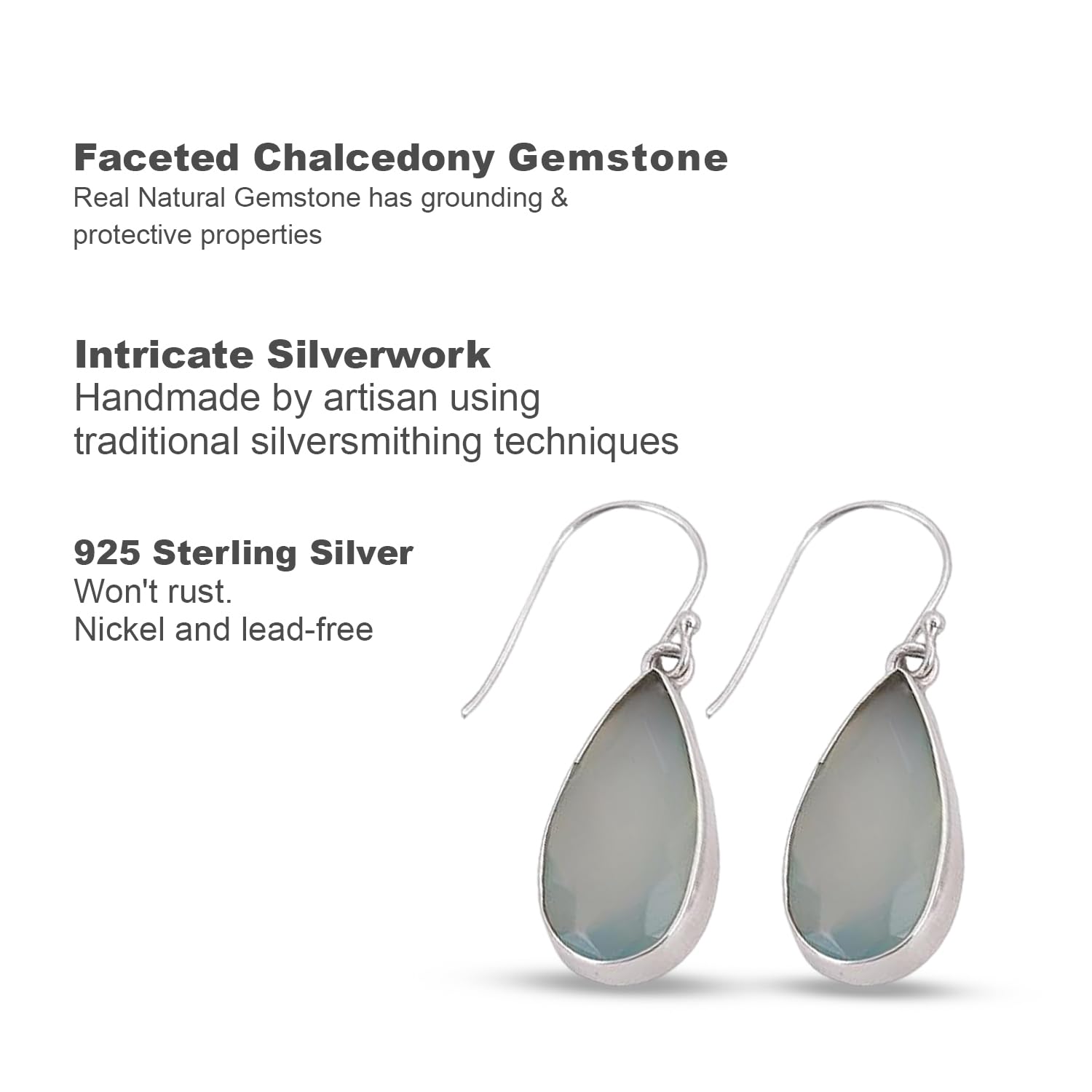 Faceted Chalcedony Earring Handmade Simple Earring For Women 925 Sterling Silver Earring mothers day gifts