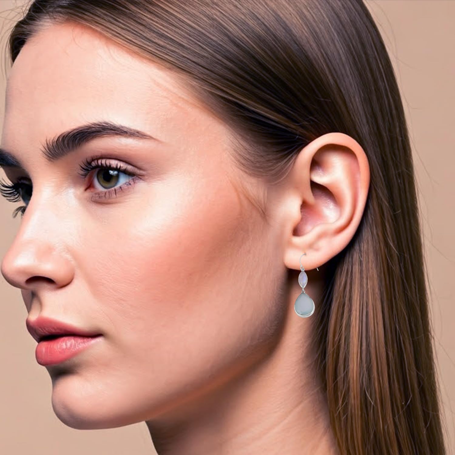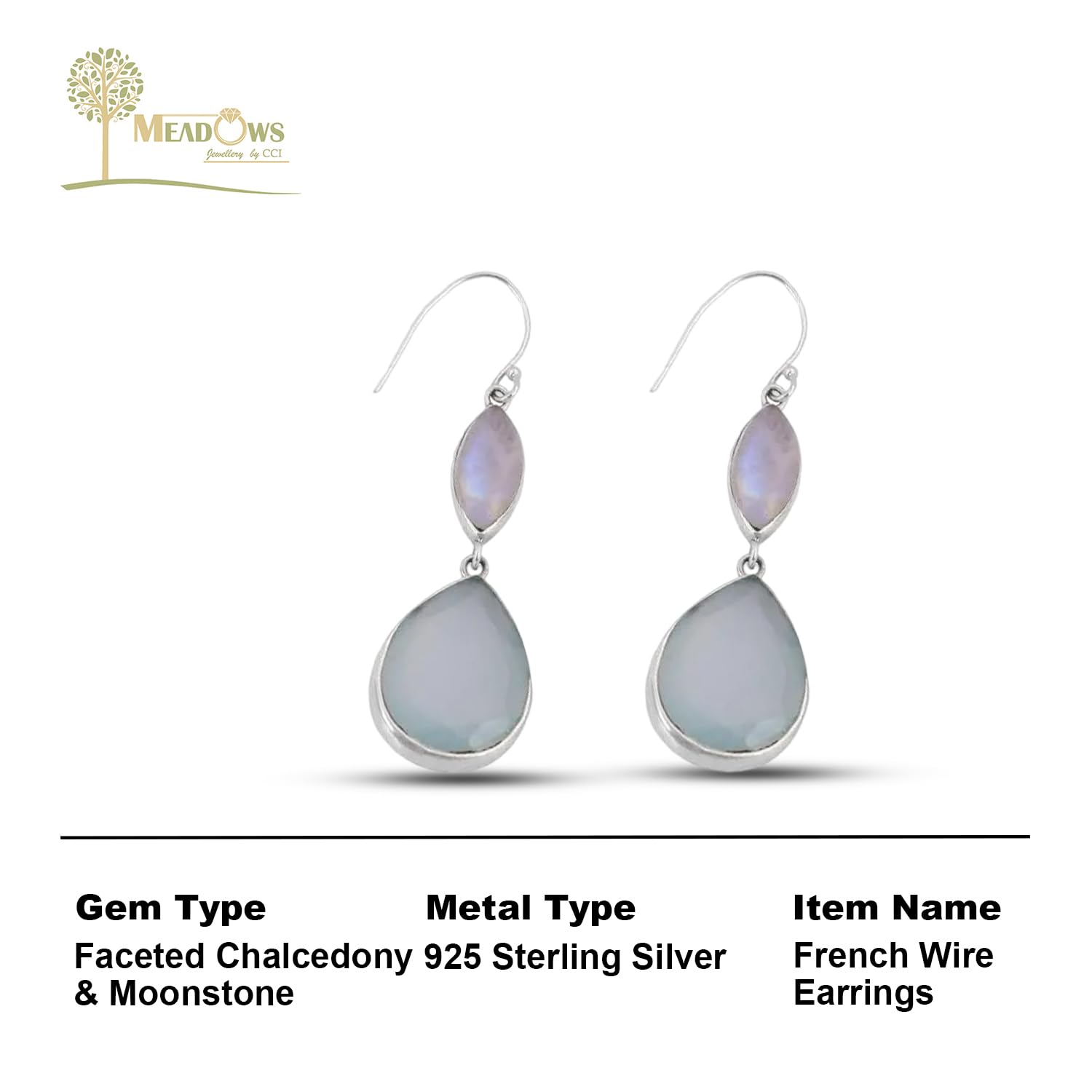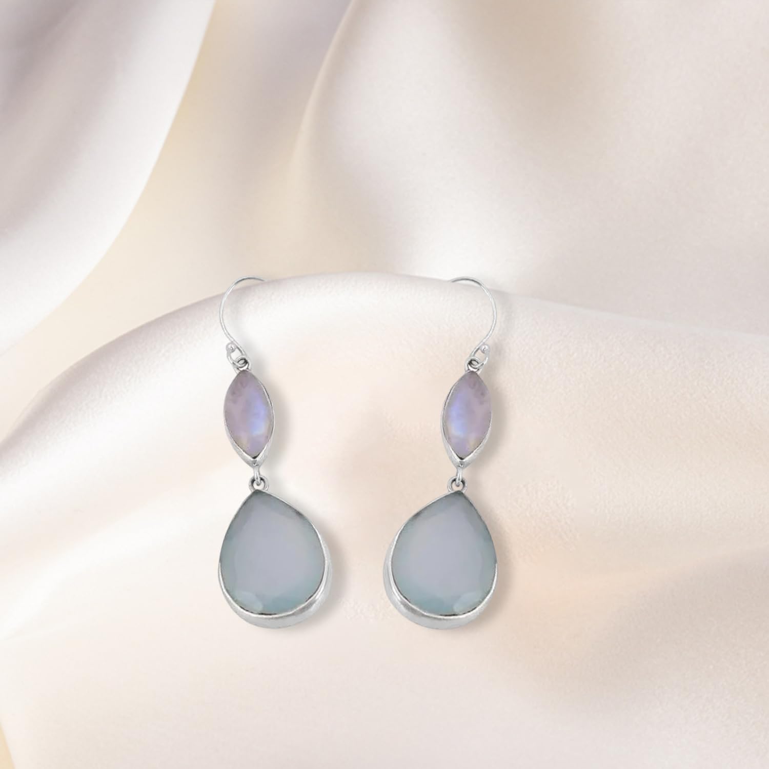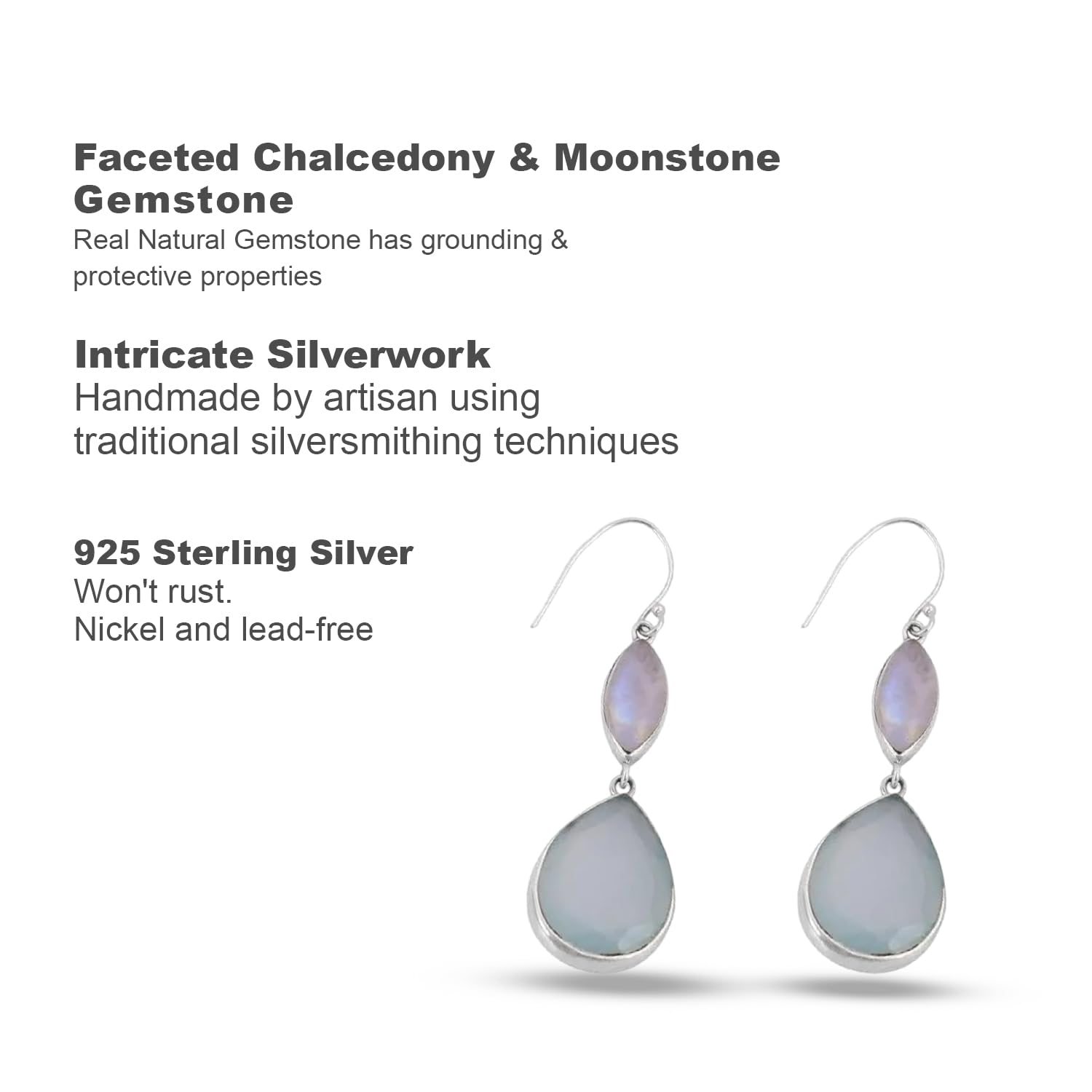 Faceted Chalcedony & Moonstone Earring Natural Gemstone Earring For Women 925 Sterling Silver Earring mothers day gifts