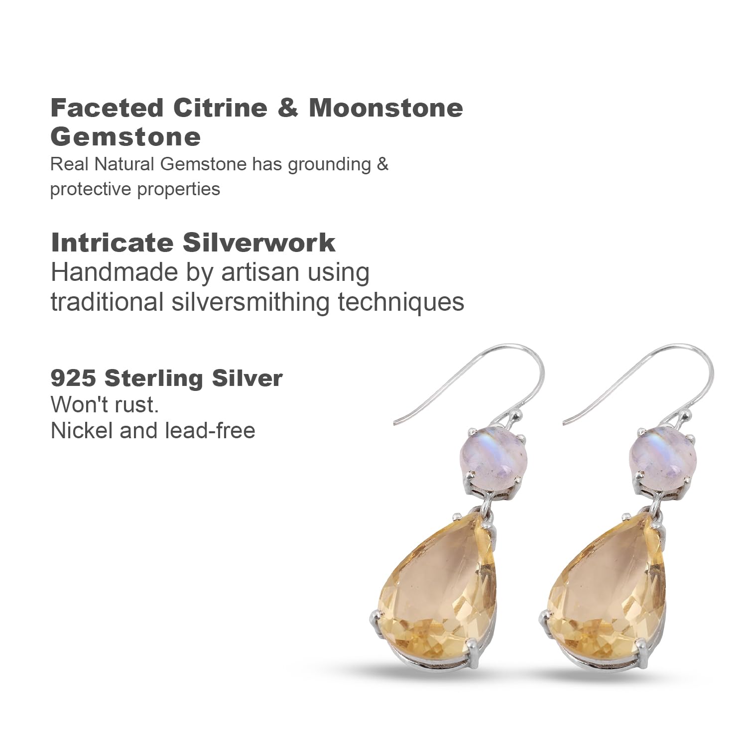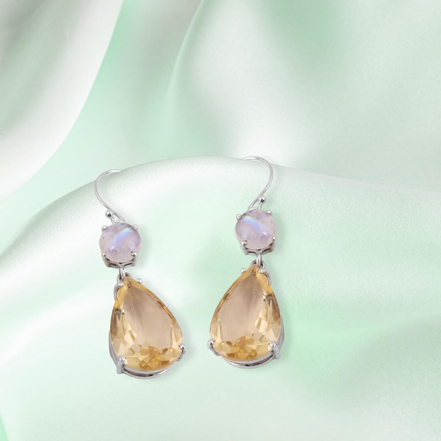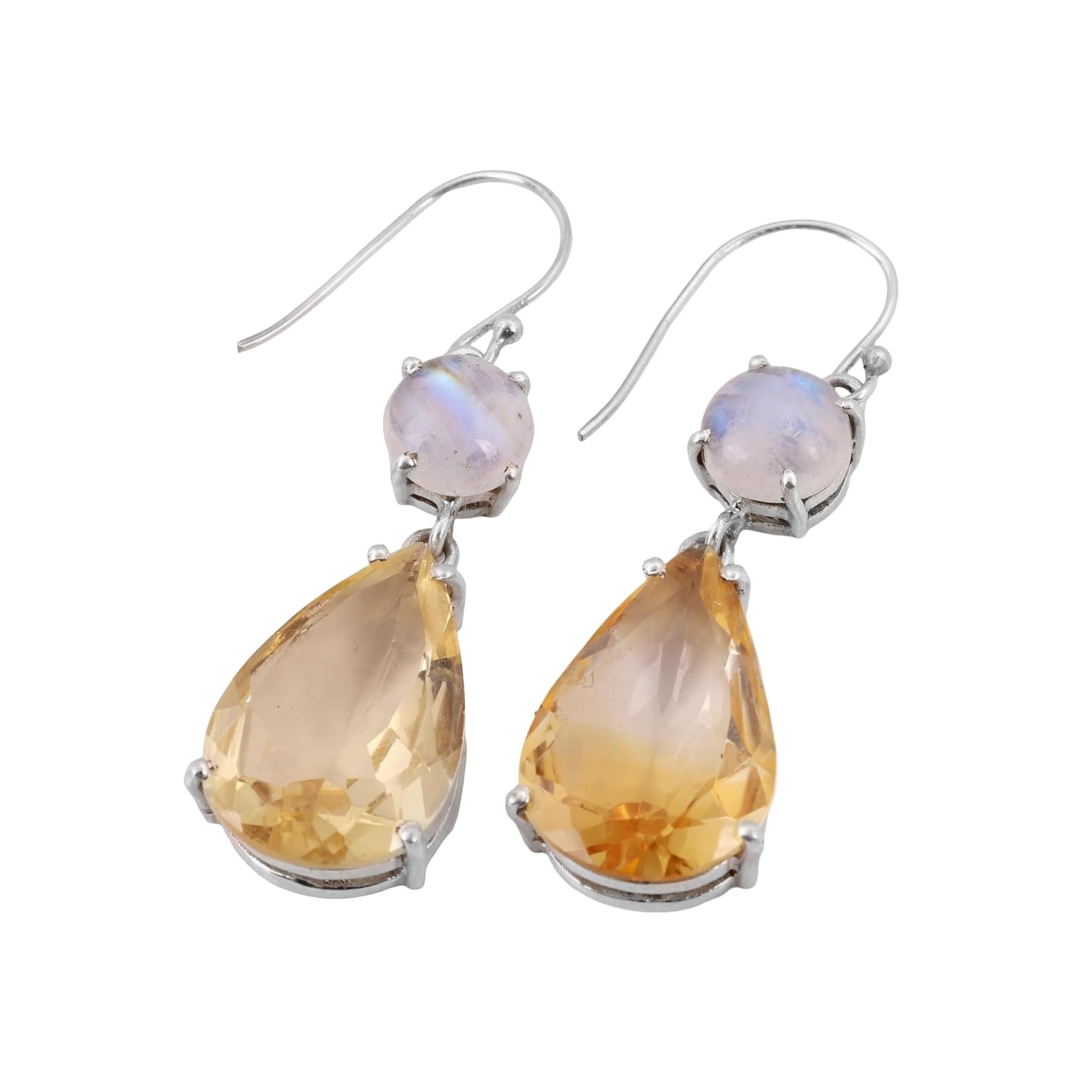 Faceted Citrine & Moonstone Earring Handmade Prong Setting Gemstone Earring For Women 925 Sterling Silver Earring mothers day gifts