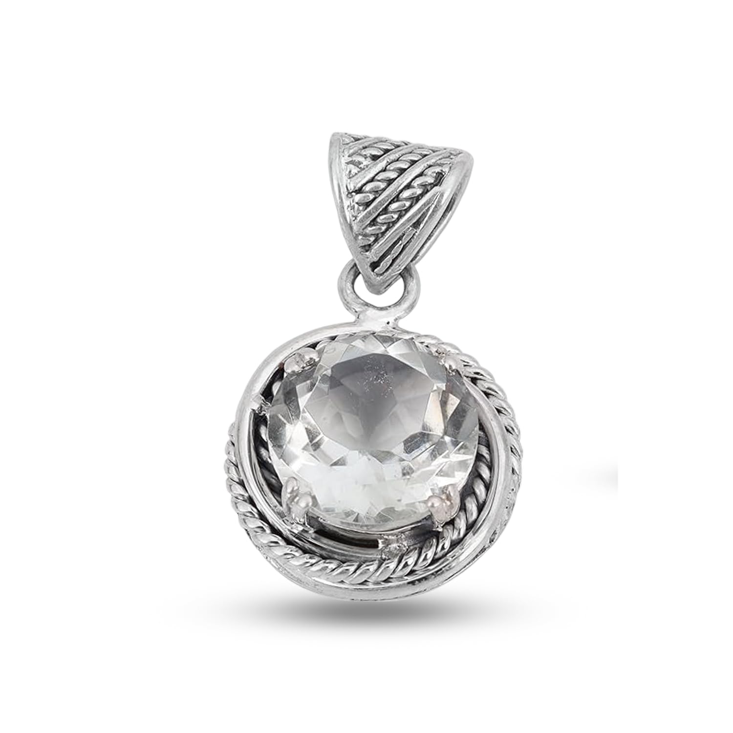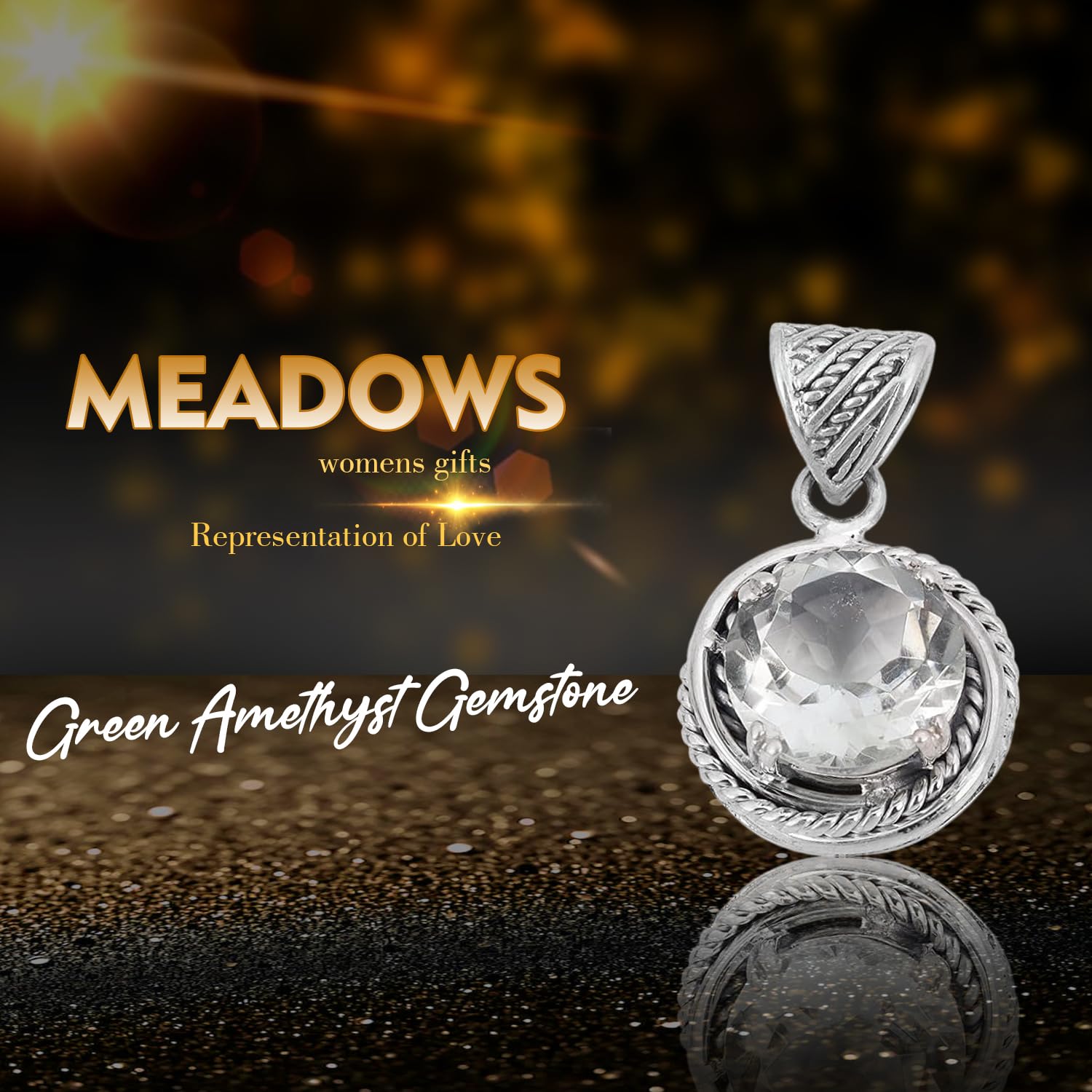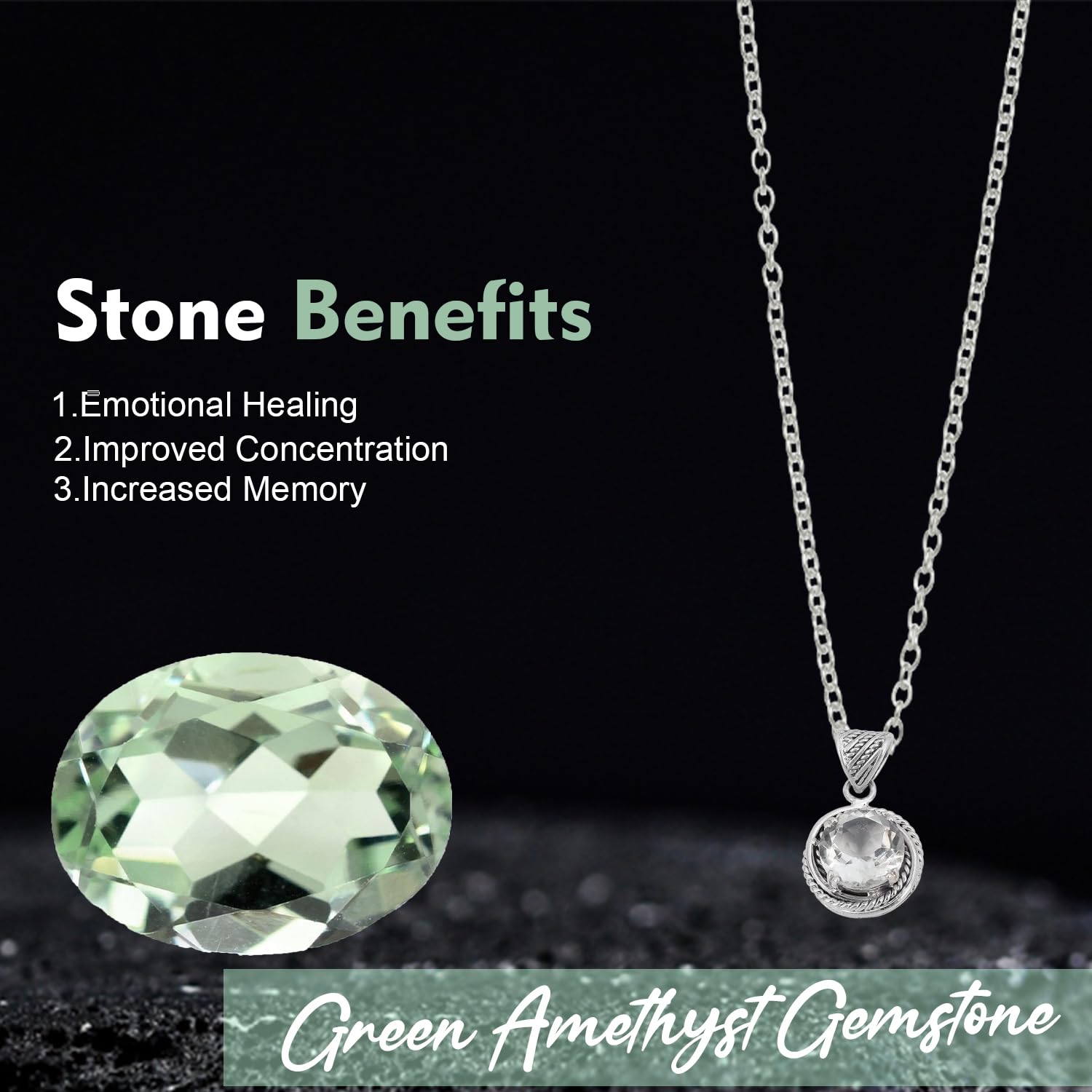 Faceted Green Amethyst Pendant, Minimalist Gemstone 925 Sterling Silver Pendant Jewellery