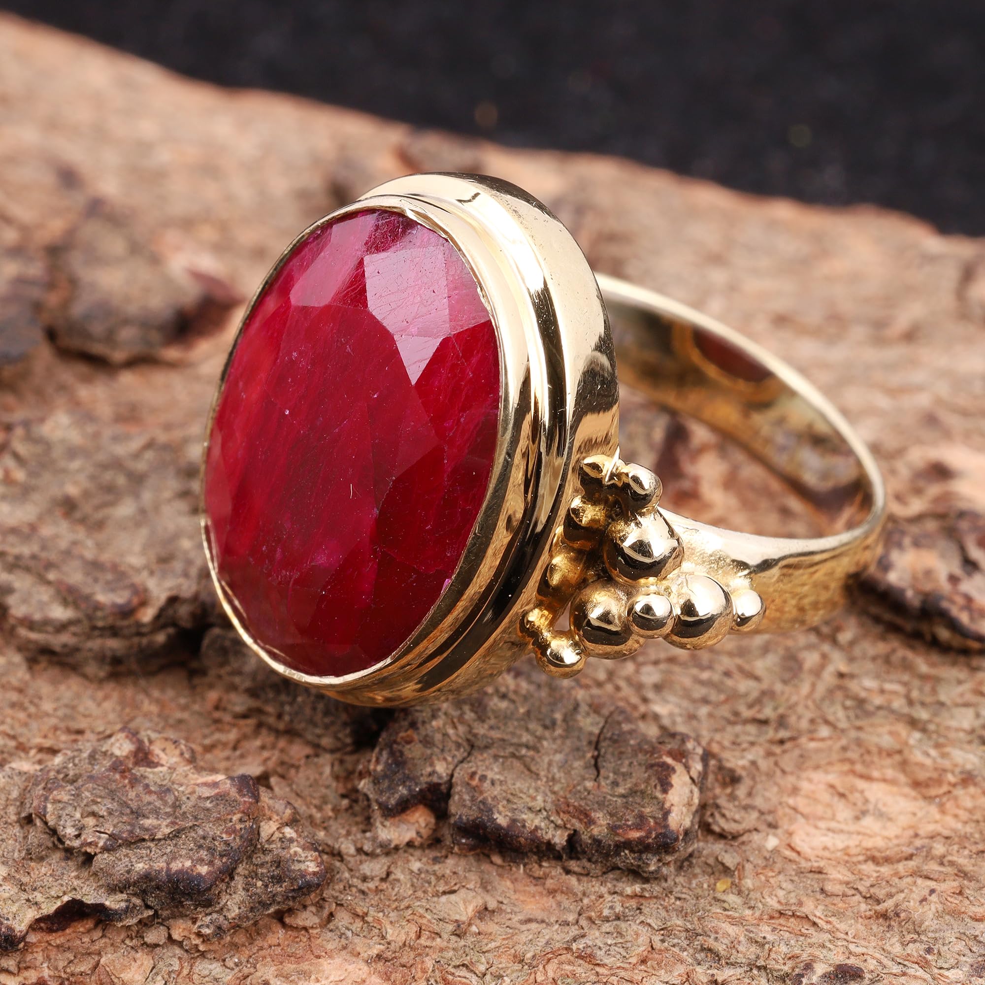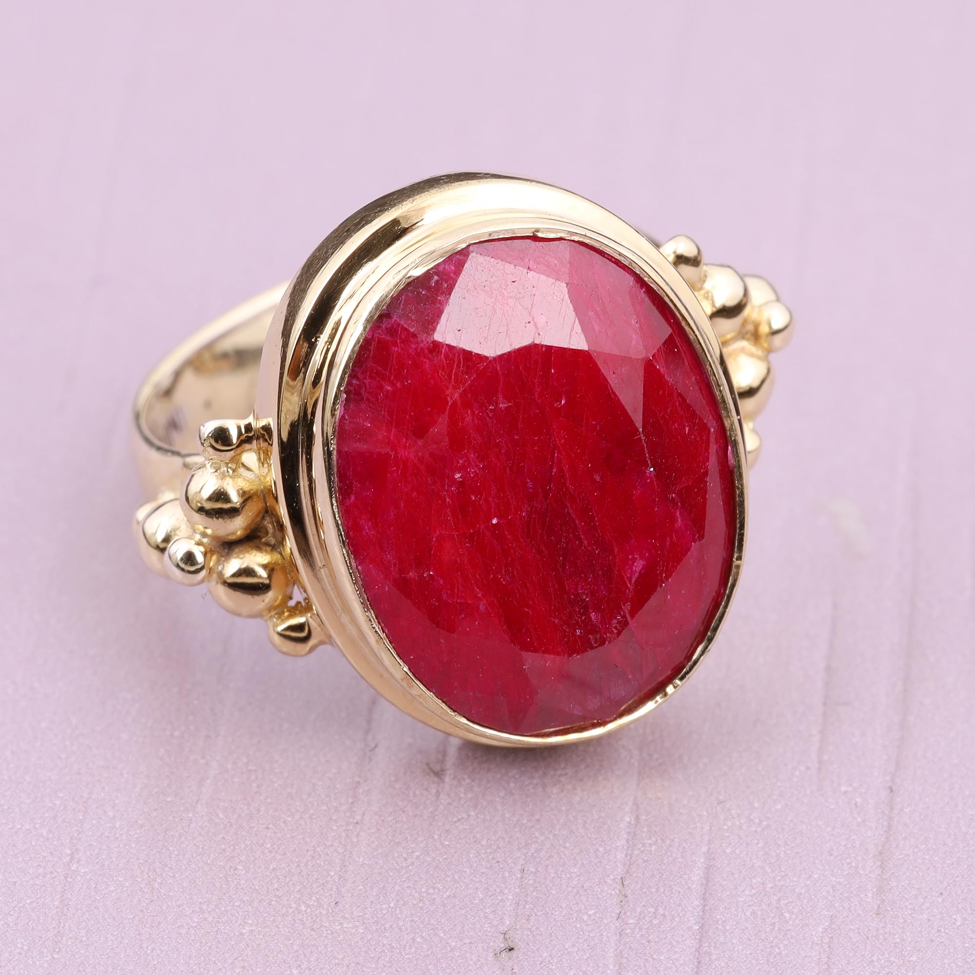 Faceted Pink Ruby Ring Yellow Gold Brass Ring Handmade Statement Ring Size 6 USA mothers day gifts