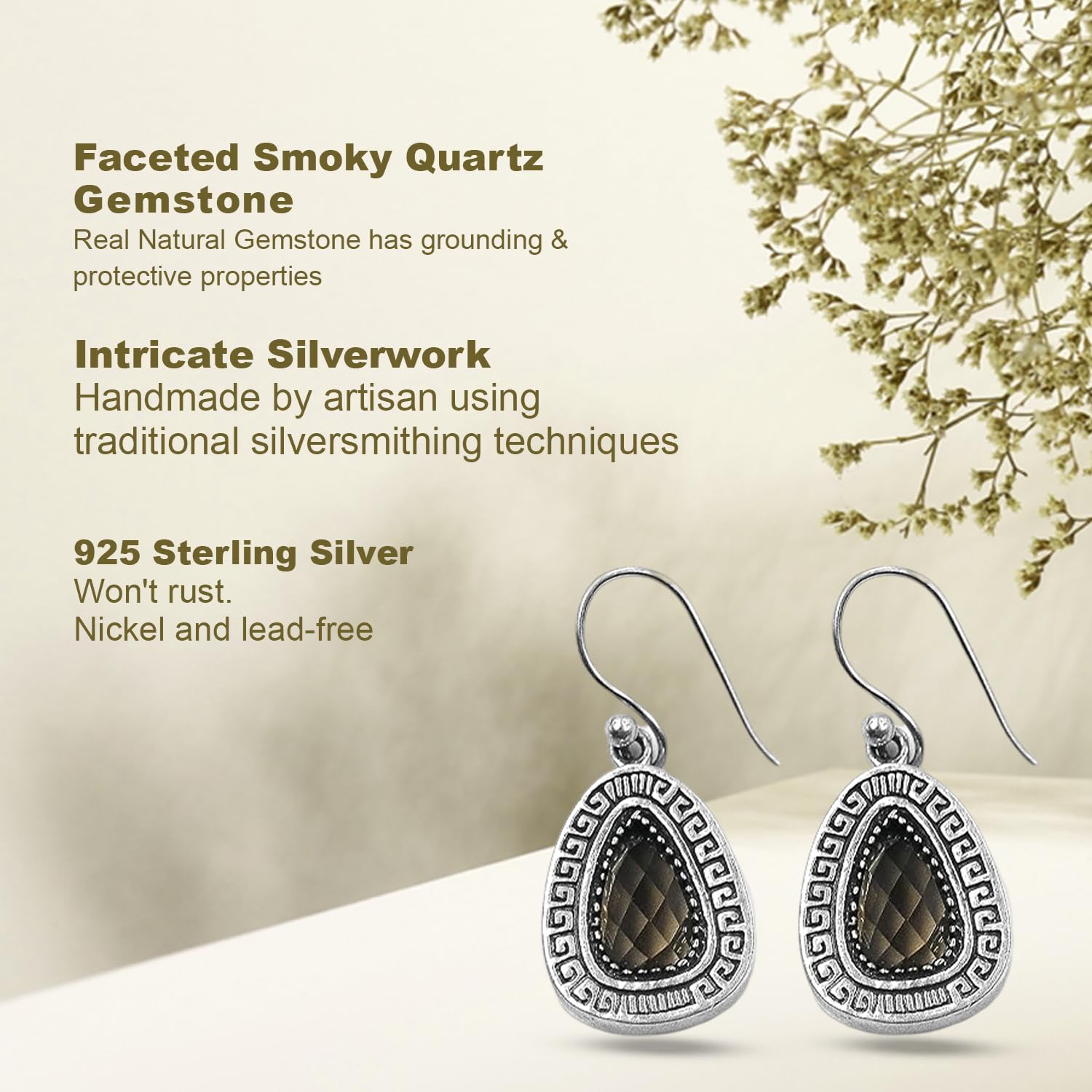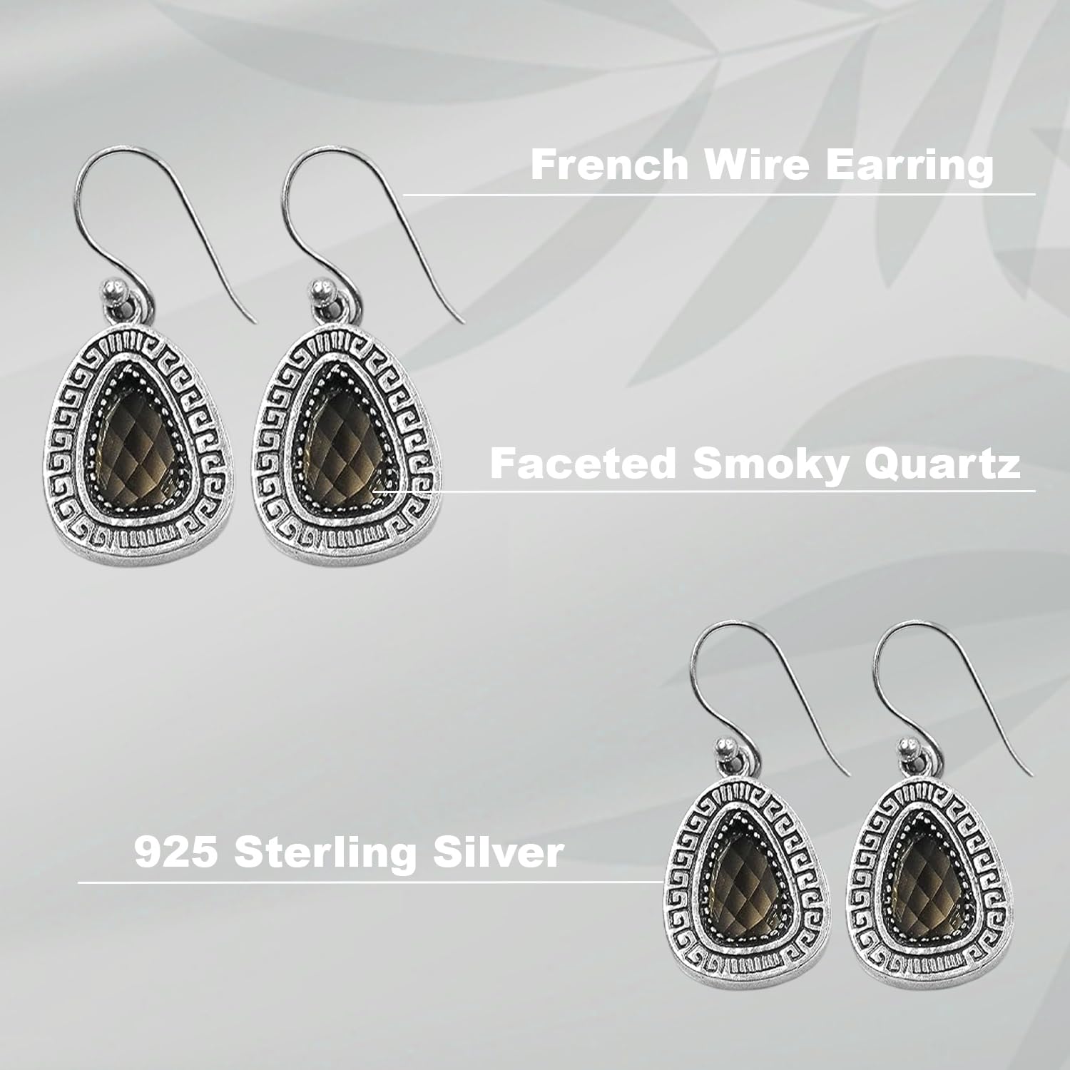 Faceted Smoky Quartz Dangle Earring For Women, Handmade 925 Sterling Silver Earring mothers day gifts