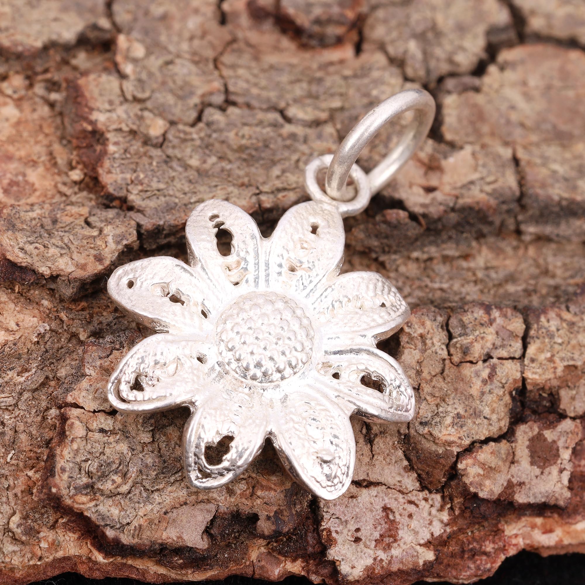 Floral Charm 925 Sterling Silver Handmade Pendant, Bohemian Pendant