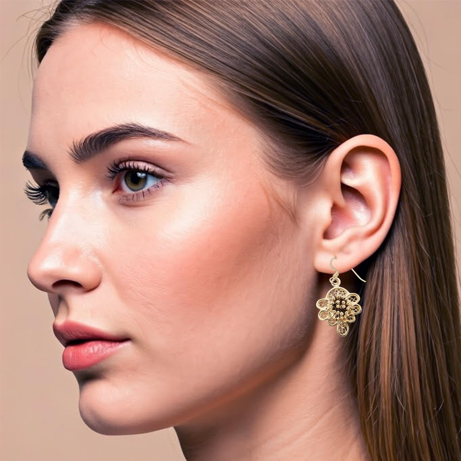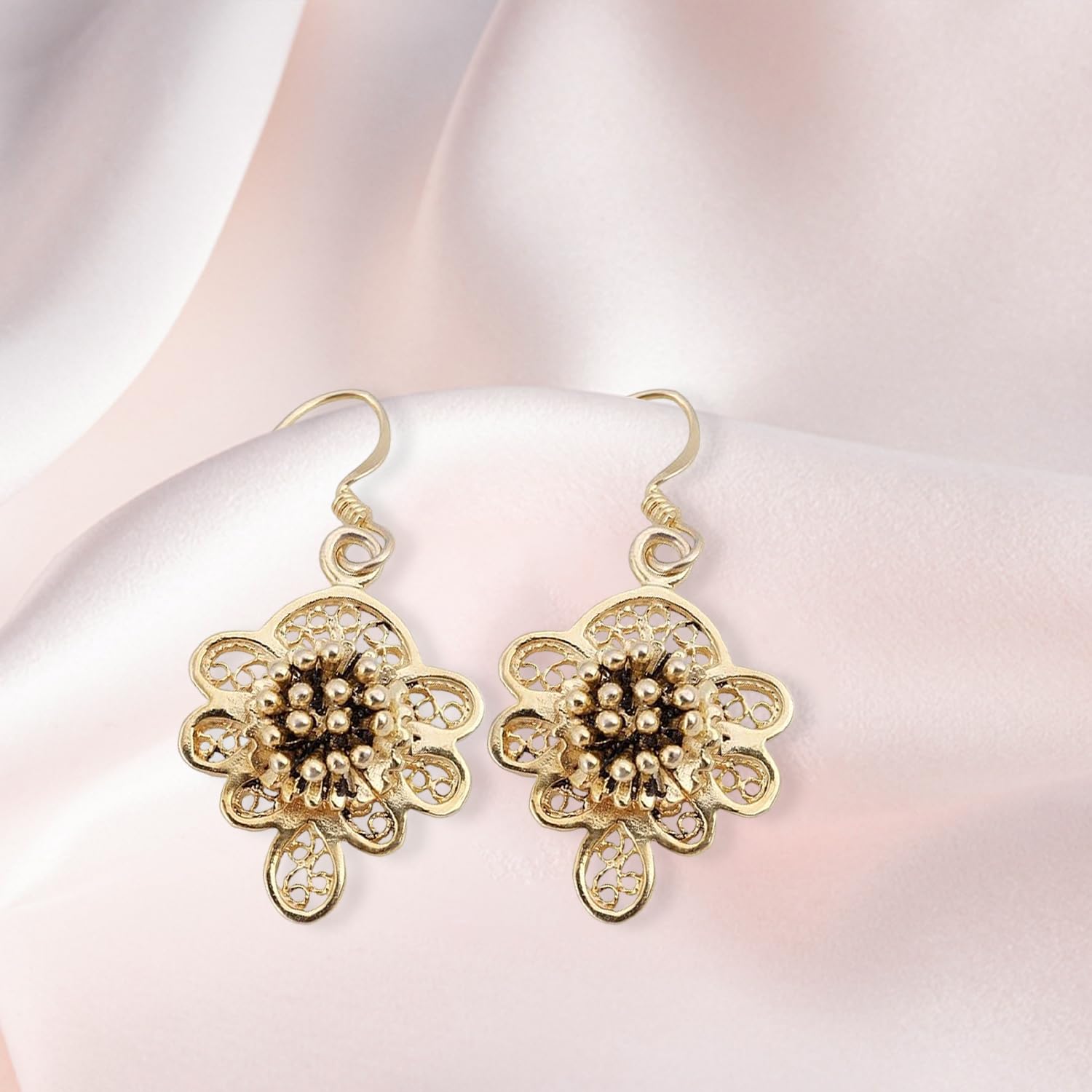 Floral Dangle Earring Yellow Gold Brass Earring Bohemian Earring mothers day gifts