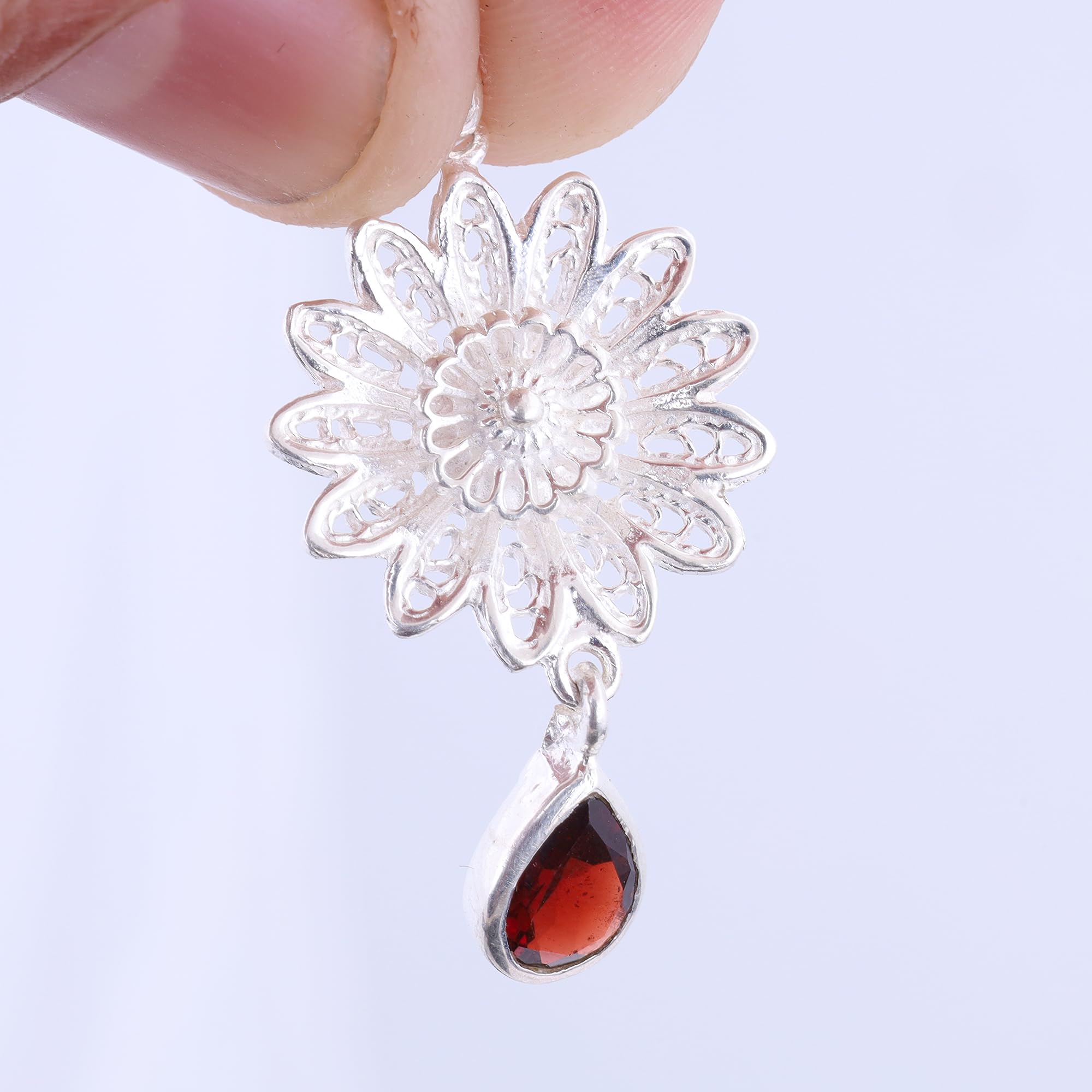 Floral Smoky Quartz Pendant 925 Sterling Silver Handmade Pendant Boho Silver Jewelry mothers day gifts
