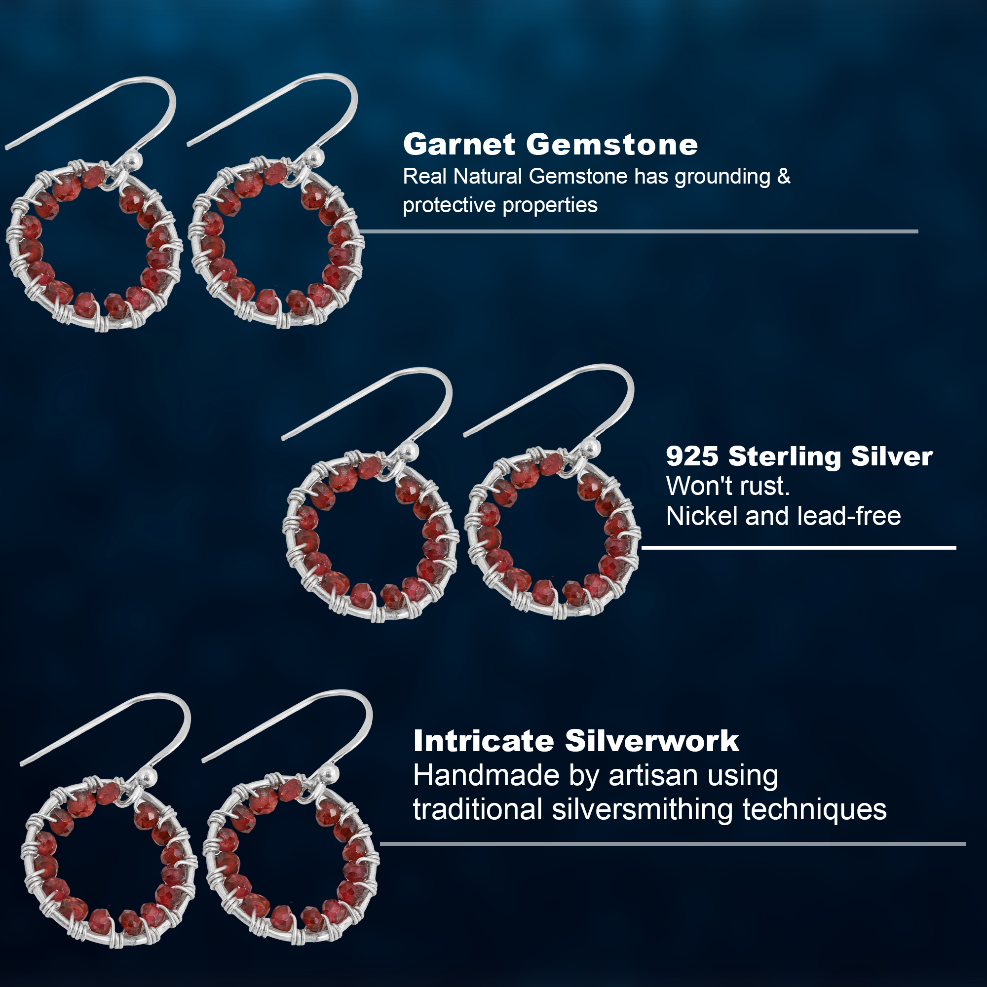 Meadows Natural Garnet Dangle Earrings ? Timeless Elegance in Sterling Silver