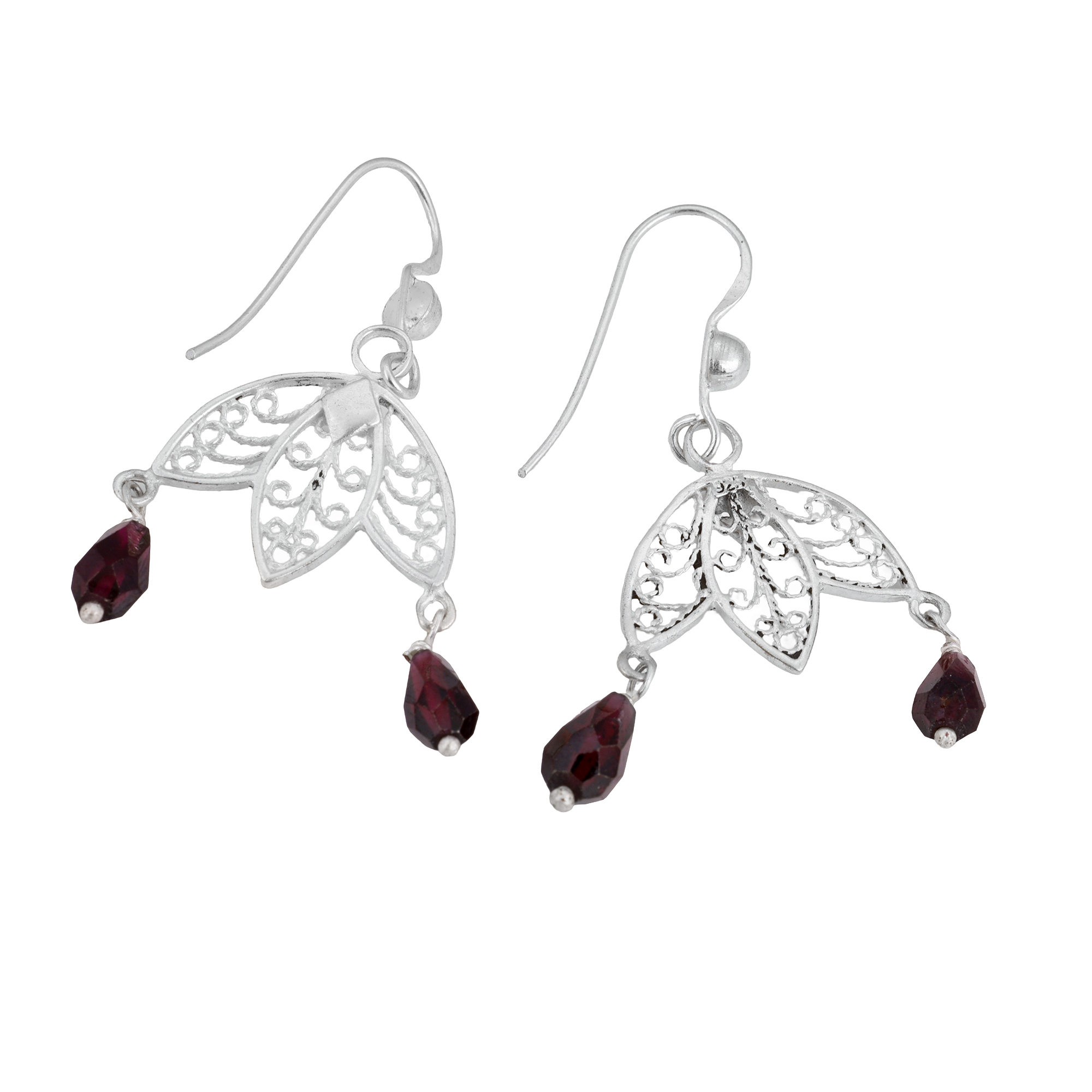 ? Meadows 925 Sterling Silver Garnet Filigree Dangle Earrings ? A Blend of Tradition & Elegance ?