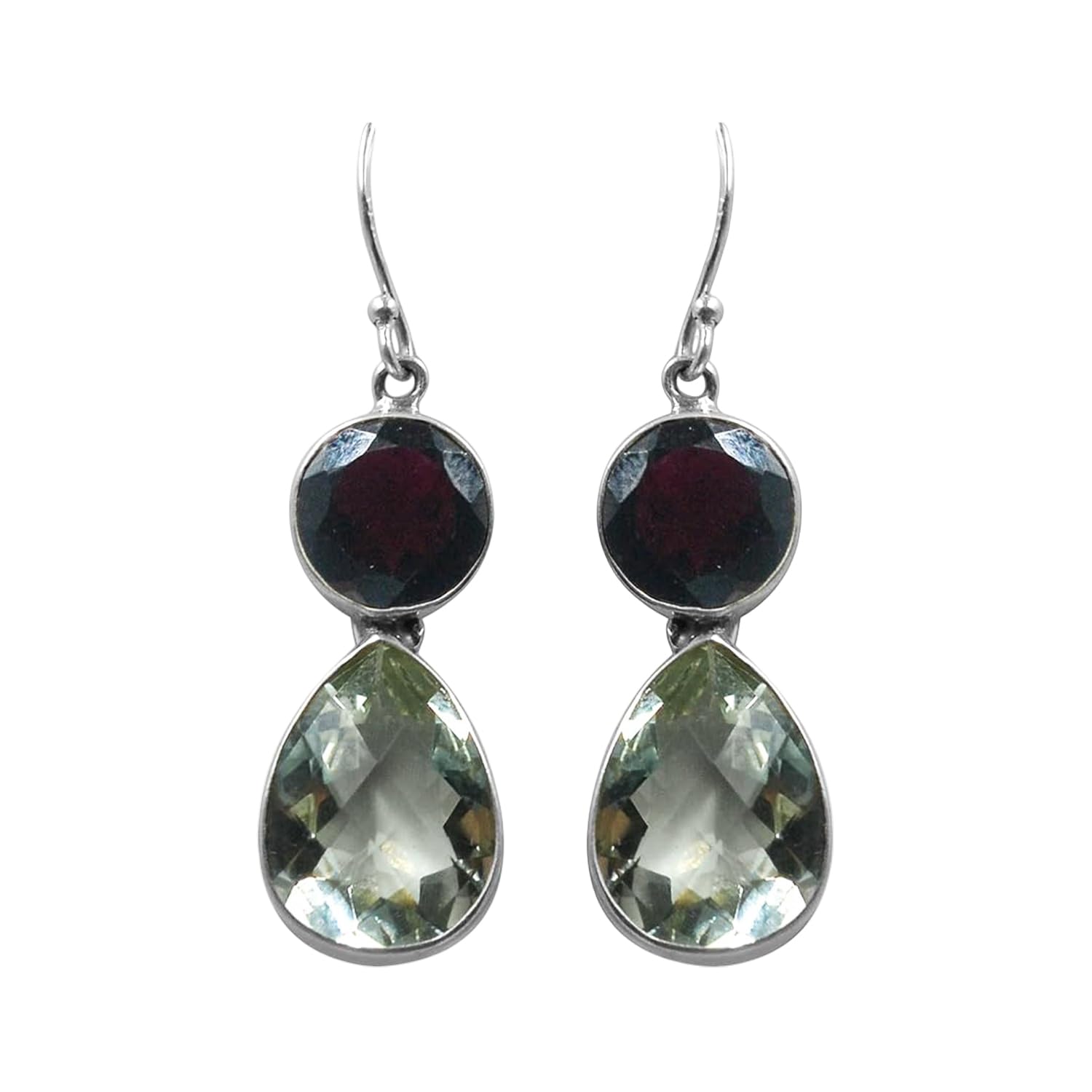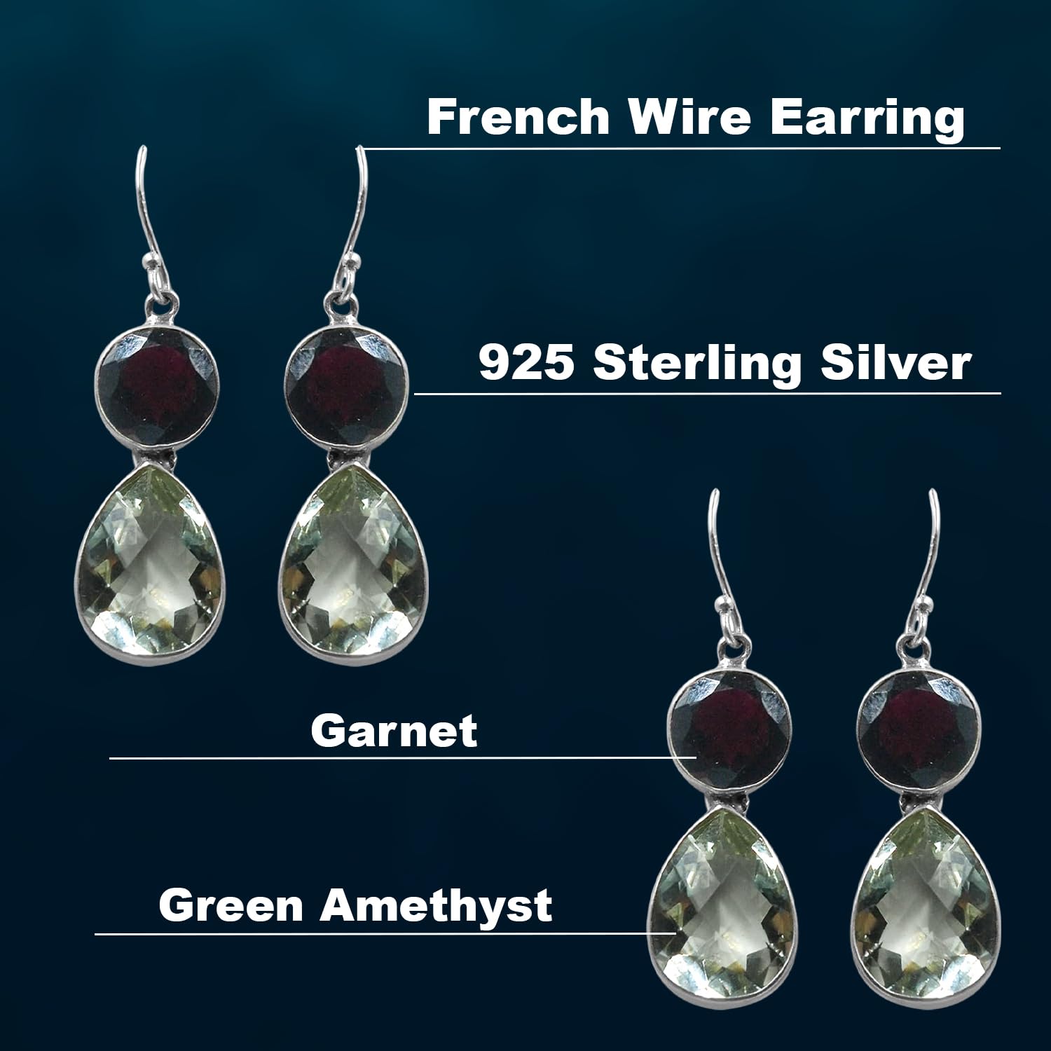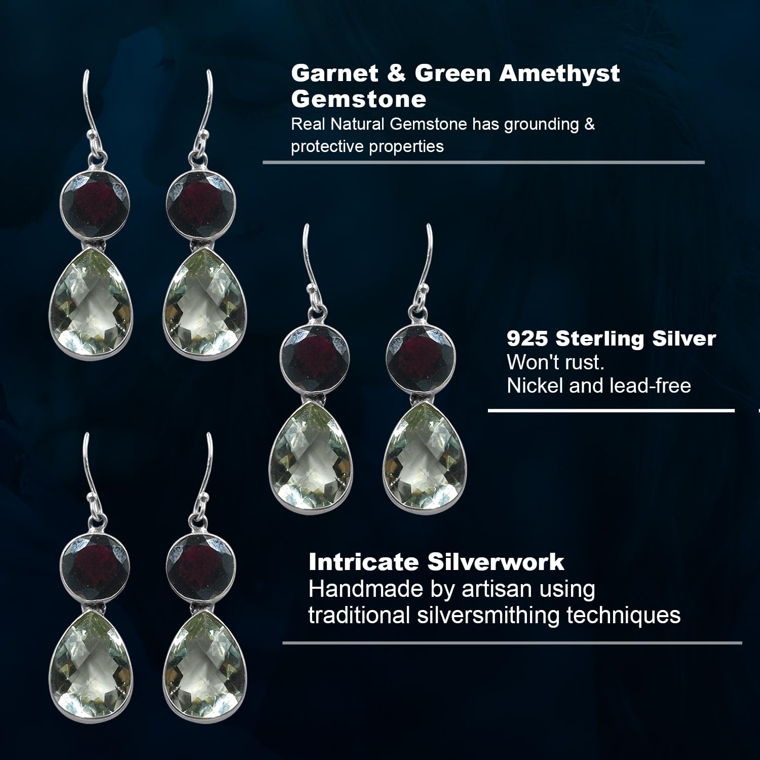 Garnet & Green Amethyst Earring For Women, Gemstone Earring, Handmade Dangle 925 Sterling Silver Earring