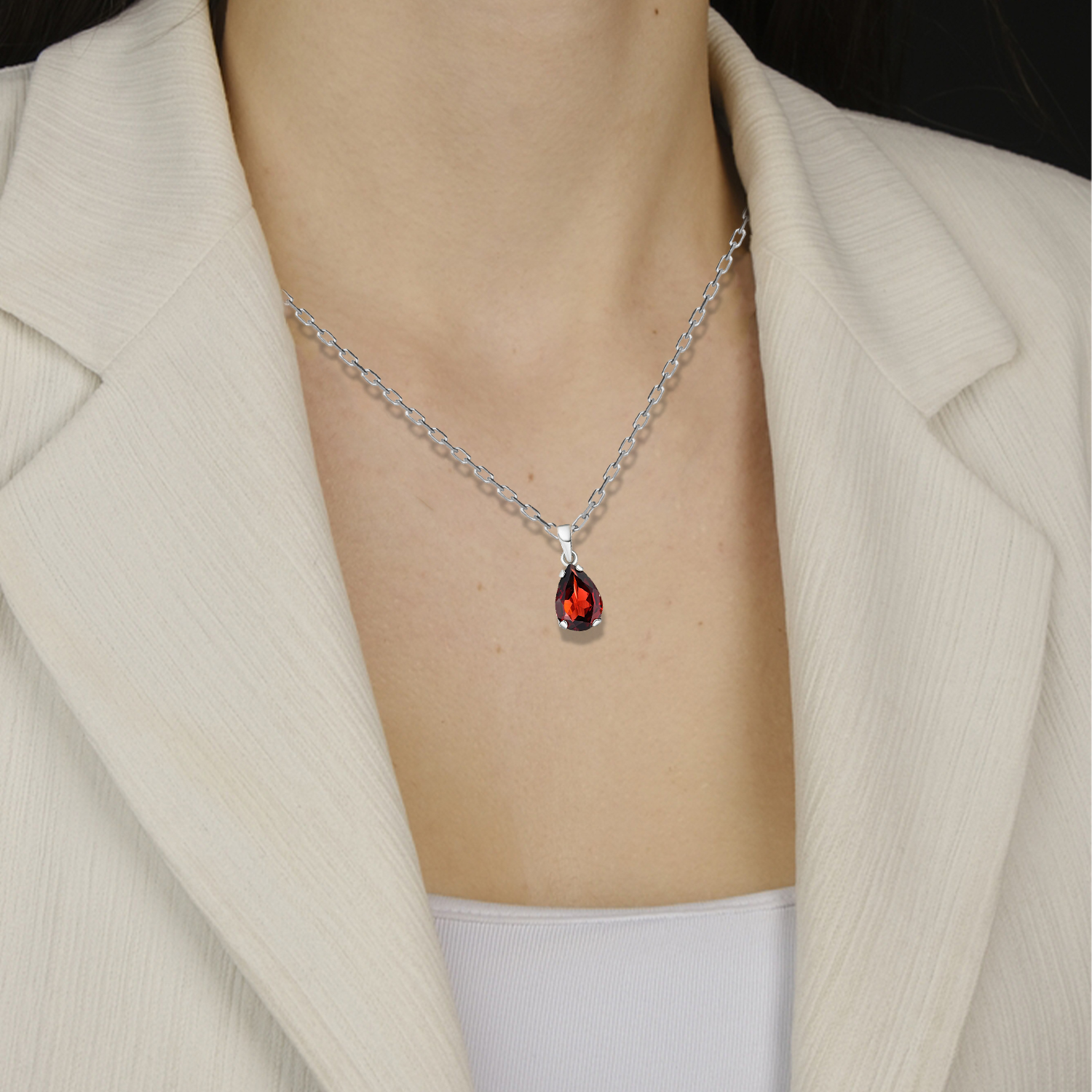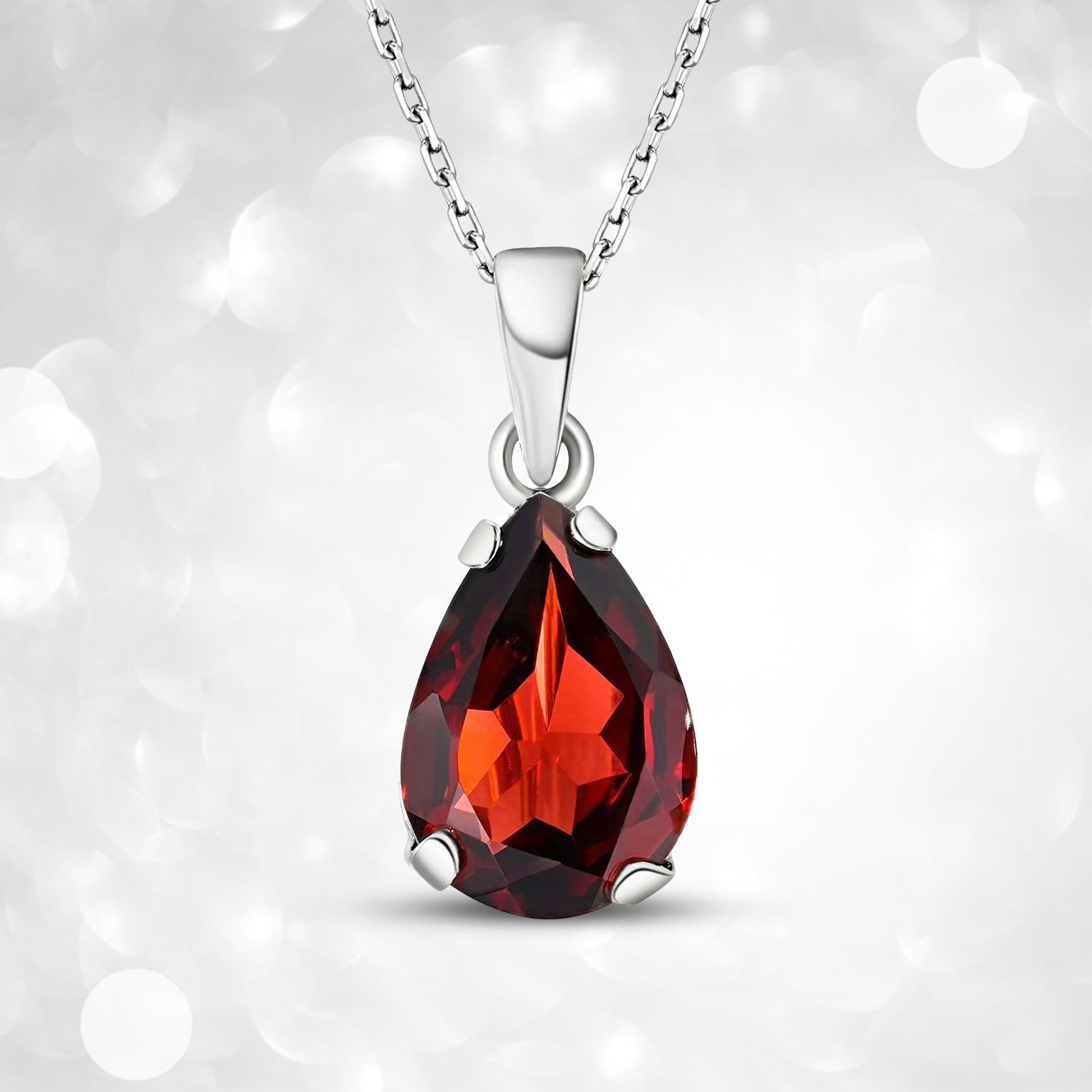 This elegant Garnet Pendant features a deep red gemstone set in sterling silver, symbolizing love, strength, and passion. With its rich color and timeless appeal, it?s a perfect accessory to add a touch of warmth and sophistication to any look.
