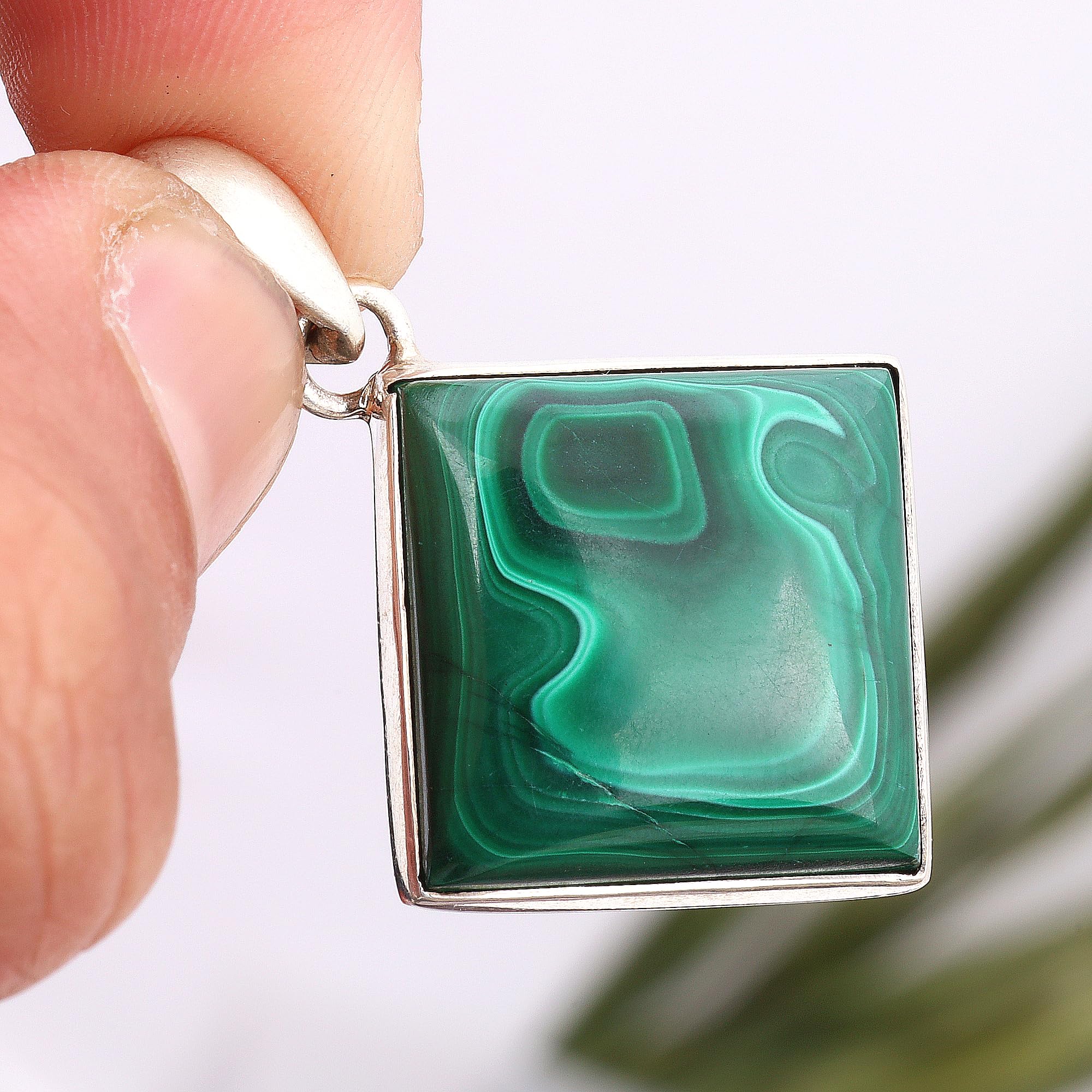 Graphics Malachite Gemstone Pendant, 925 Sterling Silver Pendant, Statement Pendant