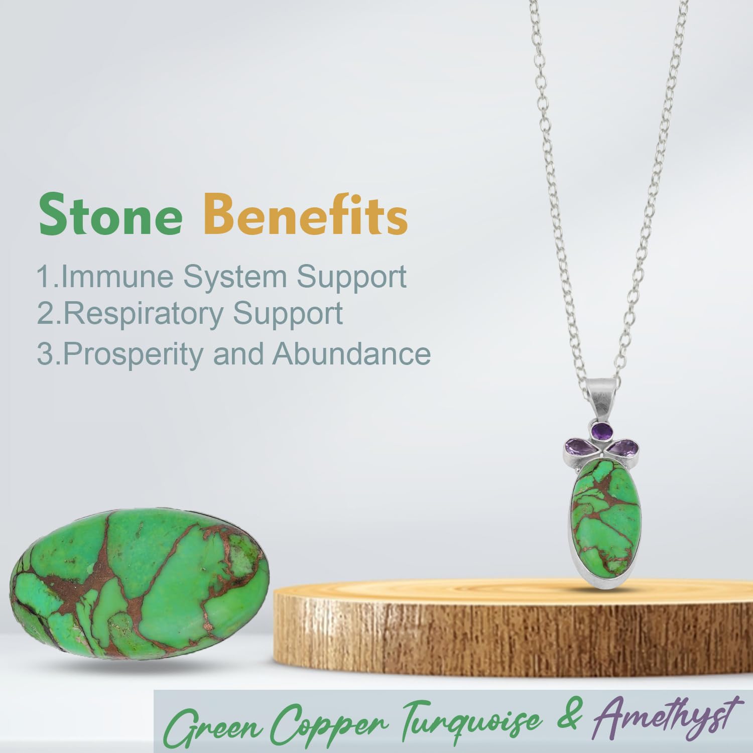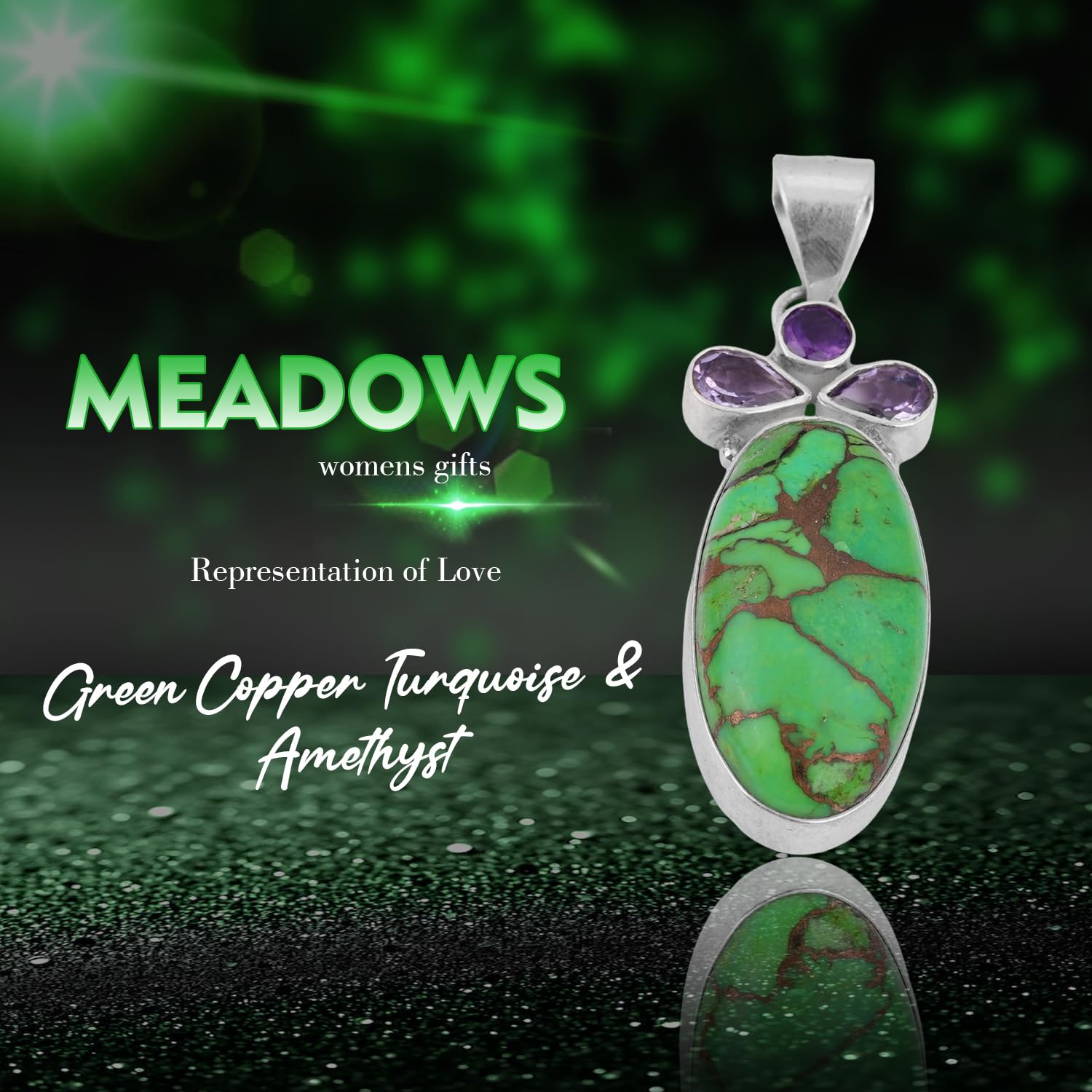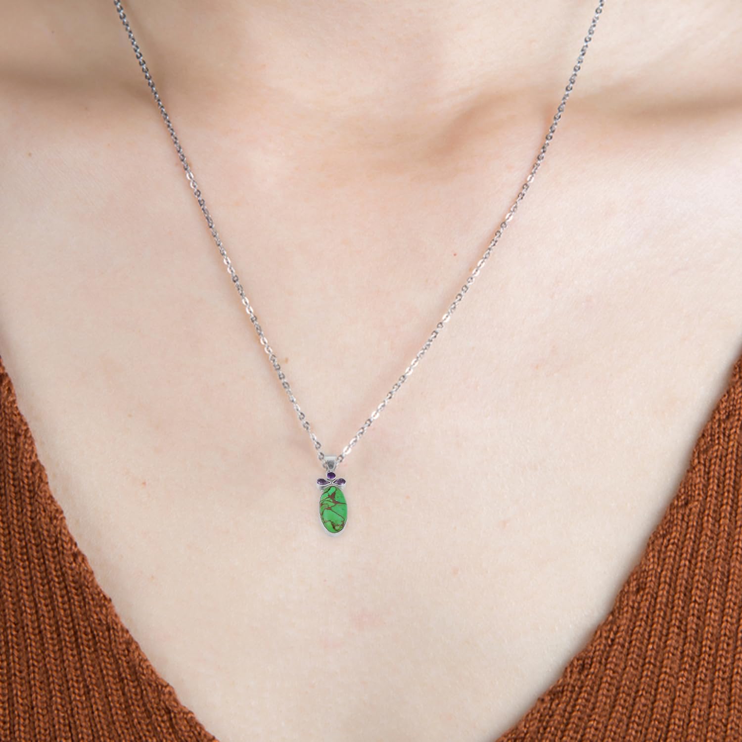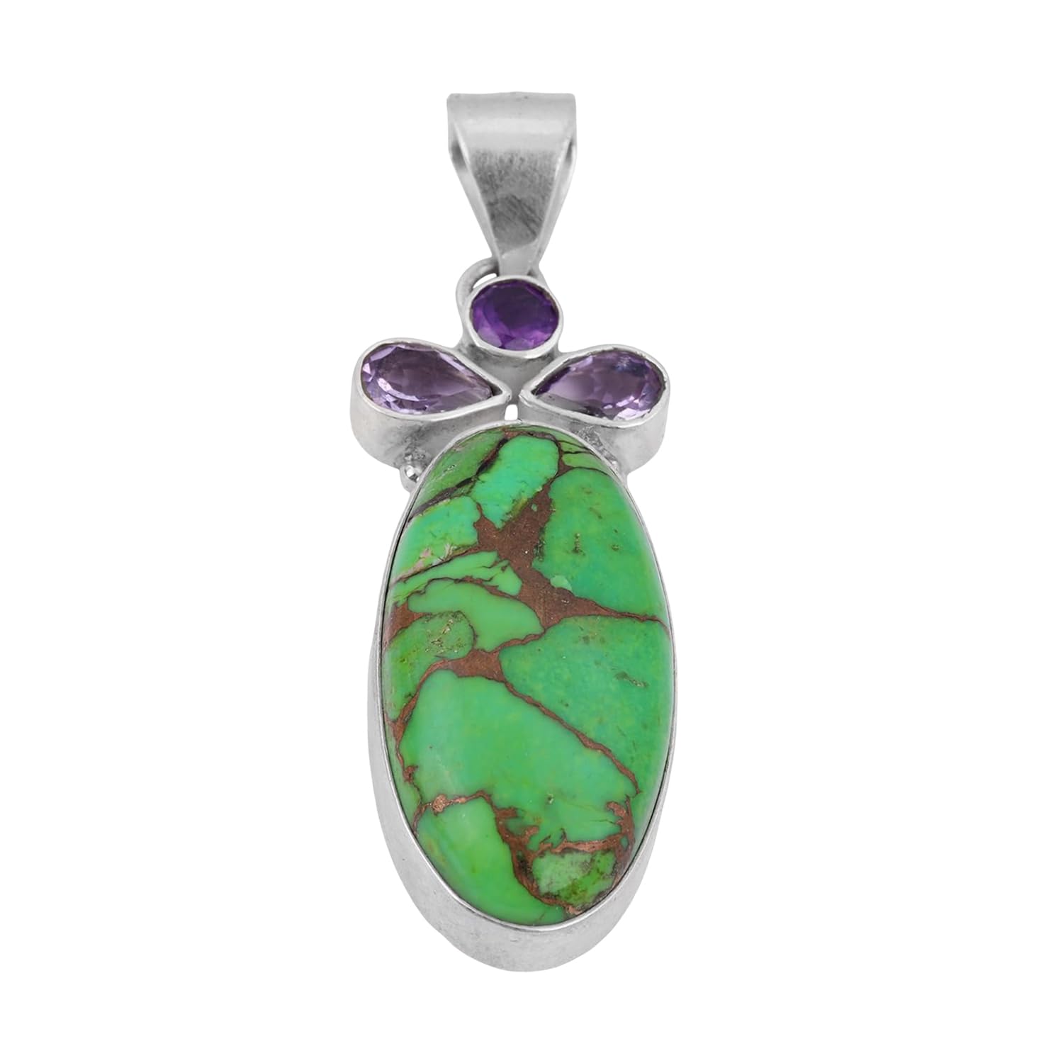 Green Copper Turquoise & Amethyst Pendant 925 Sterling Silver Handmade Statement Pendant mothers day gifts