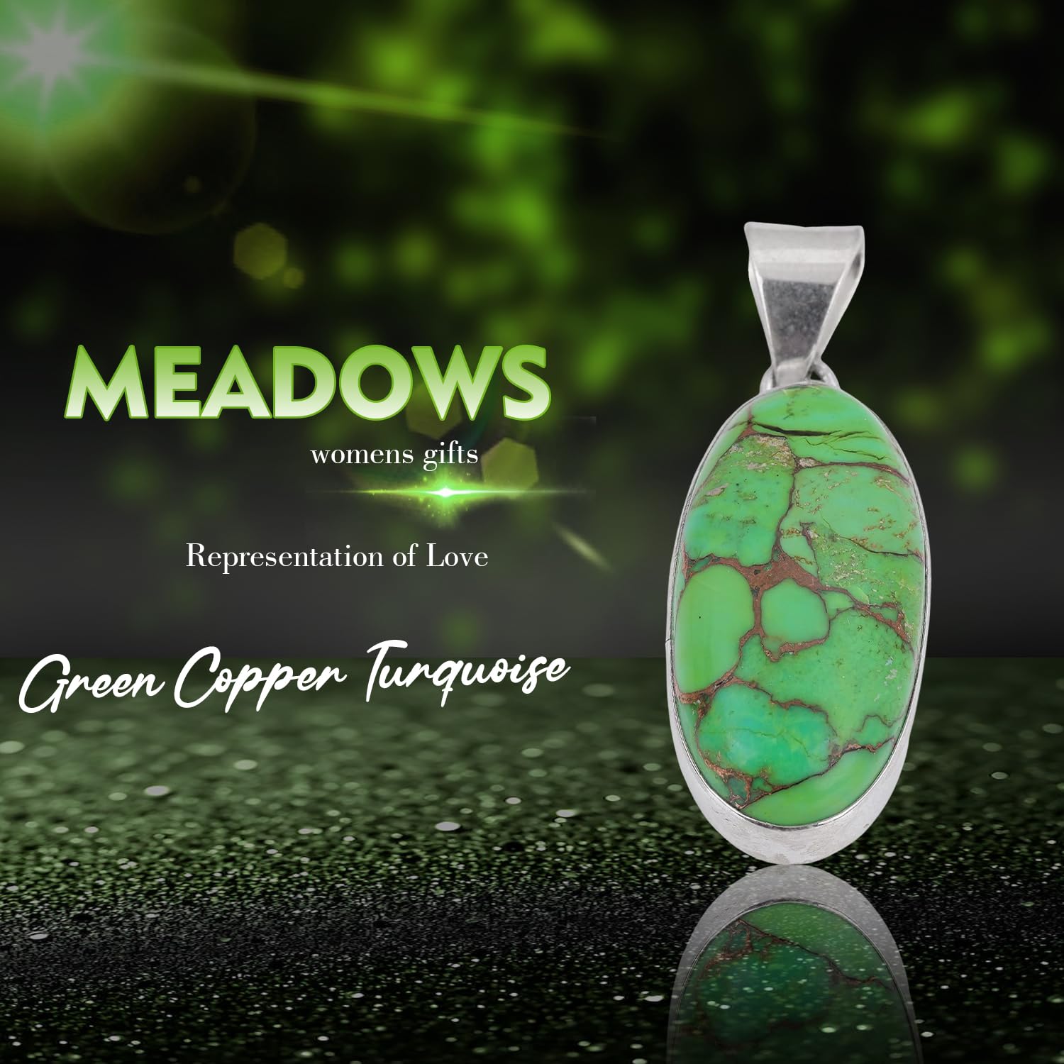 Green Copper Turquoise Pendant 925 Sterling Silver Handmade Statement Pendant mothers day gifts