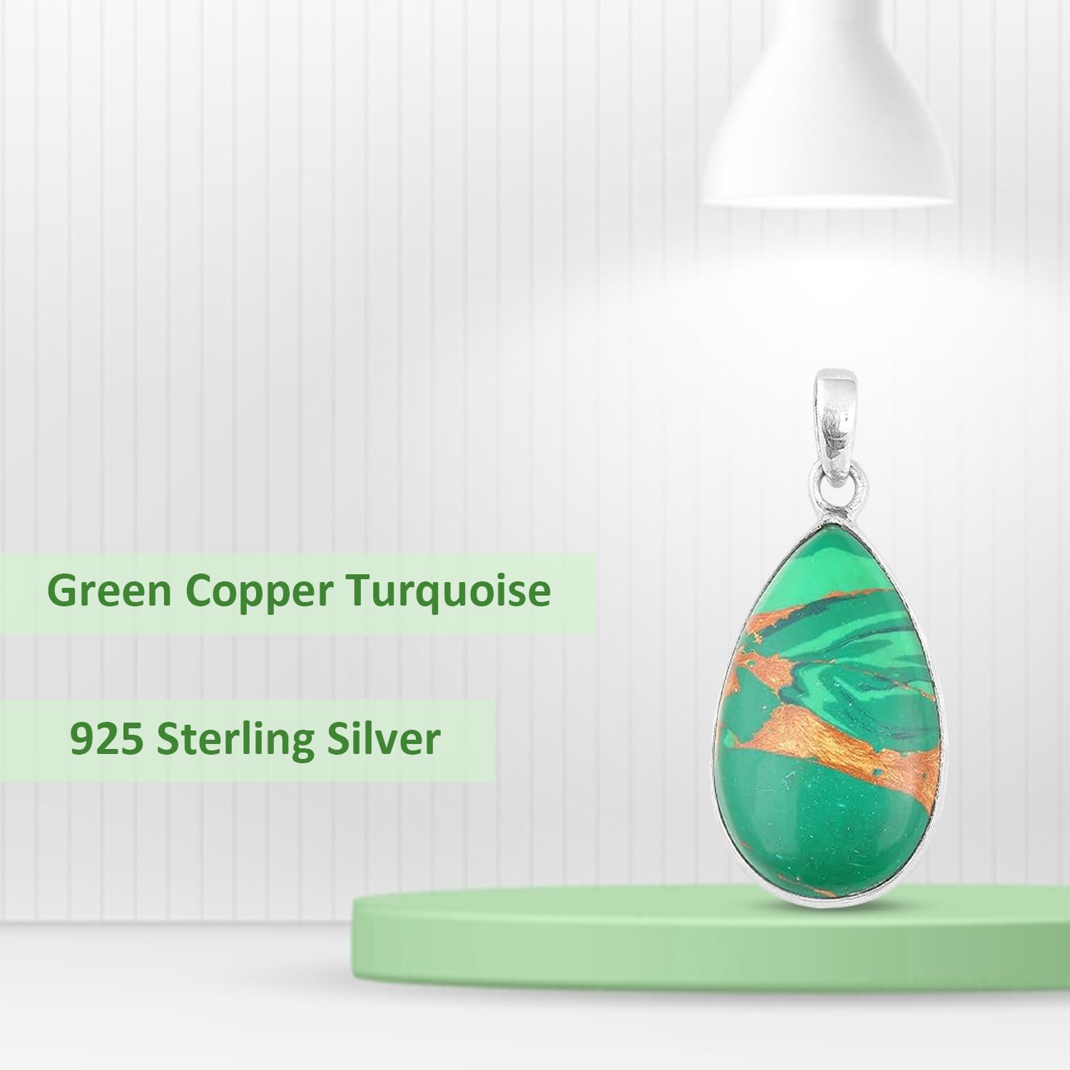 Green Copper Turquoise Pendant, 925 Sterling Silver Pendants, Gift For Girlfriend, Bohemian Pendants
