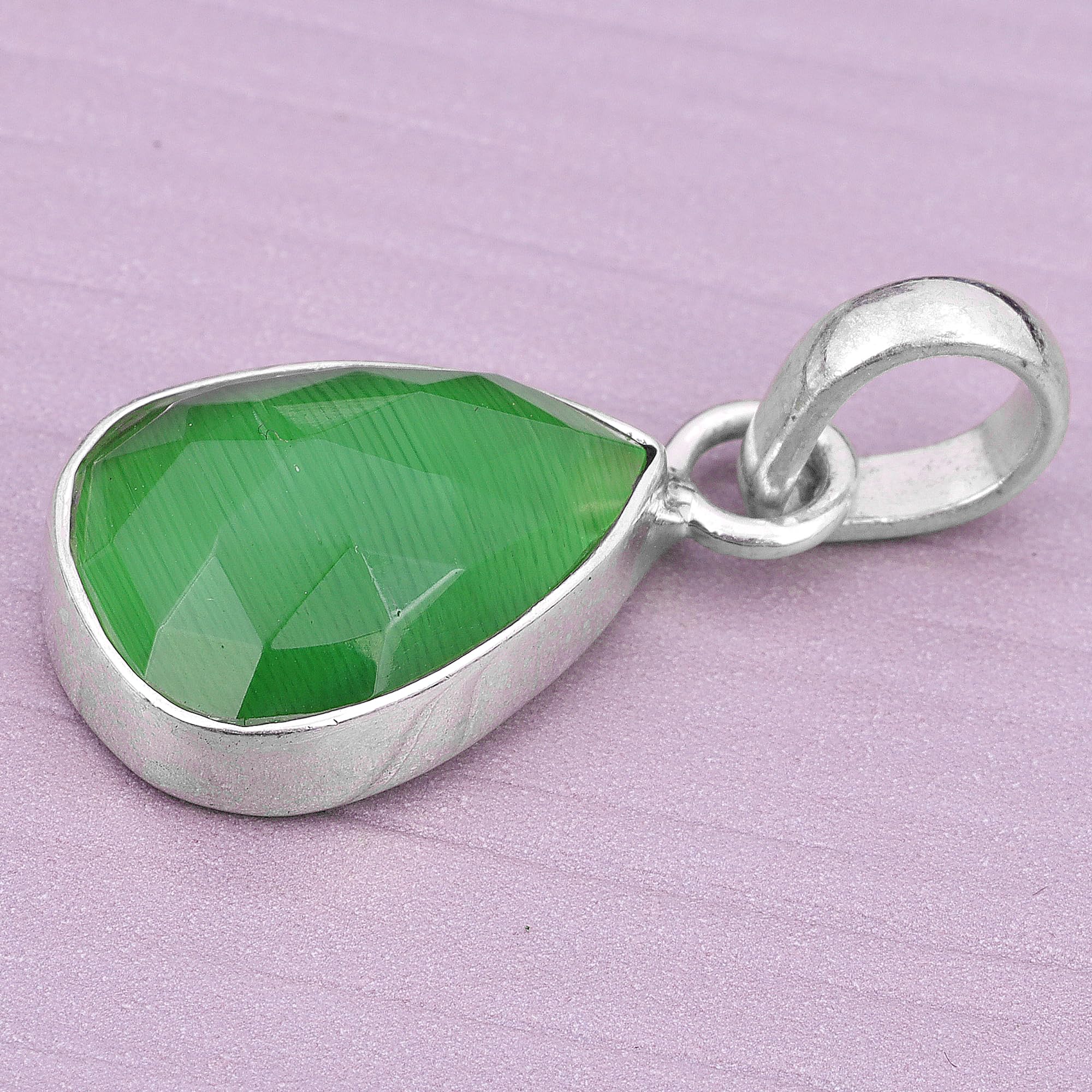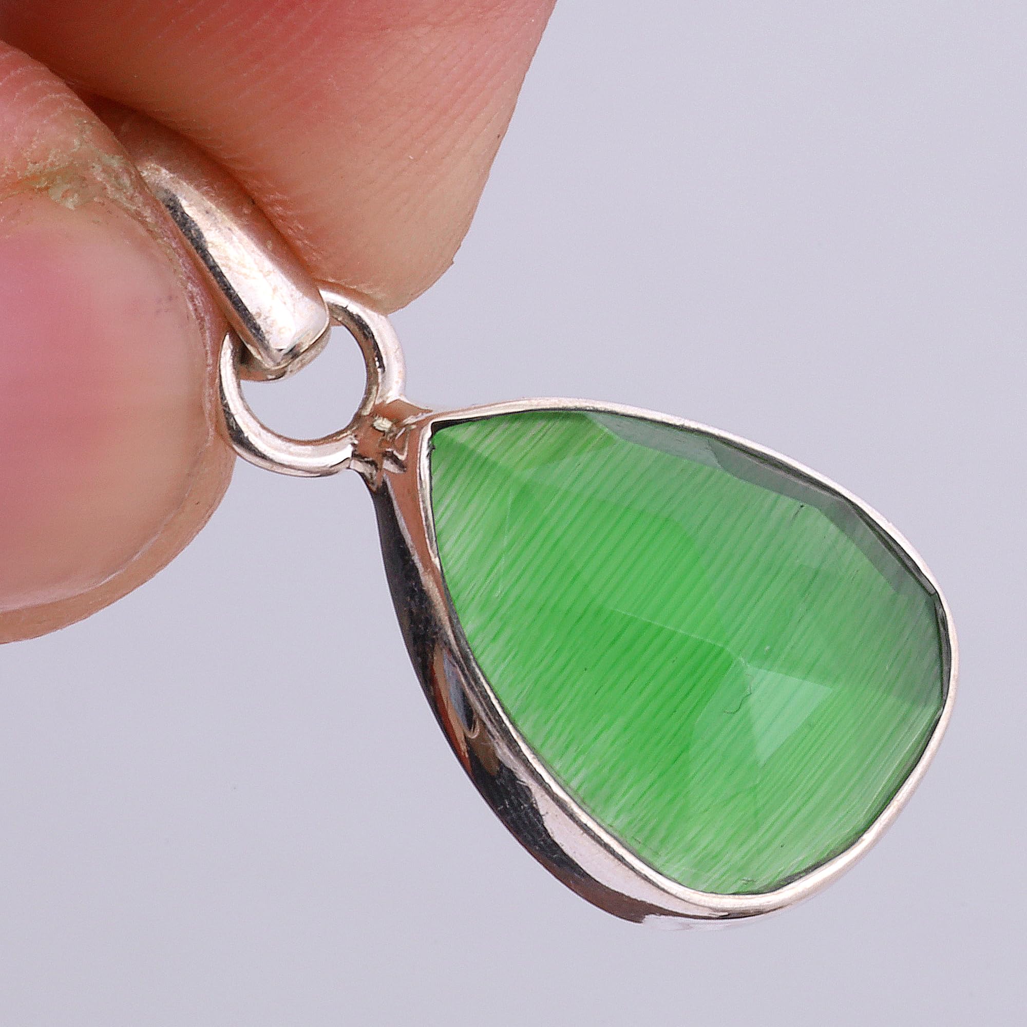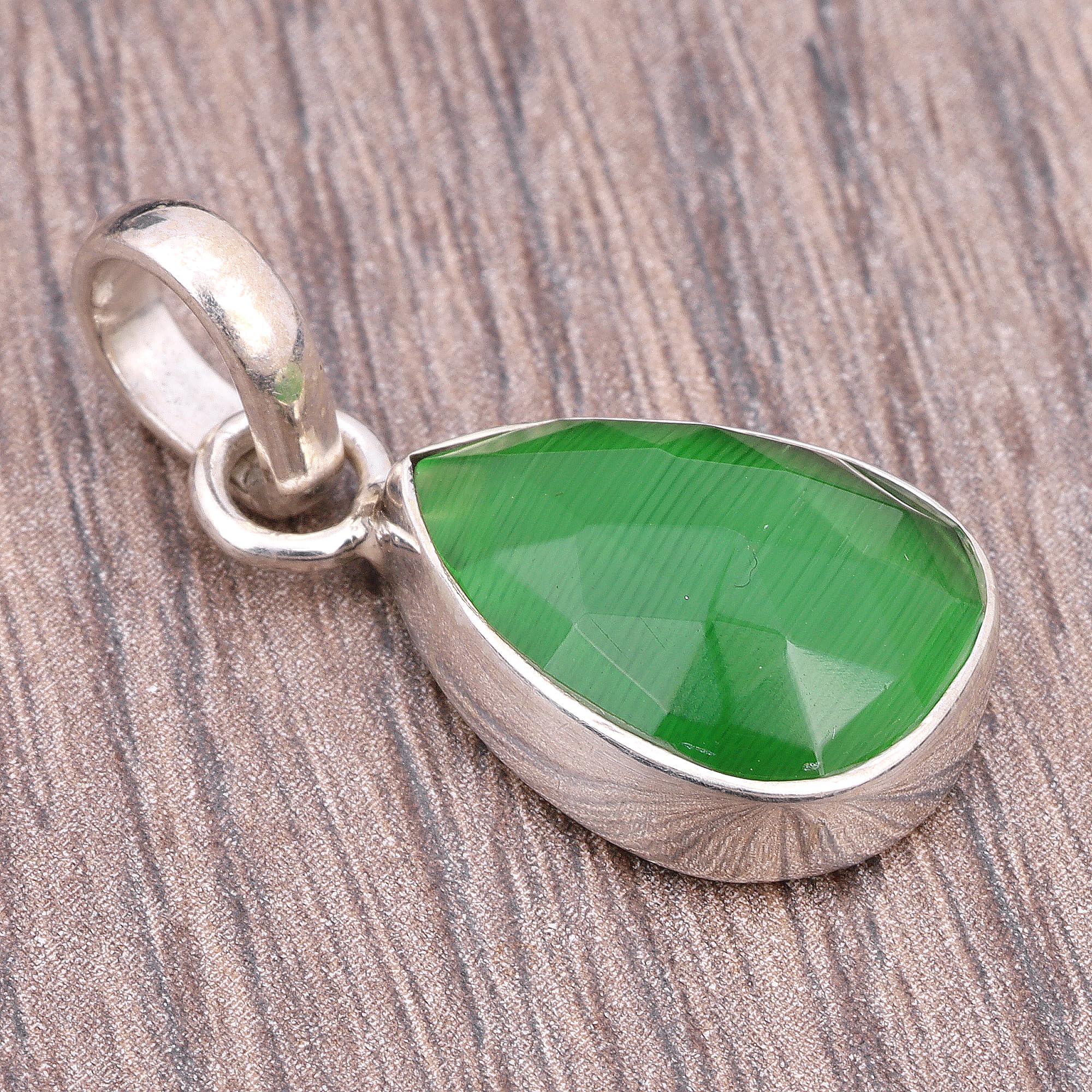 Green Glass Pendant, 925 Sterling Silver Pendant, Handmade Natural Gemstone Gifts