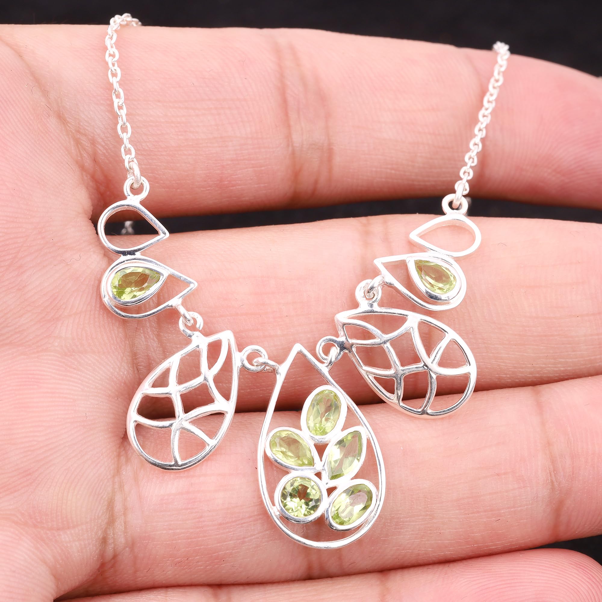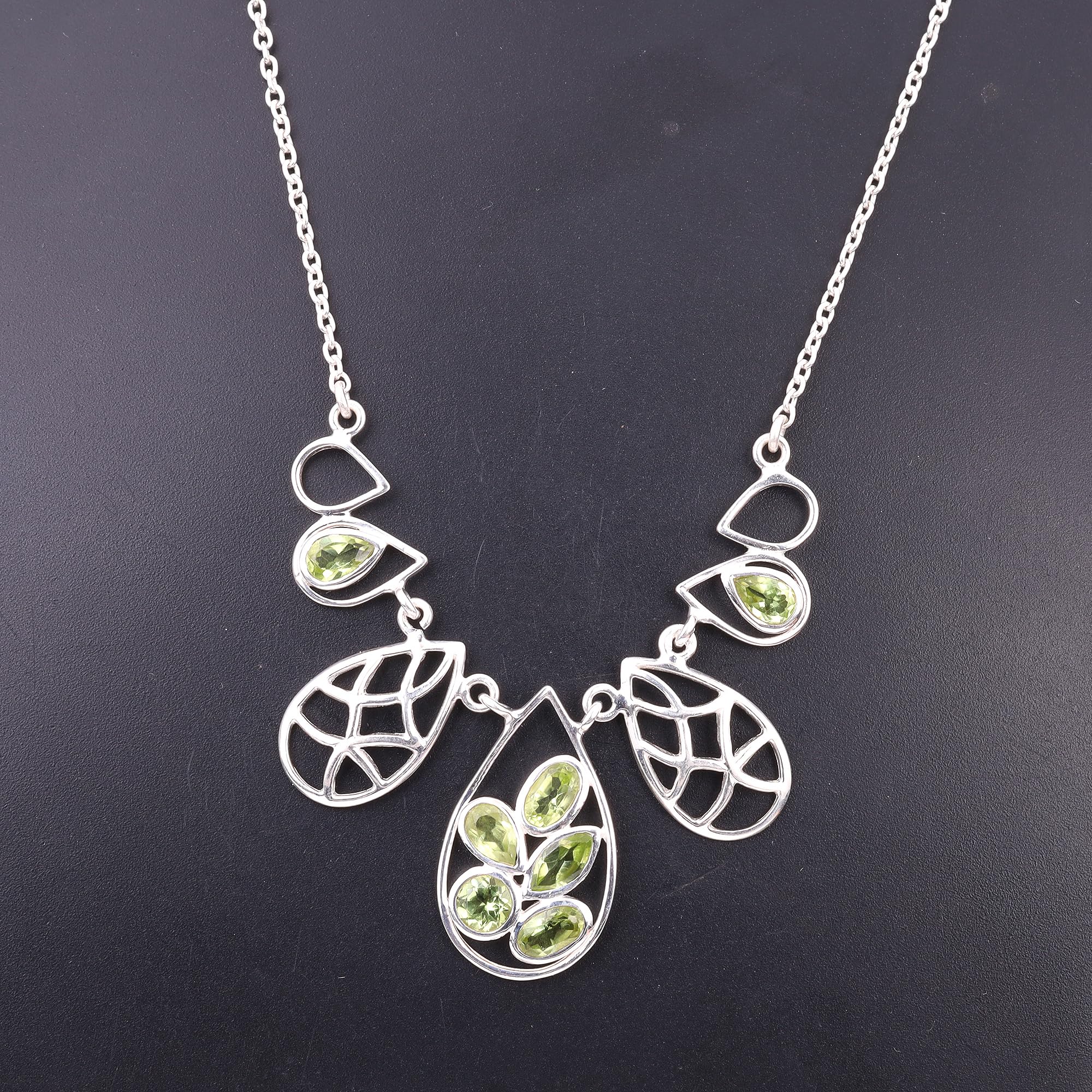 Green Peridot Pendant Handmade Necklace Jewelry 925 Sterling Silver Chain Necklace