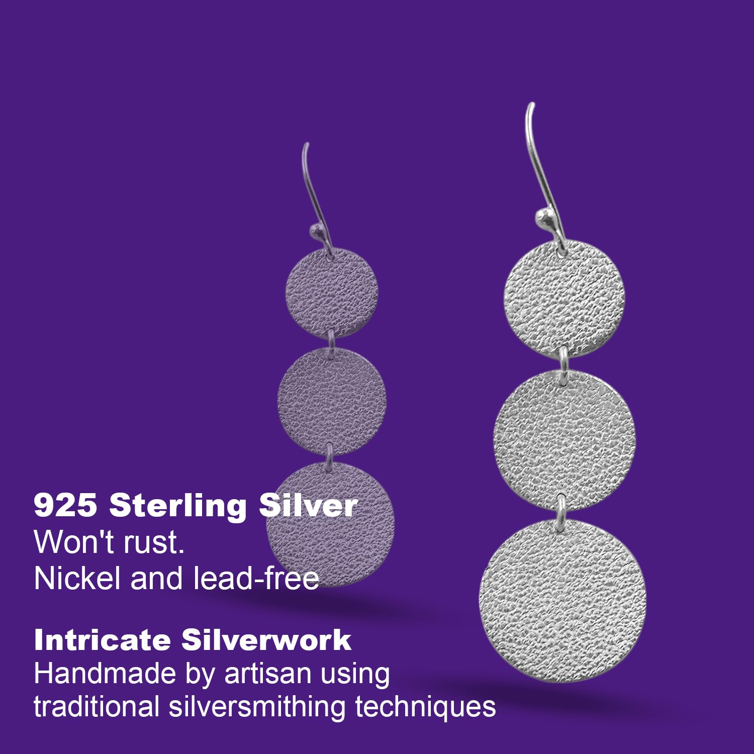 Hammered Finish Earring, Healing Gemstone Earring, 925 Sterling Silver Earring, Bohemian Earring