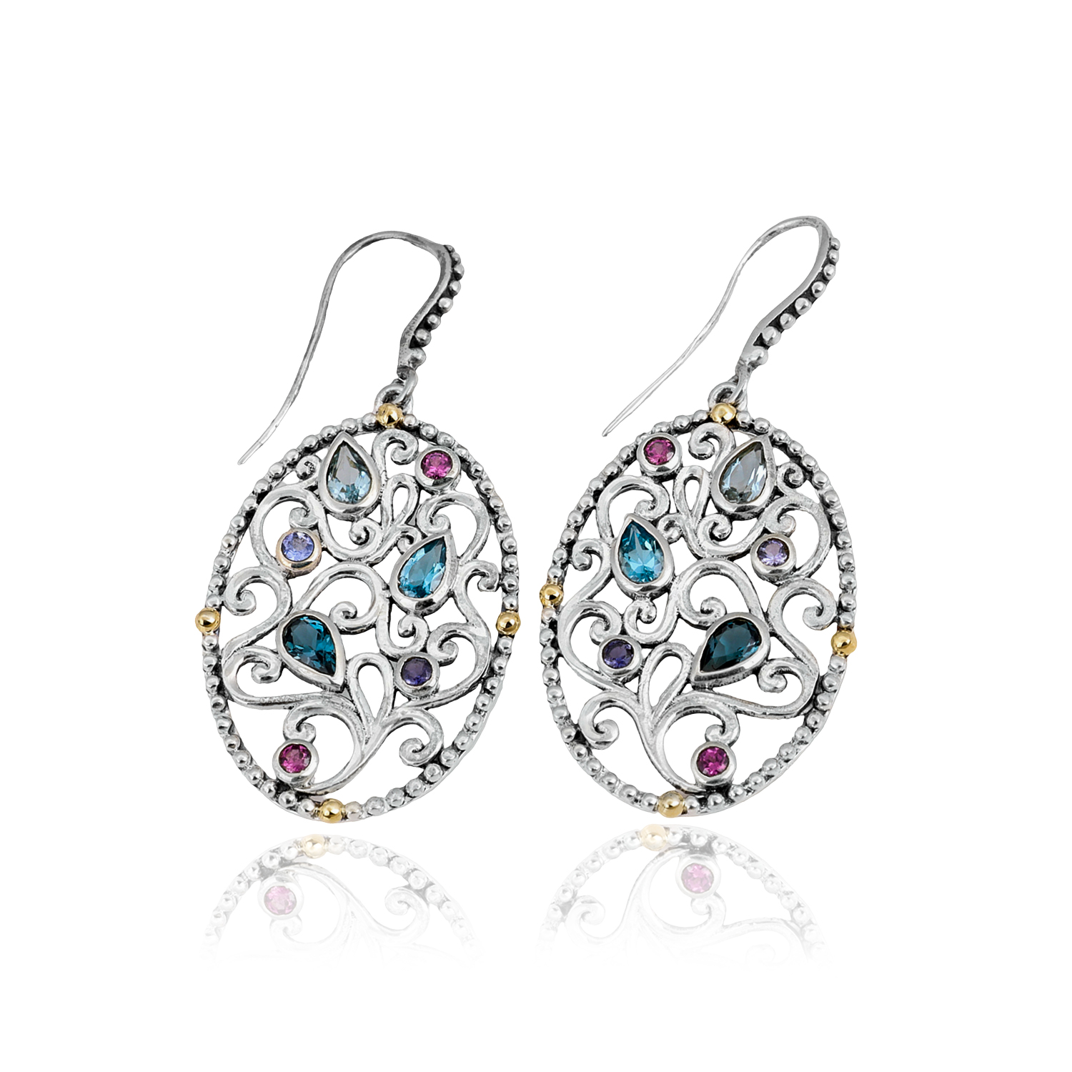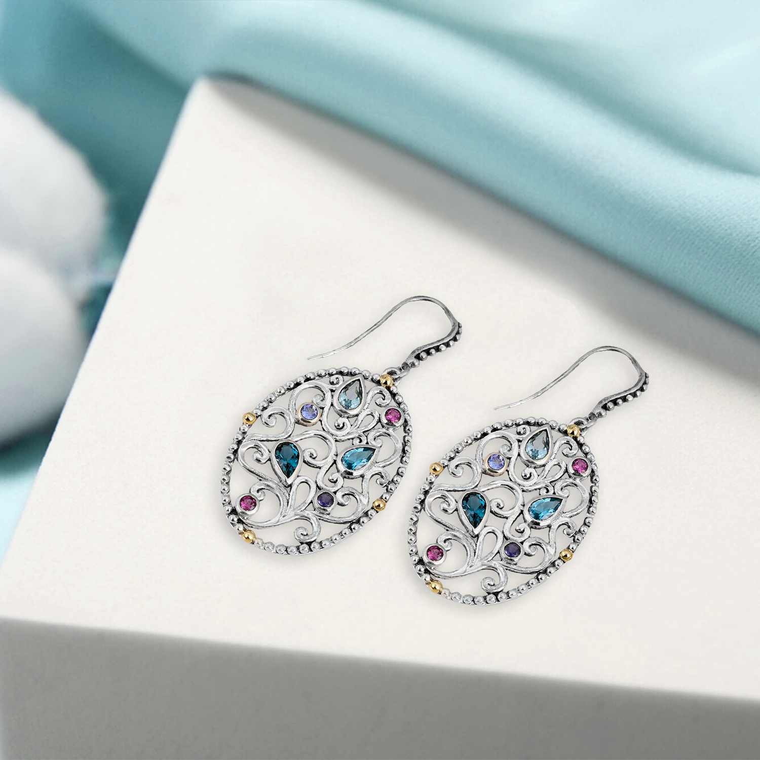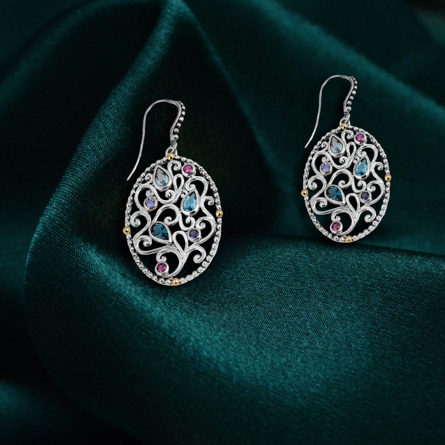 These earrings feature intricate filigree artistry, a timeless technique that enhances the feminine appeal of this dual-gemstone design. Crafted in skin-friendly, tarnish-resistant 925 sterling silver, they offer both visual beauty and practical comfort for everyday and occasion wear.