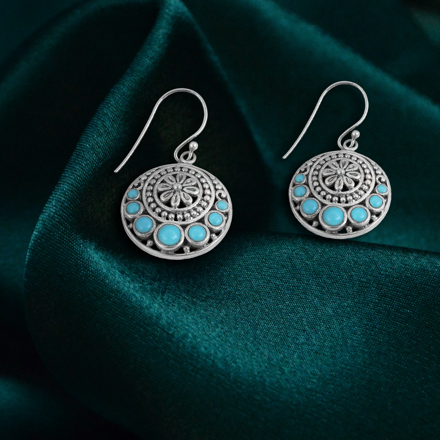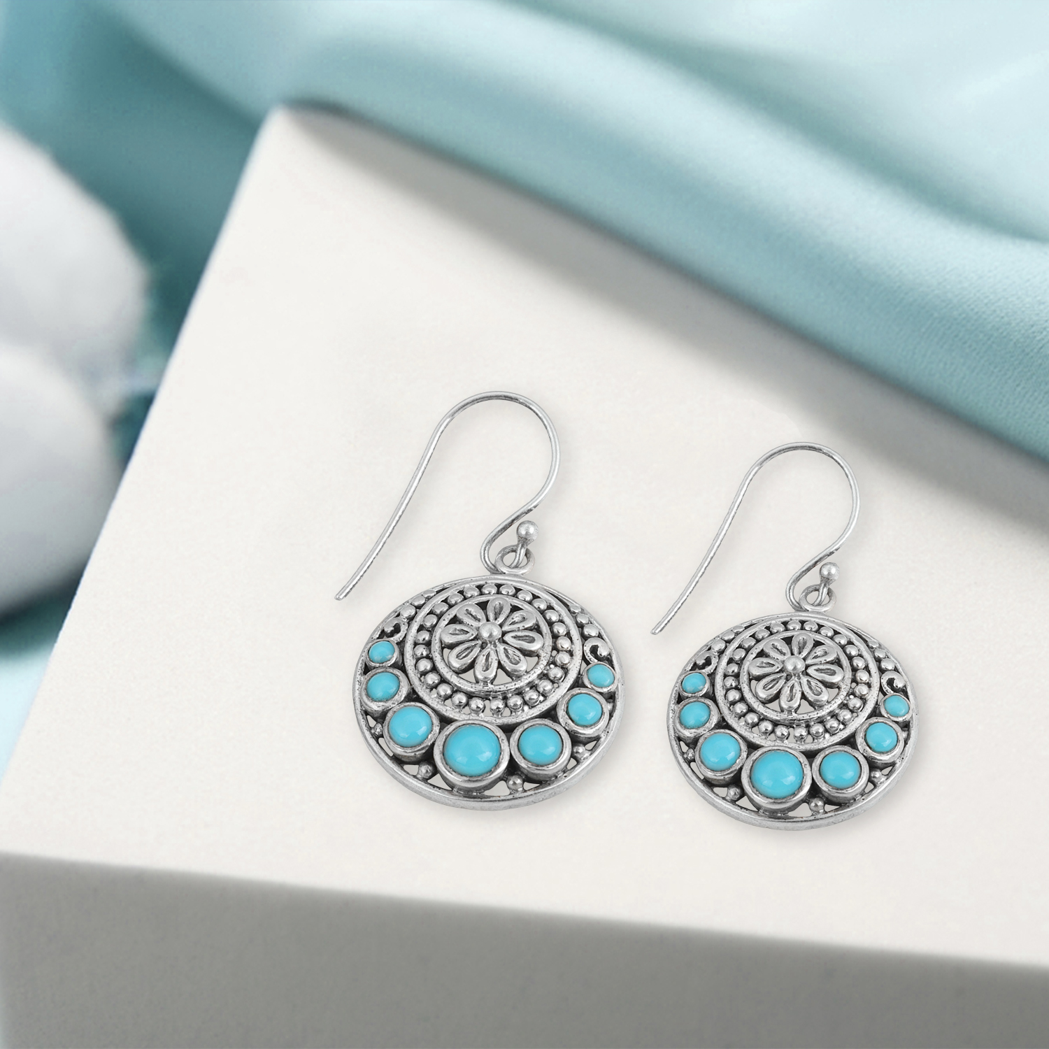 Elevate your style with Meadows 925 Sterling Silver Turquoise Dangle Earrings, exquisitely handcrafted to bring a splash of vibrant color and timeless elegance to your jewelry collection. Featuring genuine turquoise gemstones known for their spiritual healing properties, these earrings are perfect for those who love meaningful and stylish accessories.