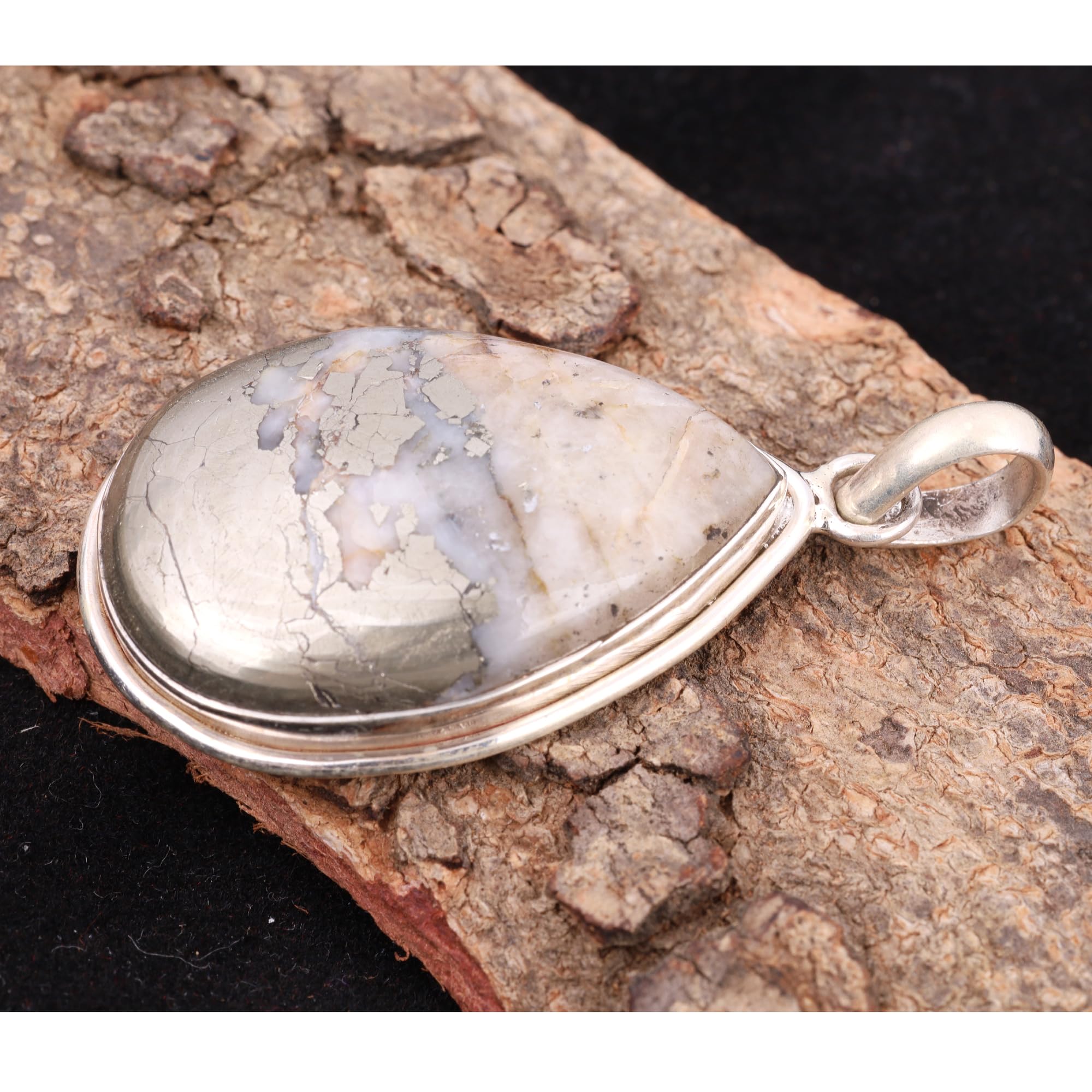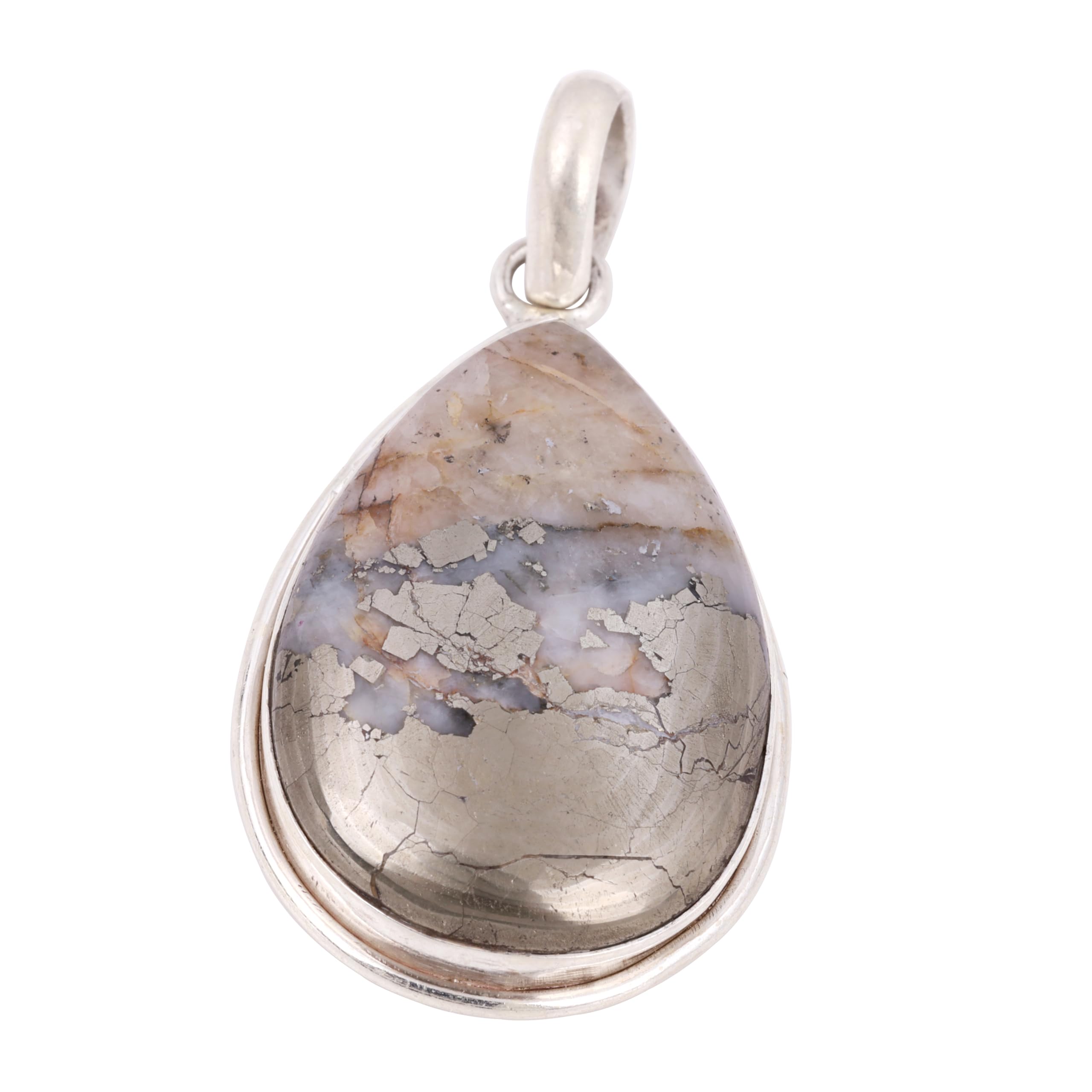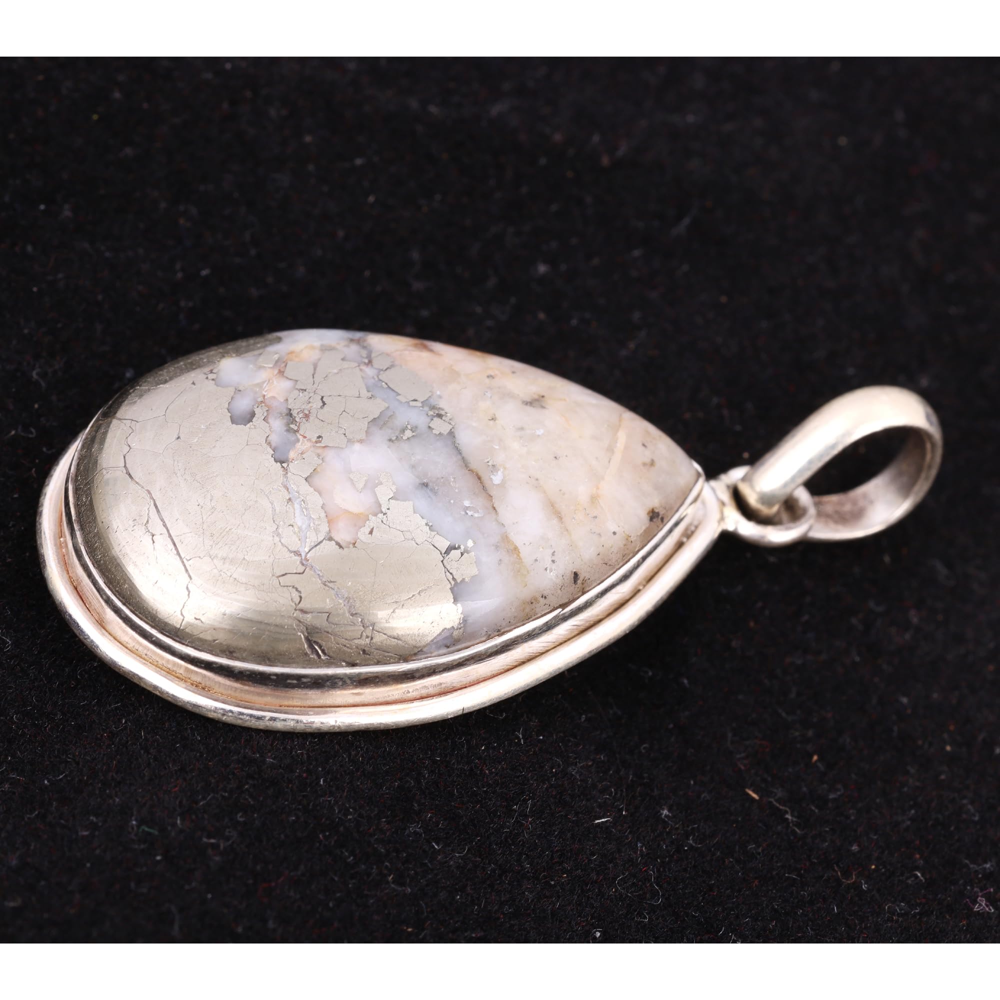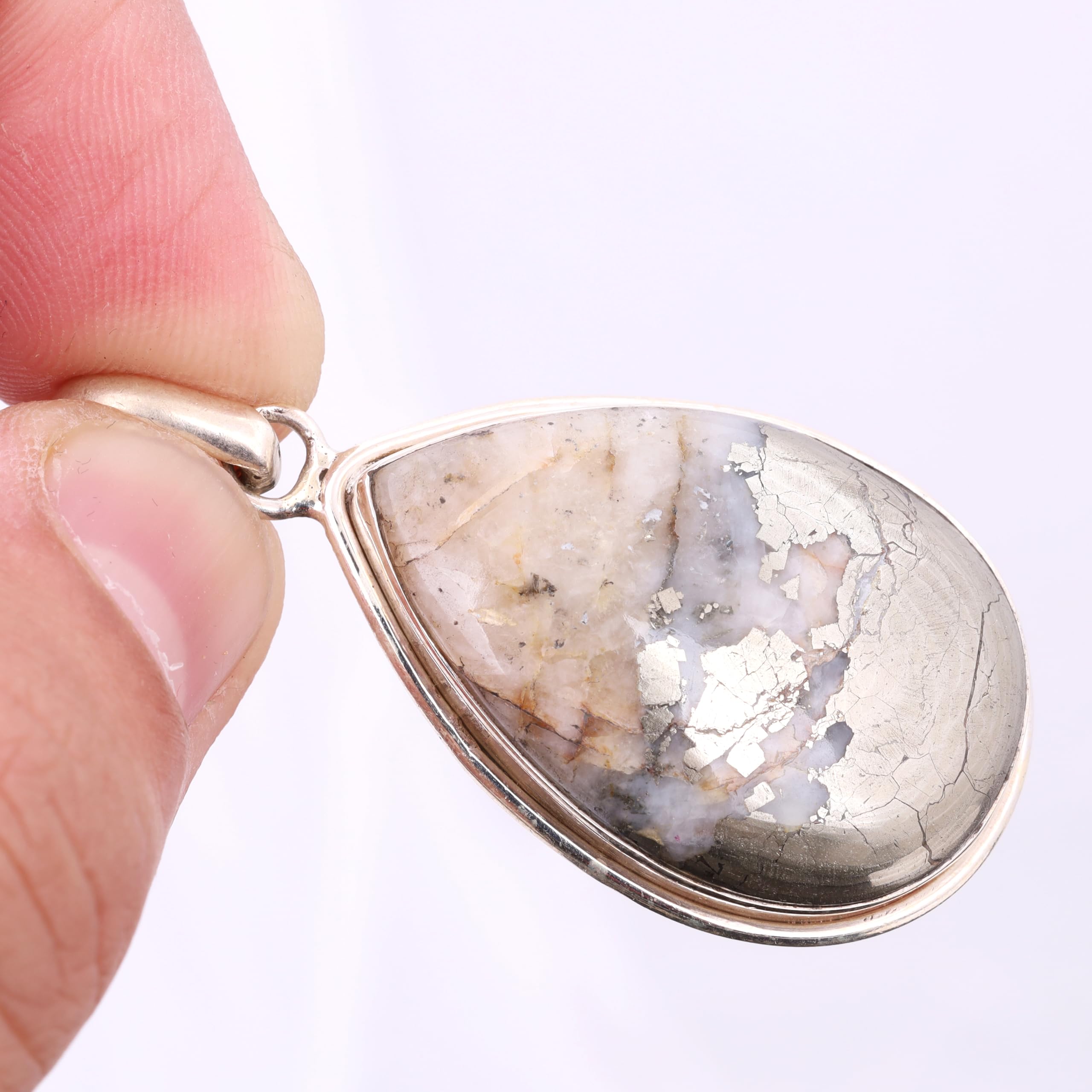 Iron Pyrite Cabochon Pendant, 925 Sterling Silver Pendant Statement Jewelry