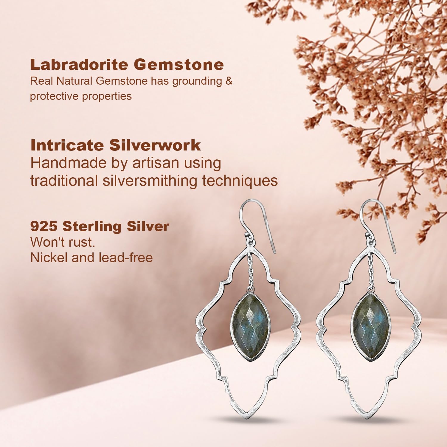 Labradorite Earring, Healing Crystal Earring, 925 Sterling Silver Earring, Bohemian Earring mothers day gifts