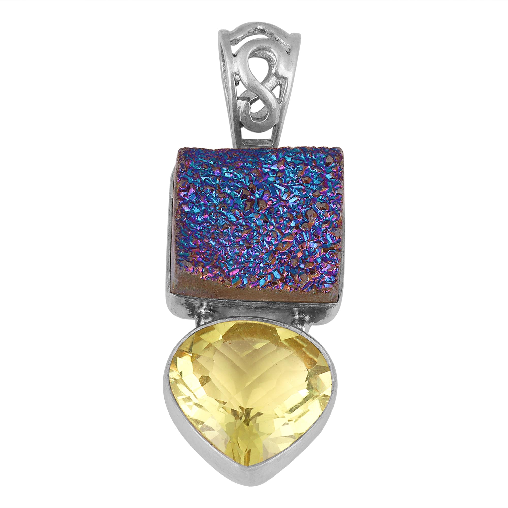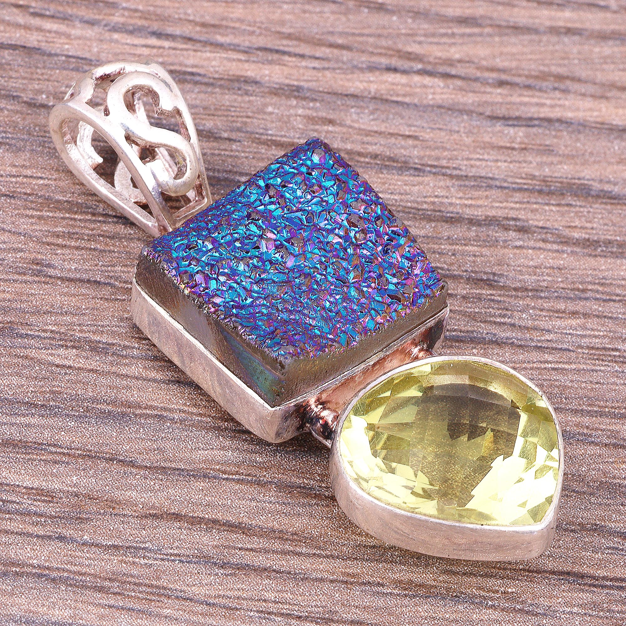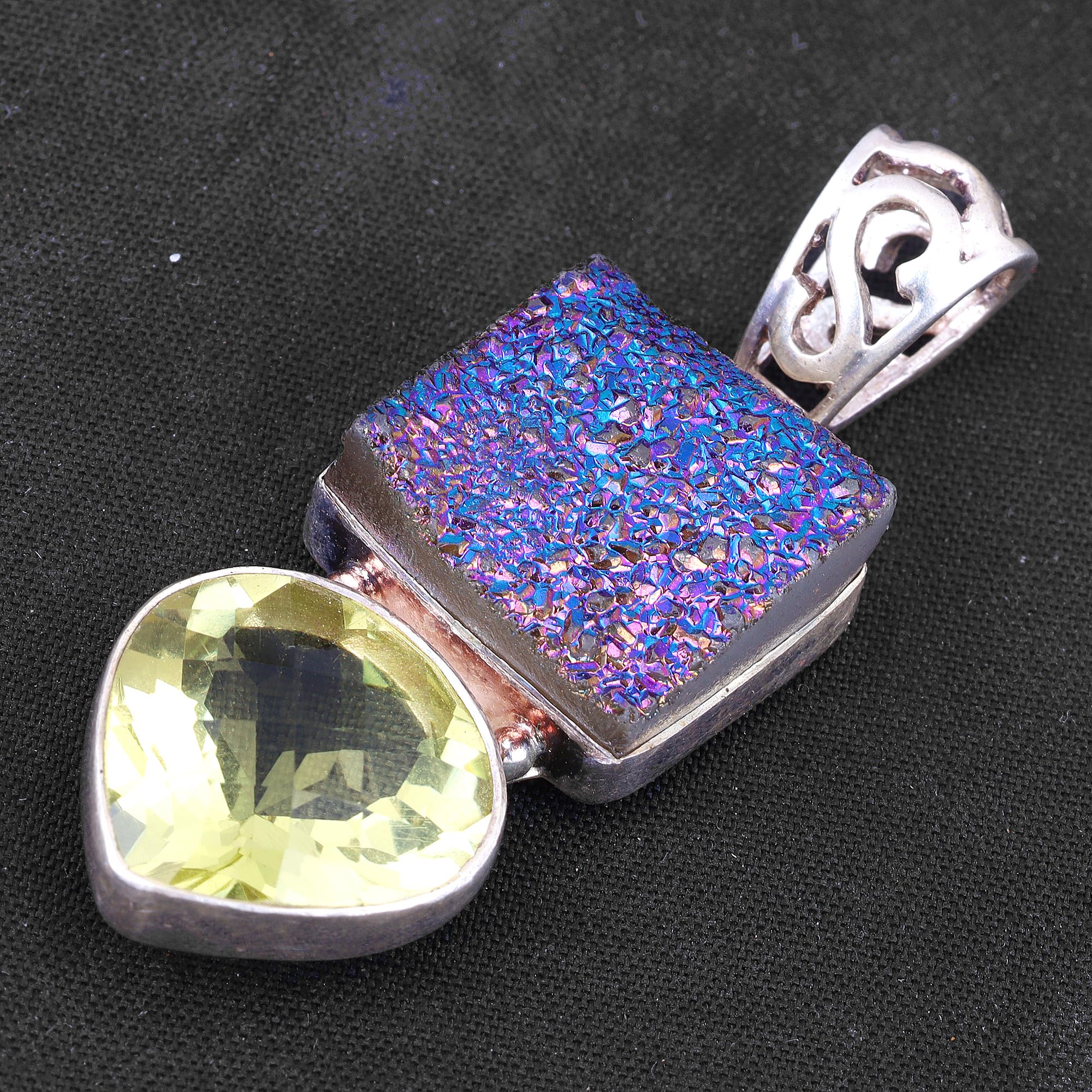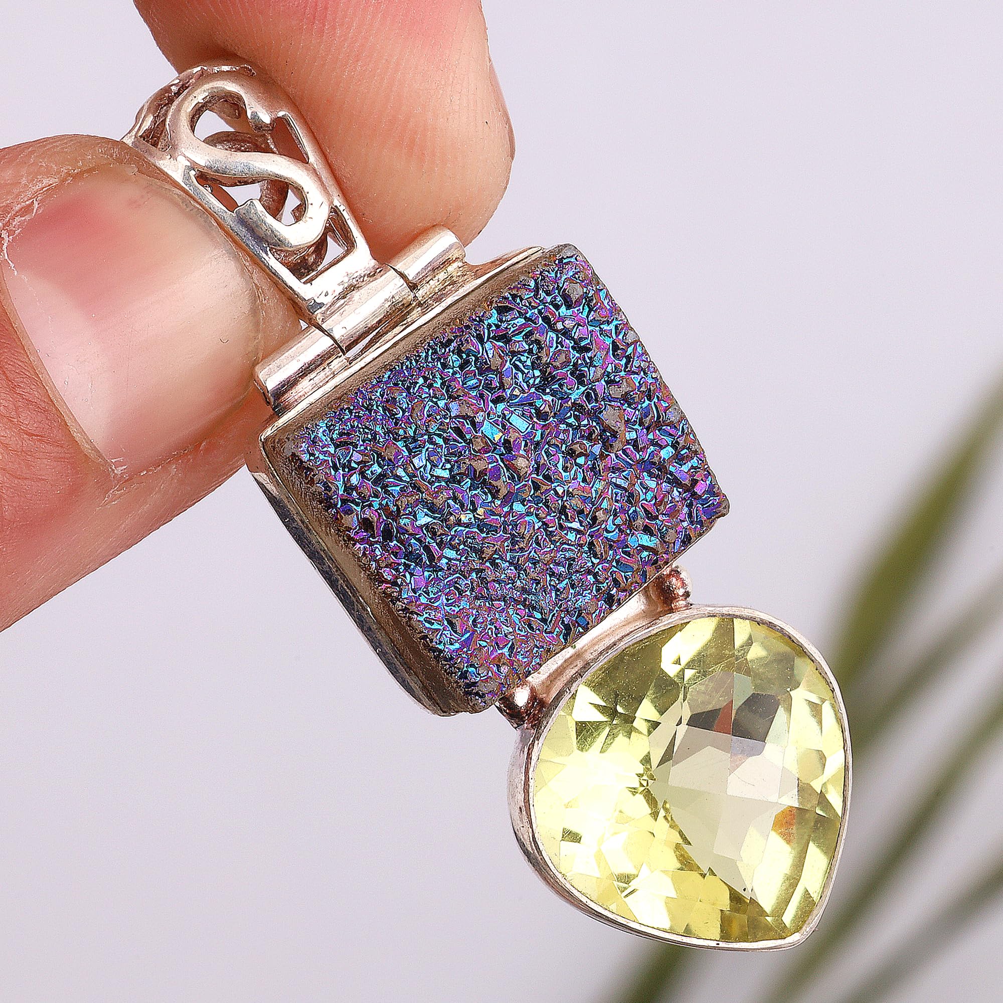 Lemon Quartz & Titanium Druzy Pendant, 925 Sterling Silver Pendant, Handmade Gemstone Gifts