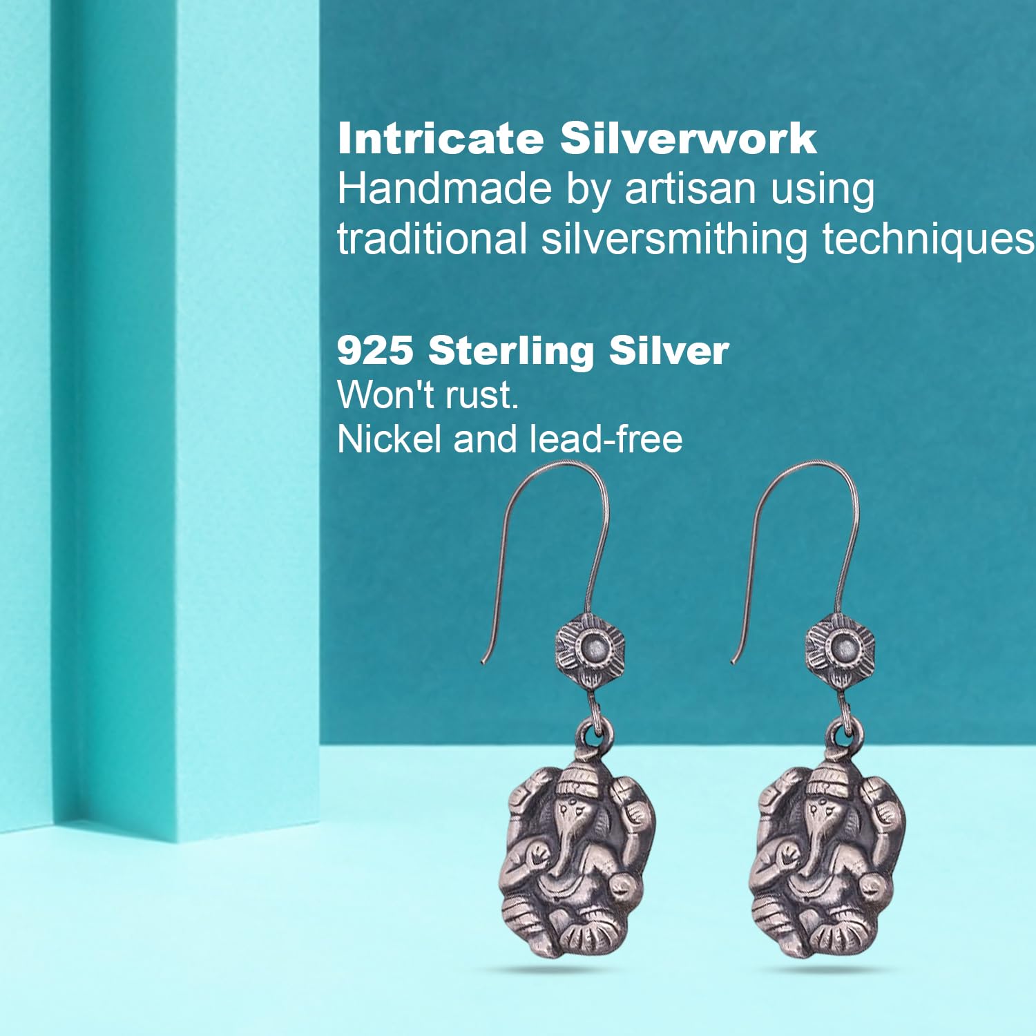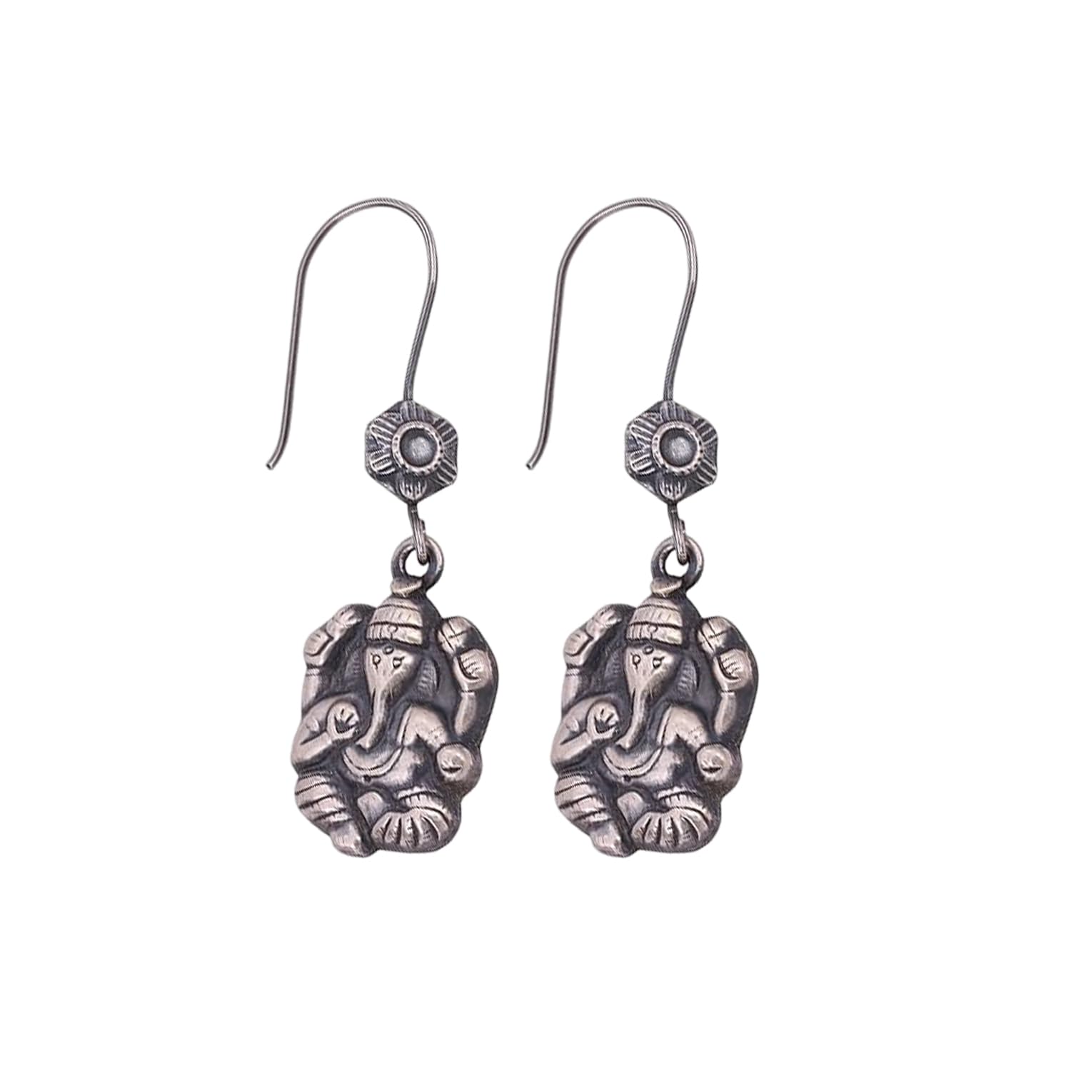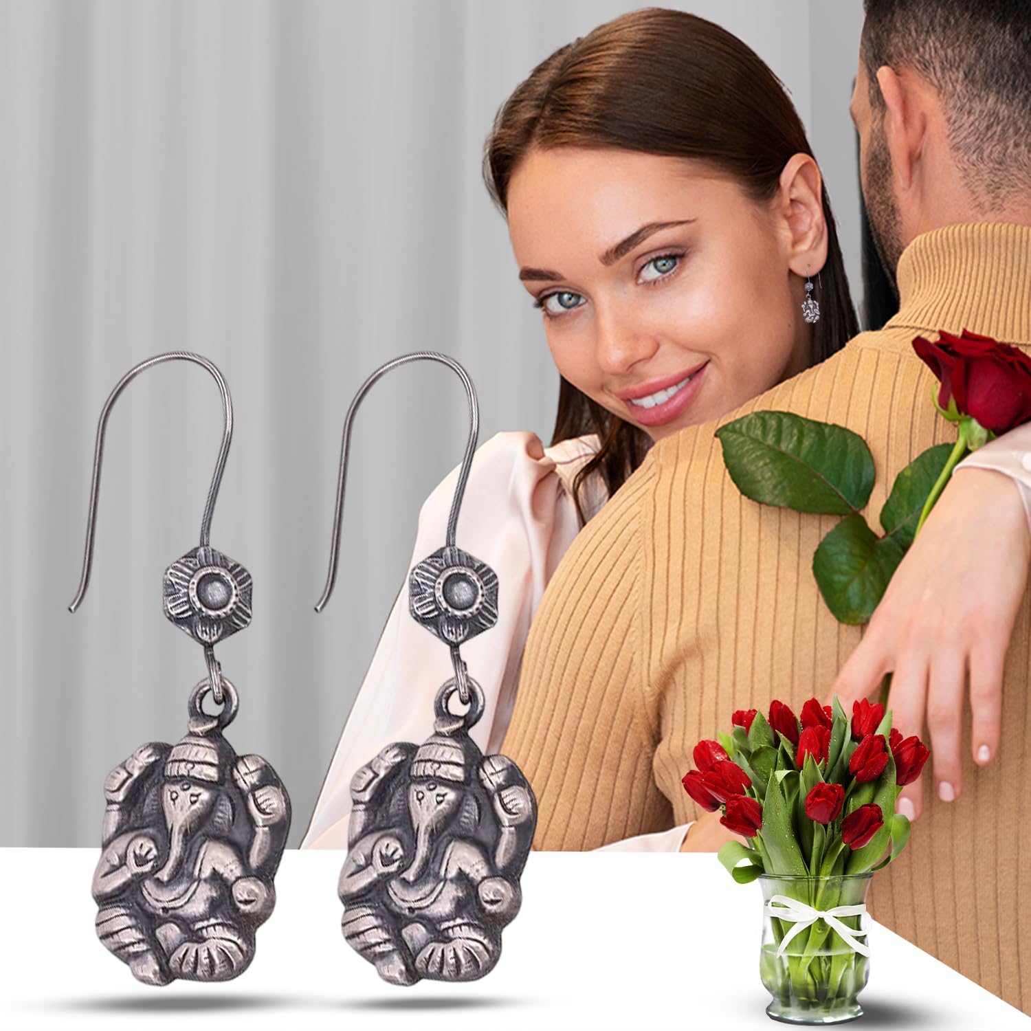 Add movement and magic to your look with these handcrafted Lord Ganesha Oxidized??Dangle Earrings, made in 925 Sterling Silver. Inspired by the elegance of Indian craftsmanship, these earrings beautifully sway with every step?making them perfect for both festive occasions and everyday grace.