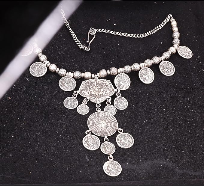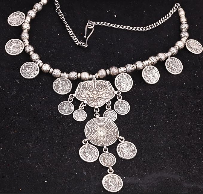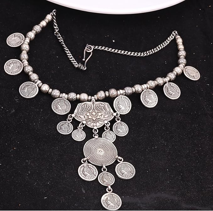 With a comfortable 19-inch chain, this necklace is designed for women who appreciate handmade, antique-style jewelry. Its nickel- and cadmium-free composition makes it safe and gentle for sensitive skin, while its vintage look makes it ideal for festive wear or gifting.