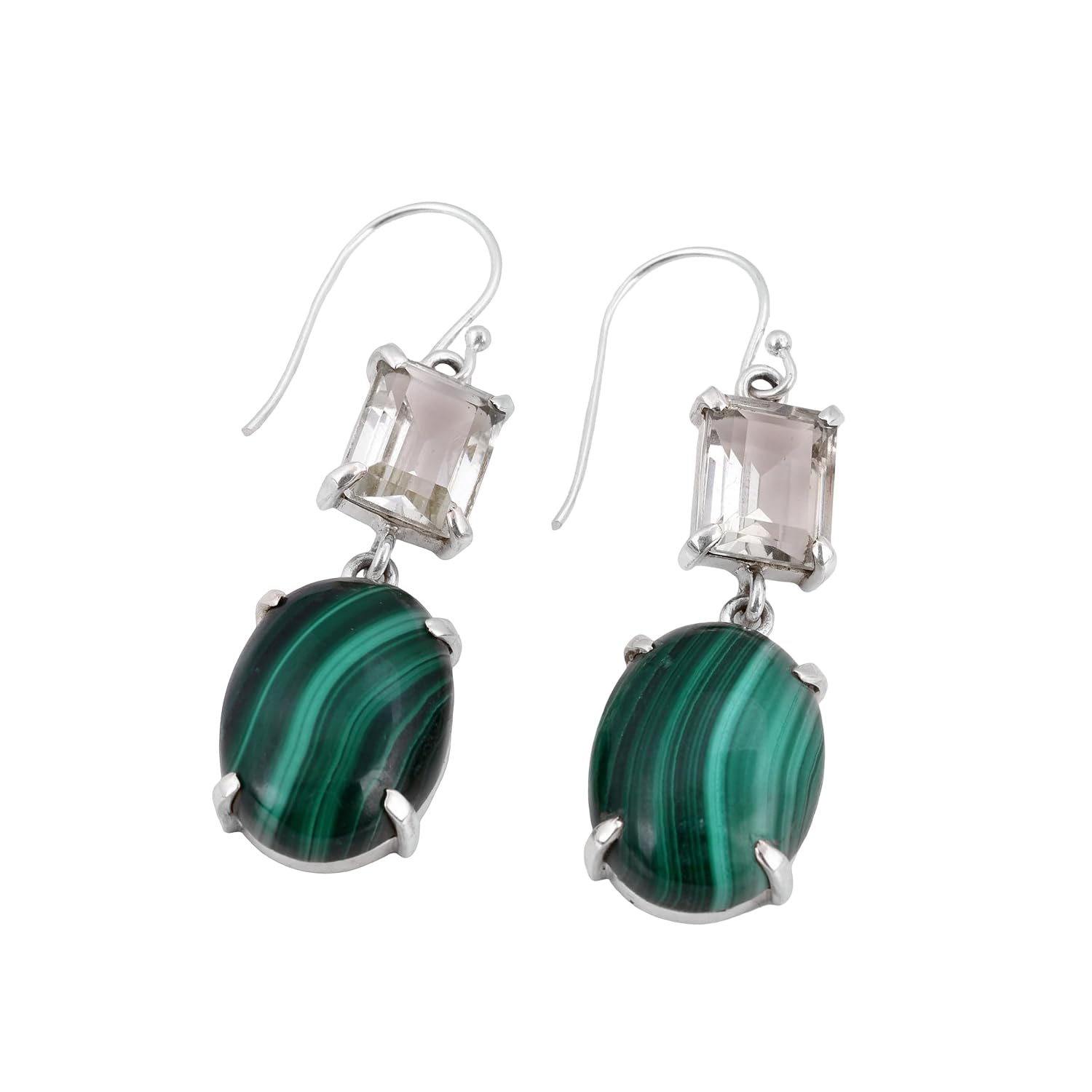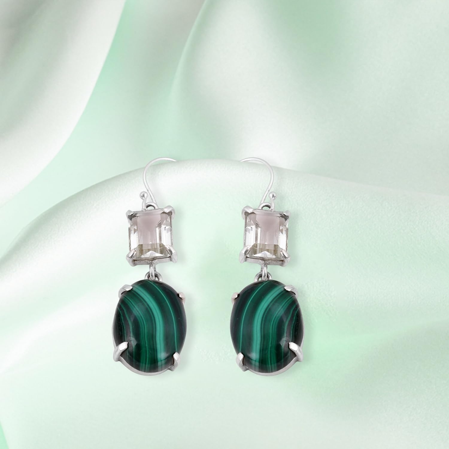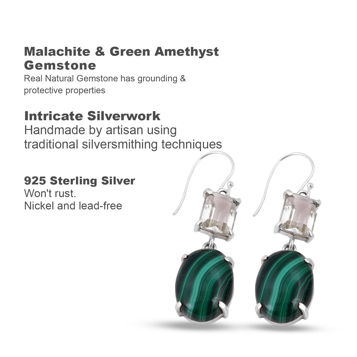 Malachite & Green Amethyst Earring Handmade Prong Setting Gemstone Earring For Women 925 Sterling Silver Earring mothers day gifts