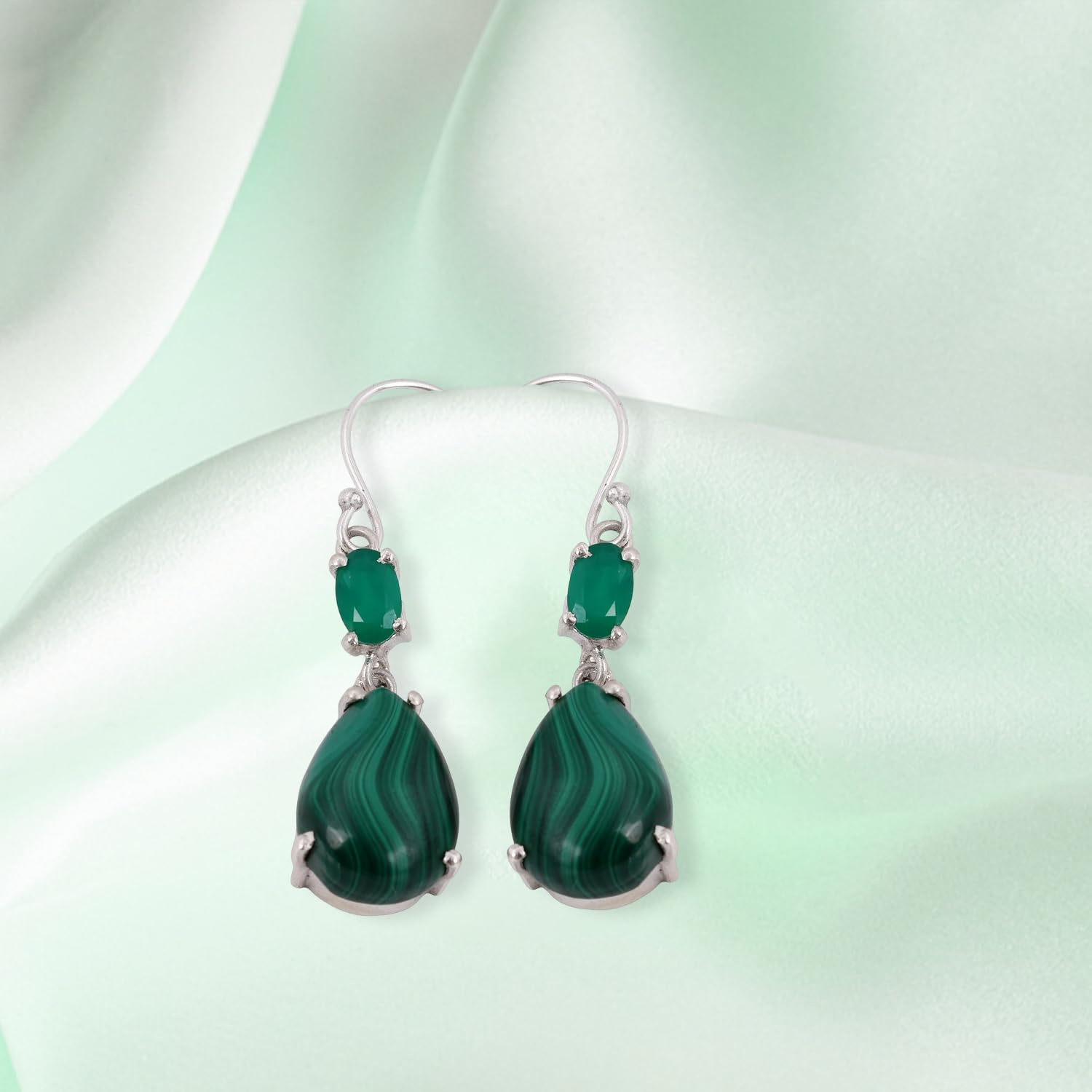 Malachite & Green Onyx Earring Handmade Prong Setting Earrings For Women 925 Sterling Silver Earring mothers day gifts