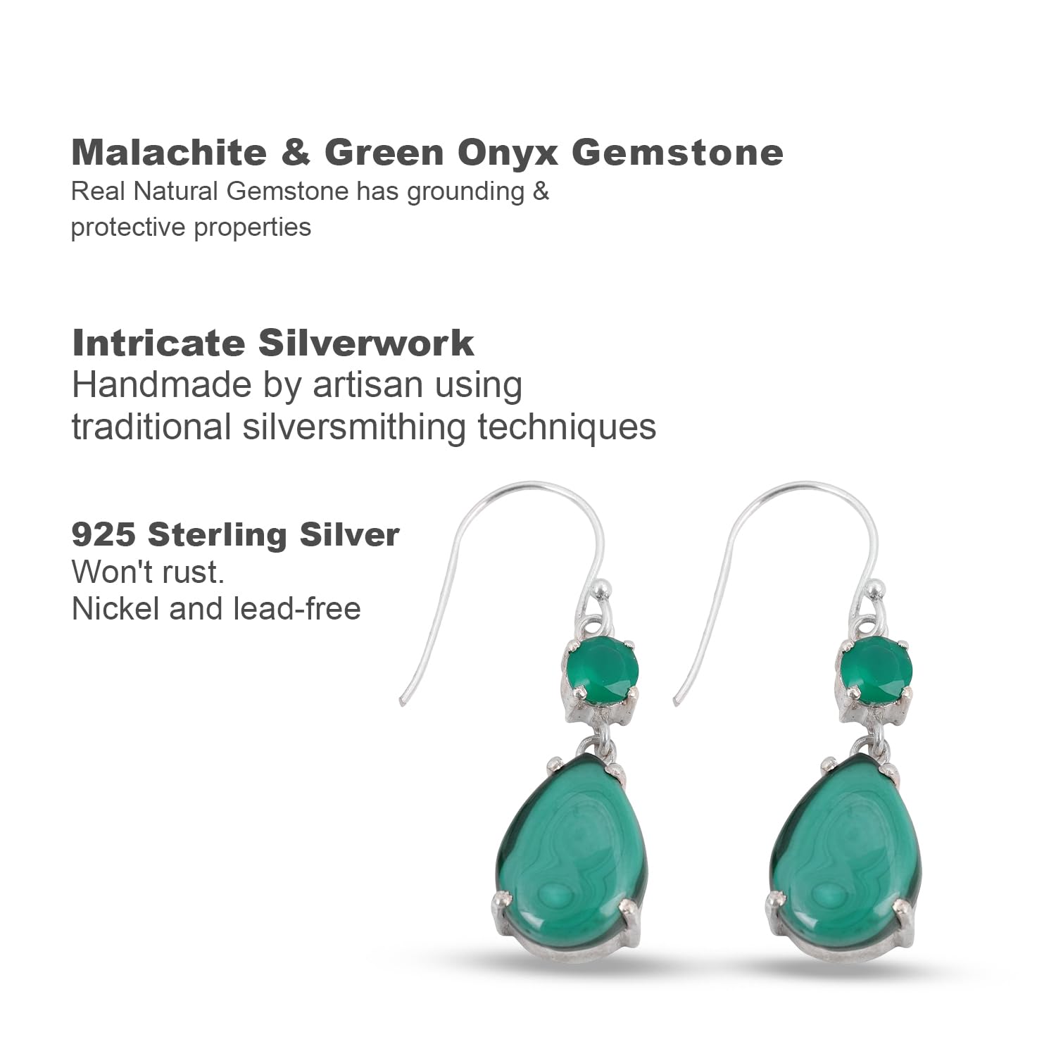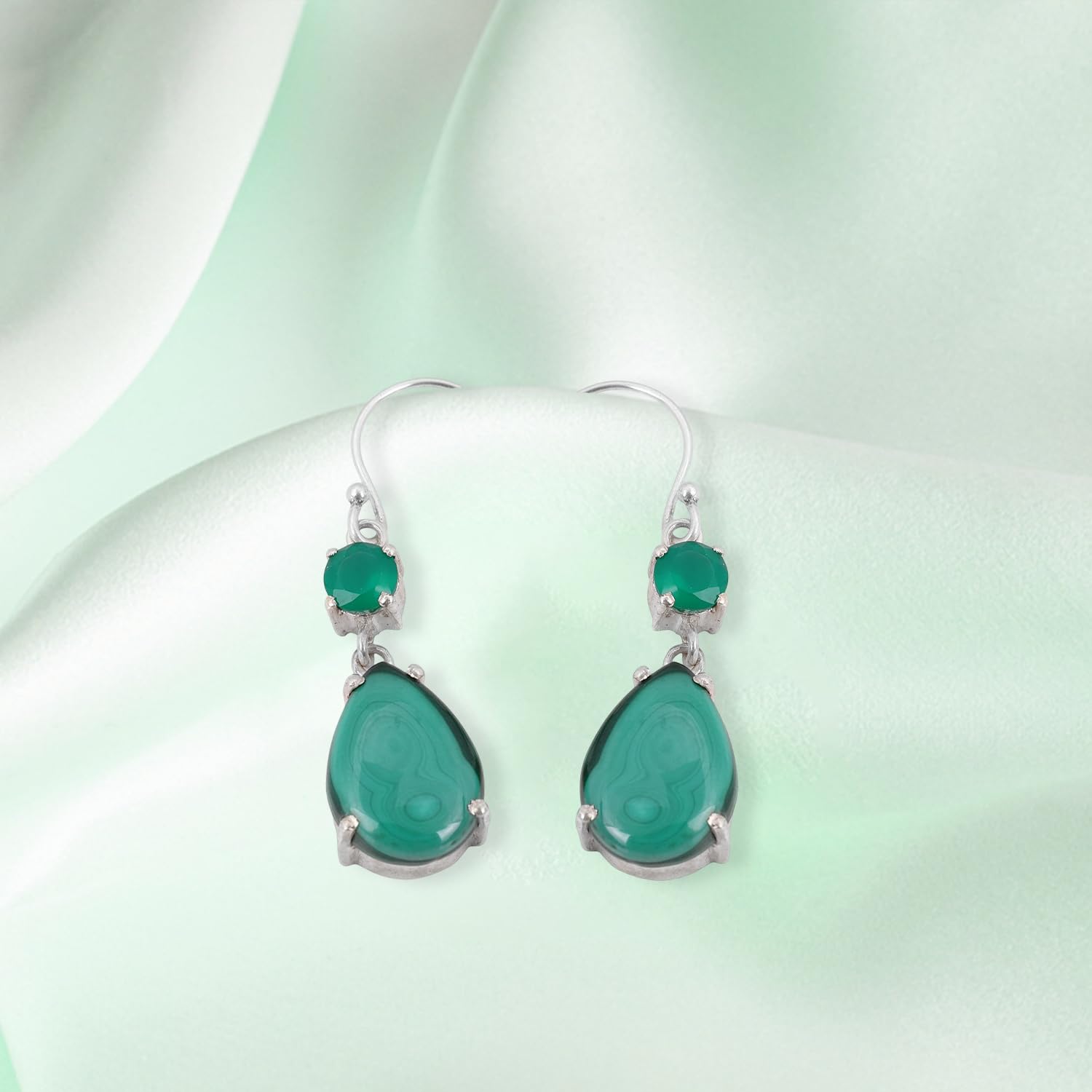 Malachite & Green Onyx Earring Handmade Prong Setting Earrings For Women 925 Sterling Silver Earrings mothers day gifts