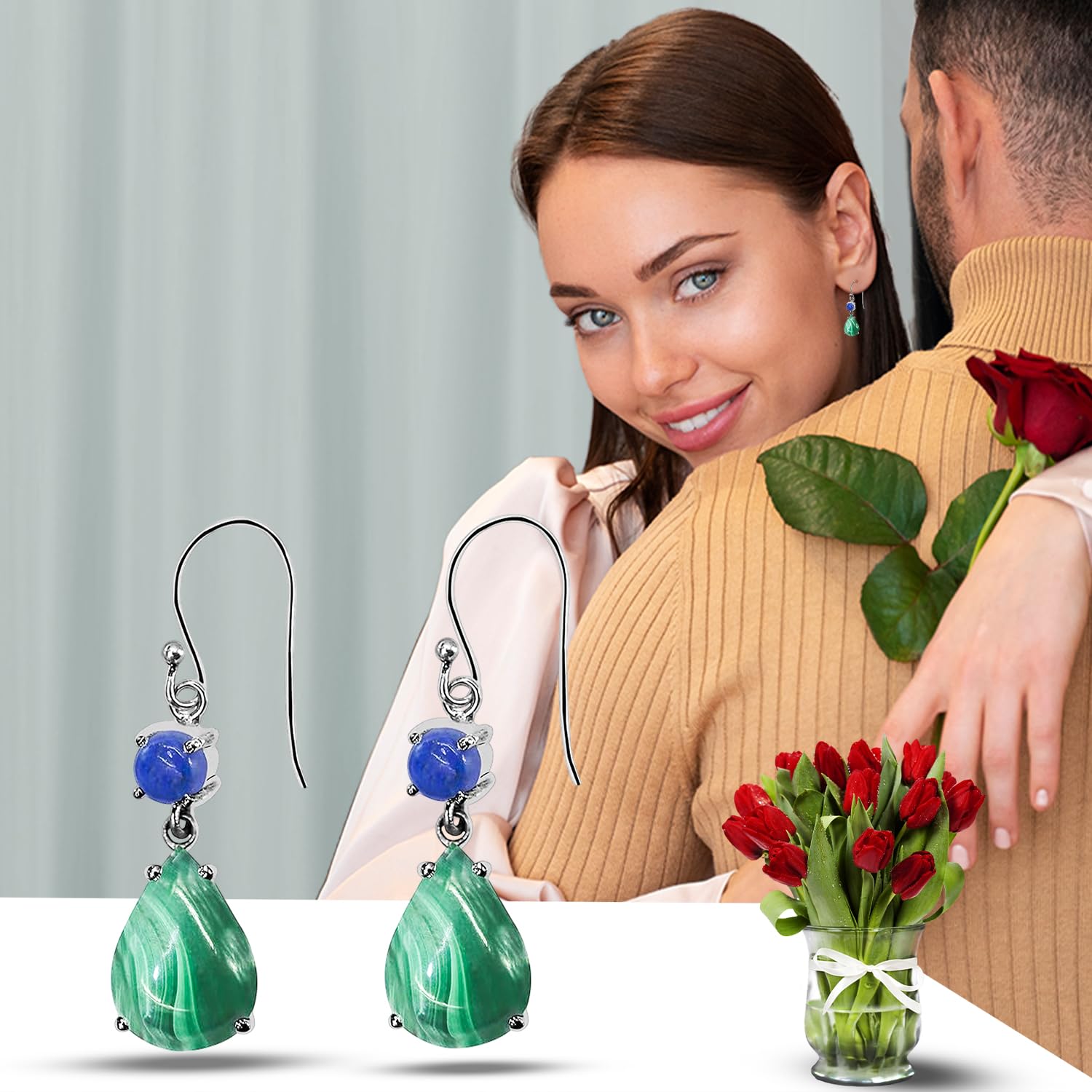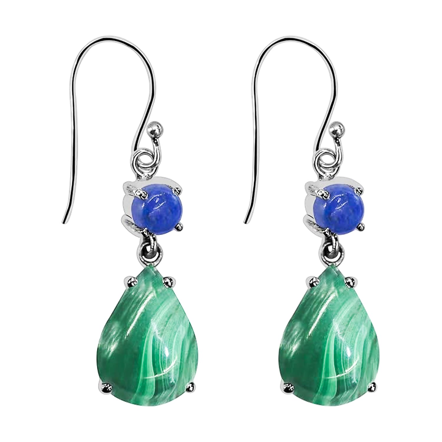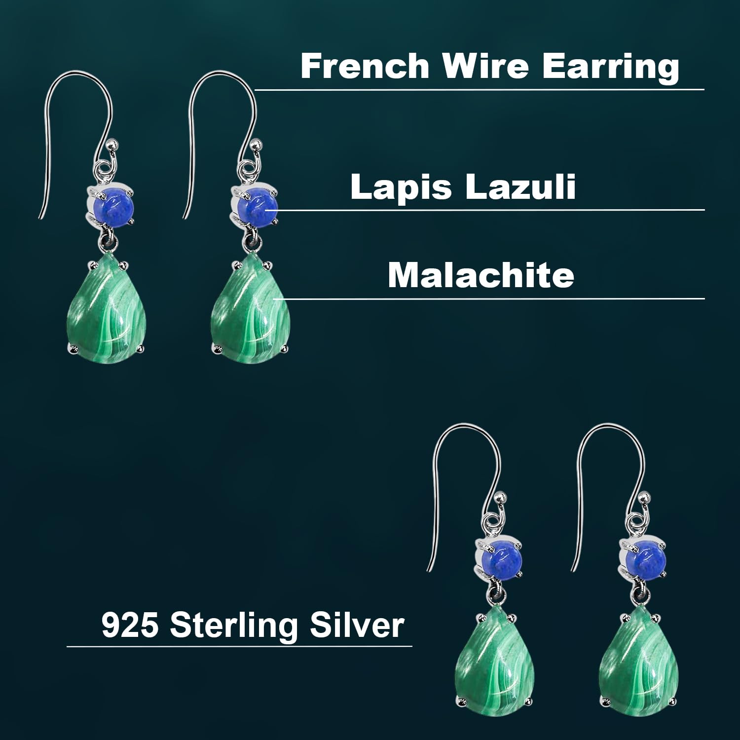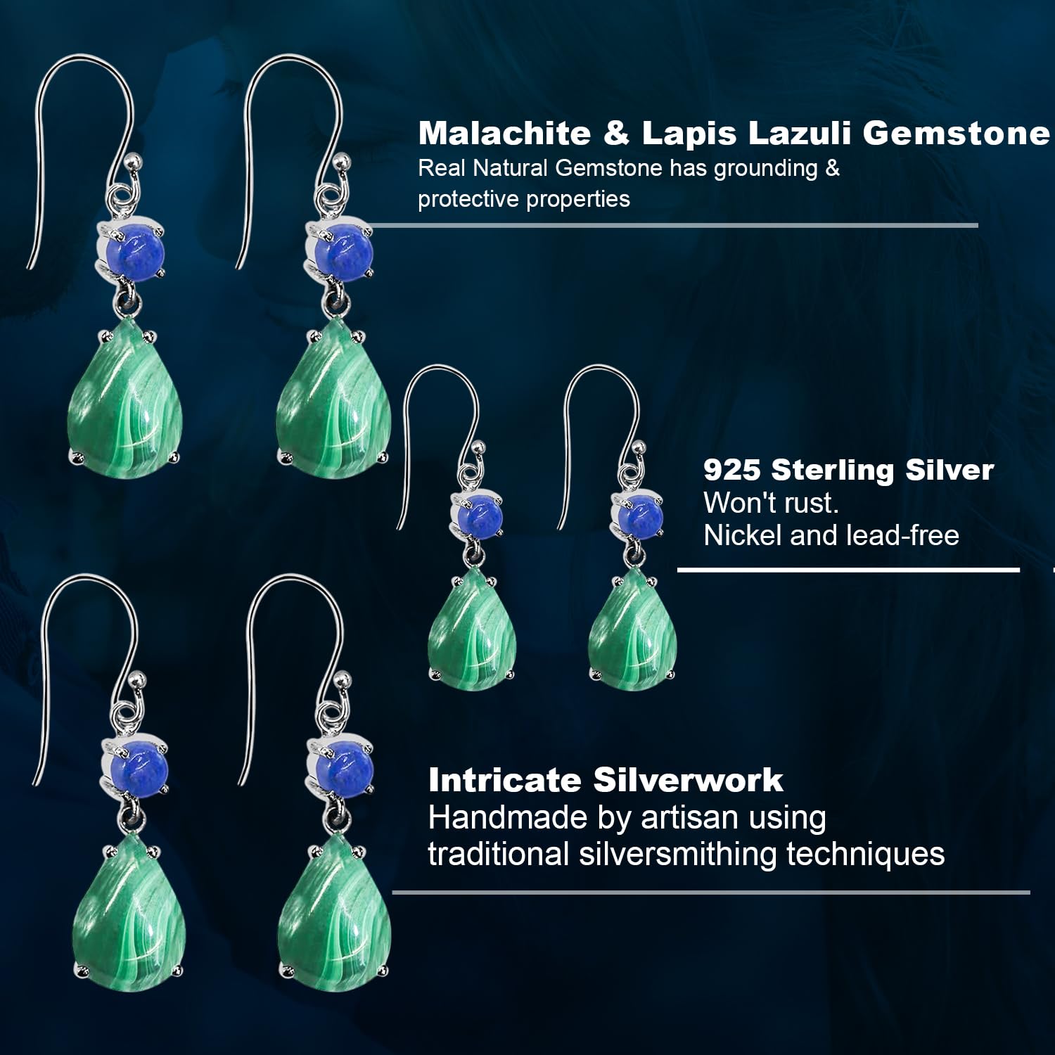Malachite & Lapis Lazuli Earring, Healing Crystal Earring, 925 Sterling Silver Earring, Handmade Earring