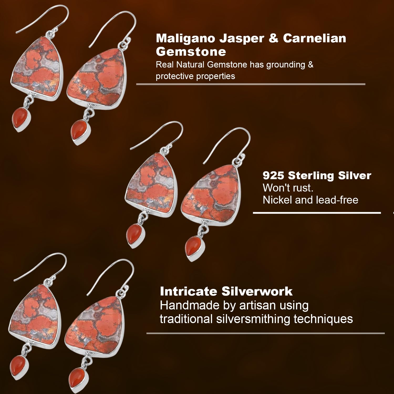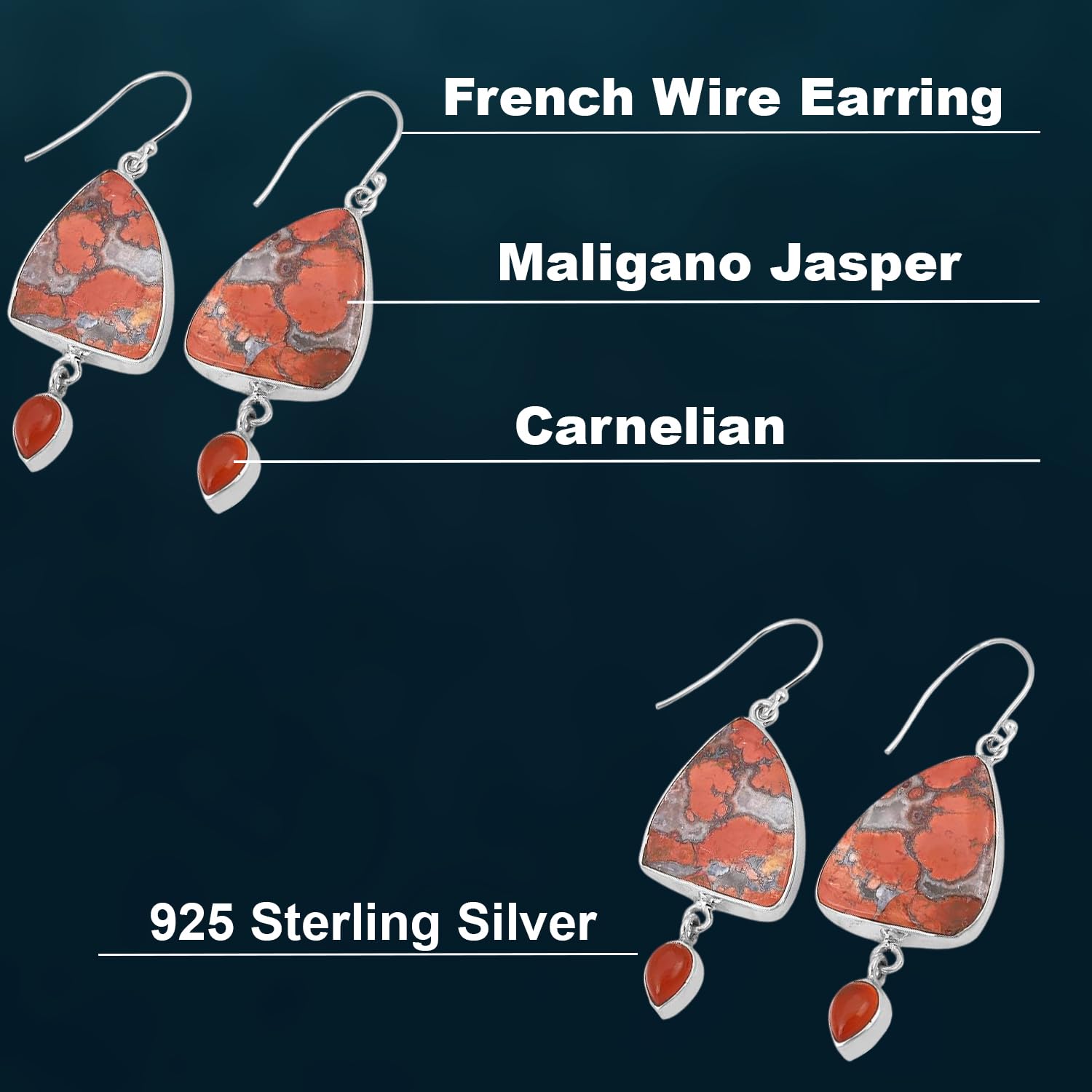 Maligano Jasper & Carnelian Earring, Designer 925 Sterling Silver Earring, Bohemian Earrings mothers day gifts