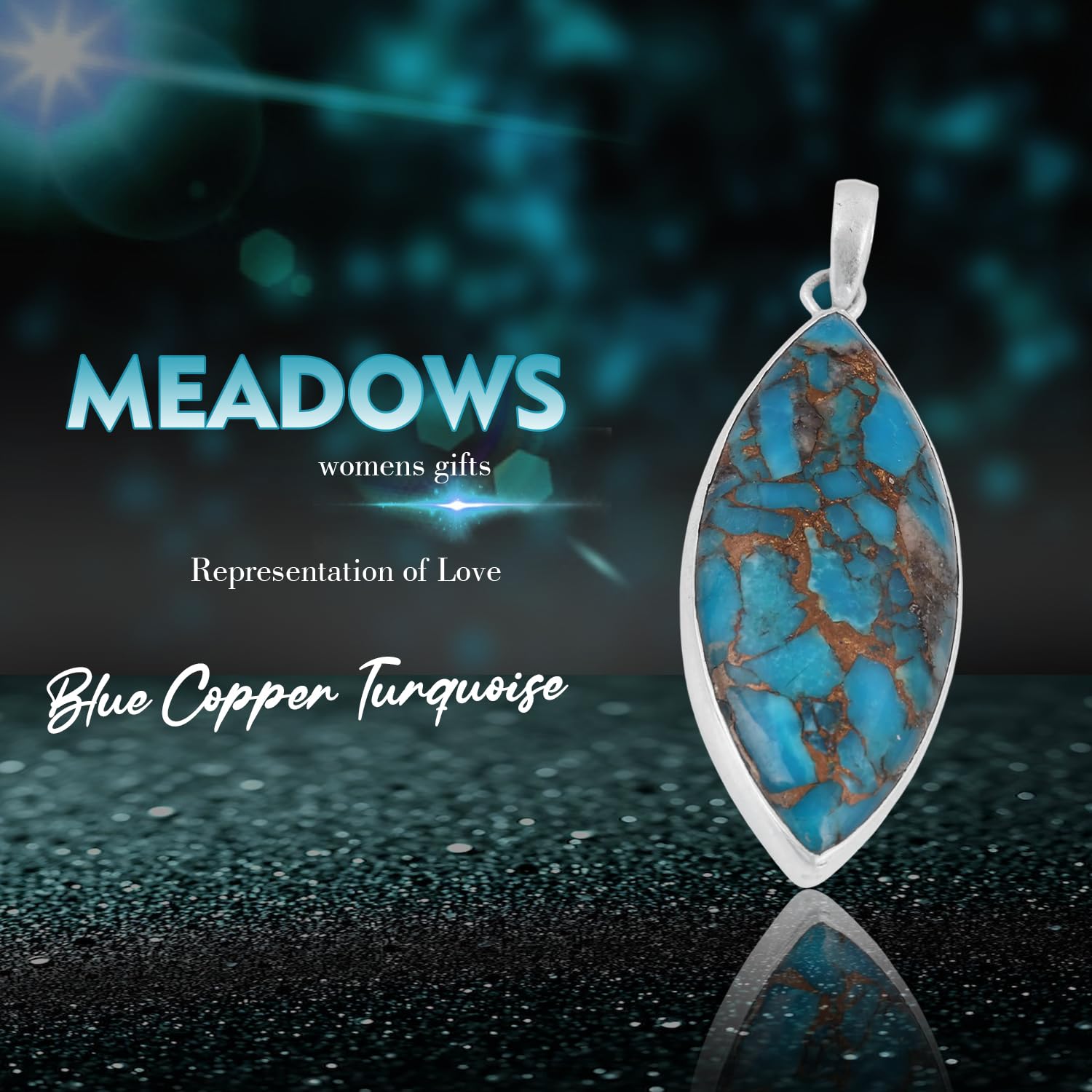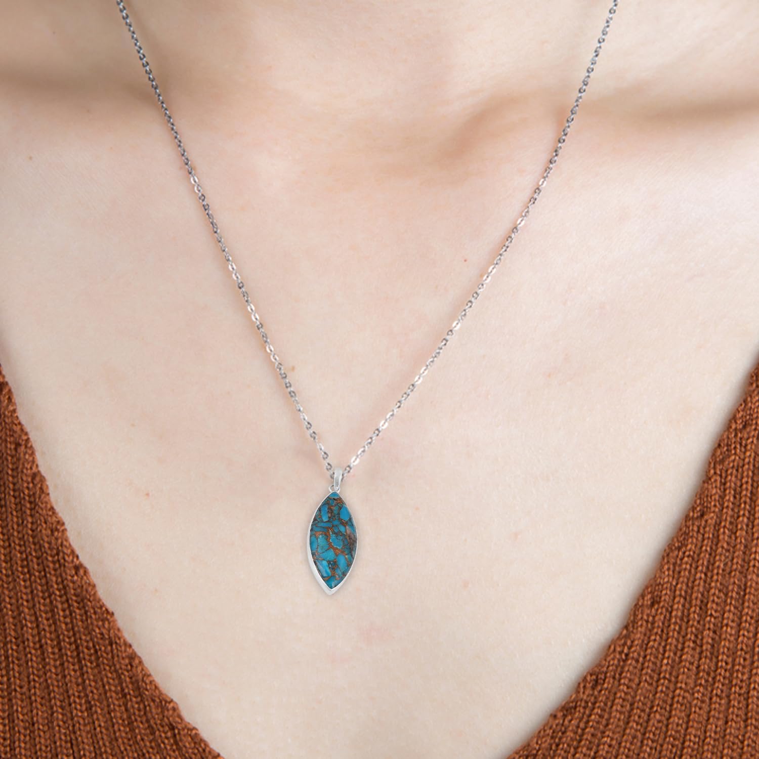Marquise Blue Copper Turquoise Pendant Pure 925 Sterling Silver Handmade Gemstone Pendant mothers day gifts