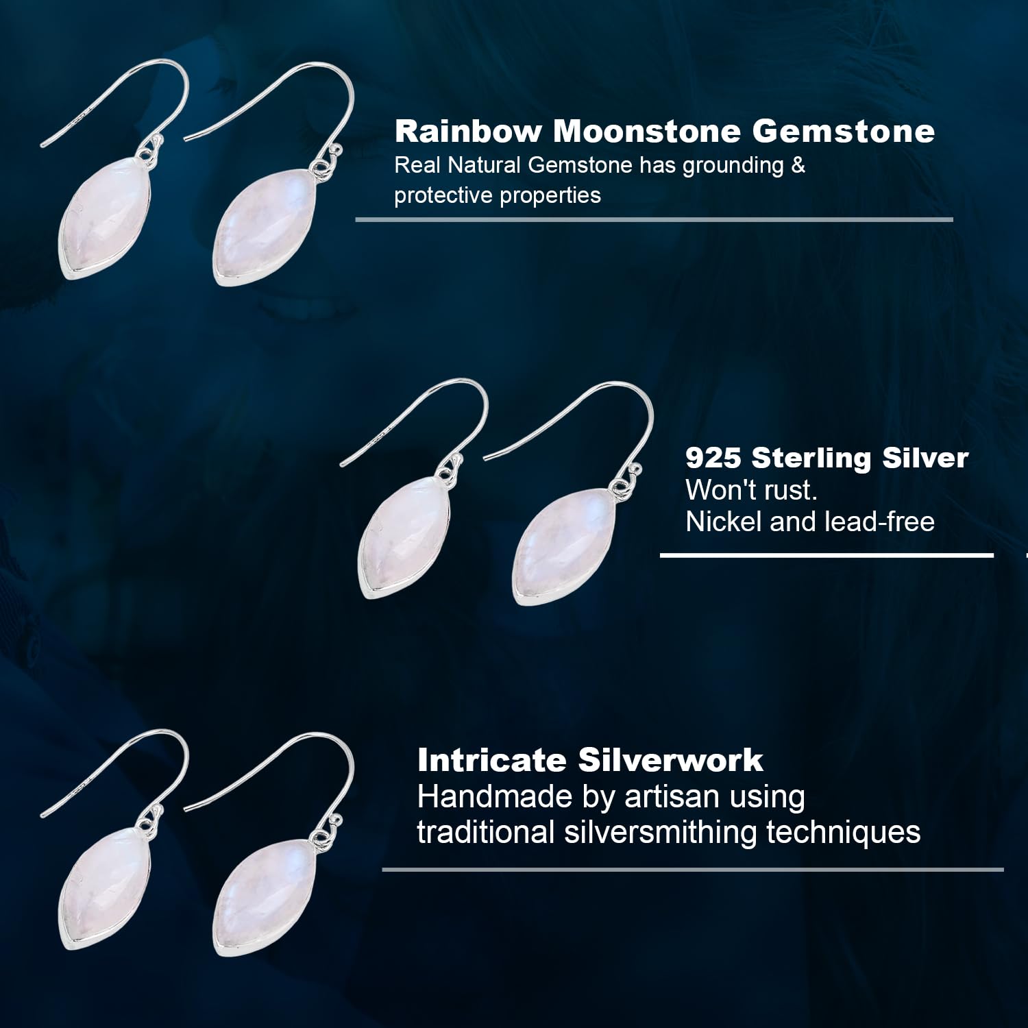 Marquise Rainbow Moonstone Earring, 925 Sterling Silver Earring, Bohemian Earrings mothers day gifts
