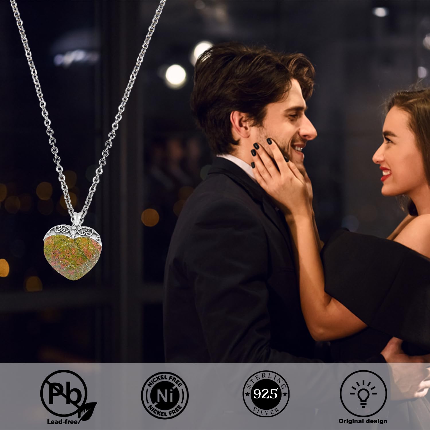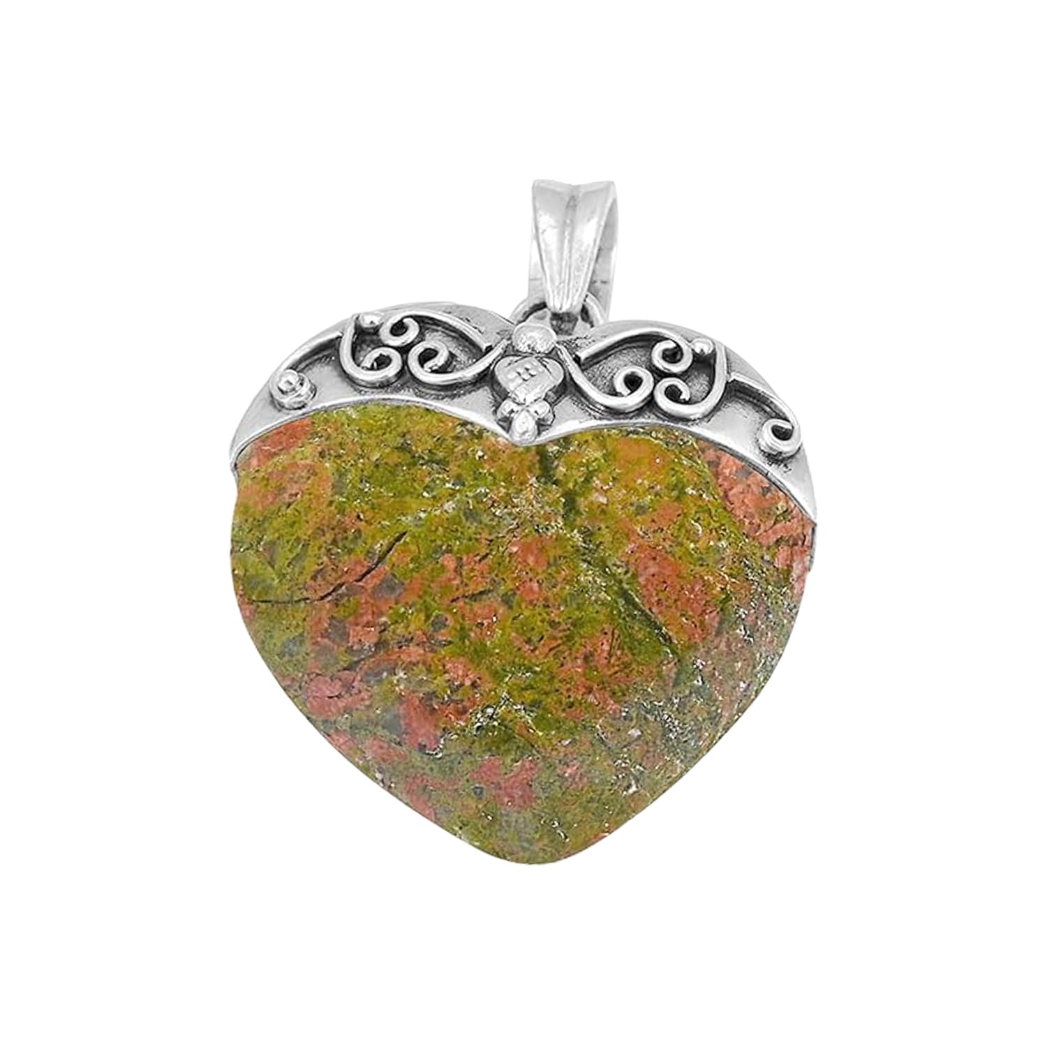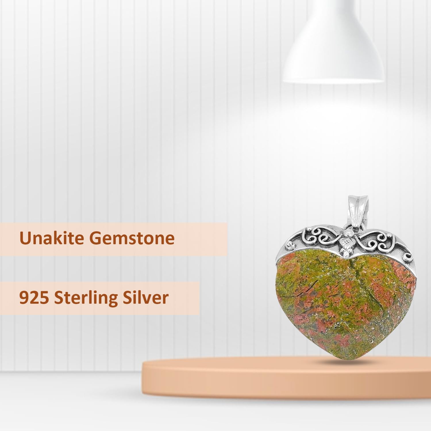 Meadows 925 Sterling Silver Heart Shape Unakite Gemstone Pendant Handmade Jewelry Valentines Day Gifts for her, Sister, Mom, Wife, Anniversary, Birthday, Wedding