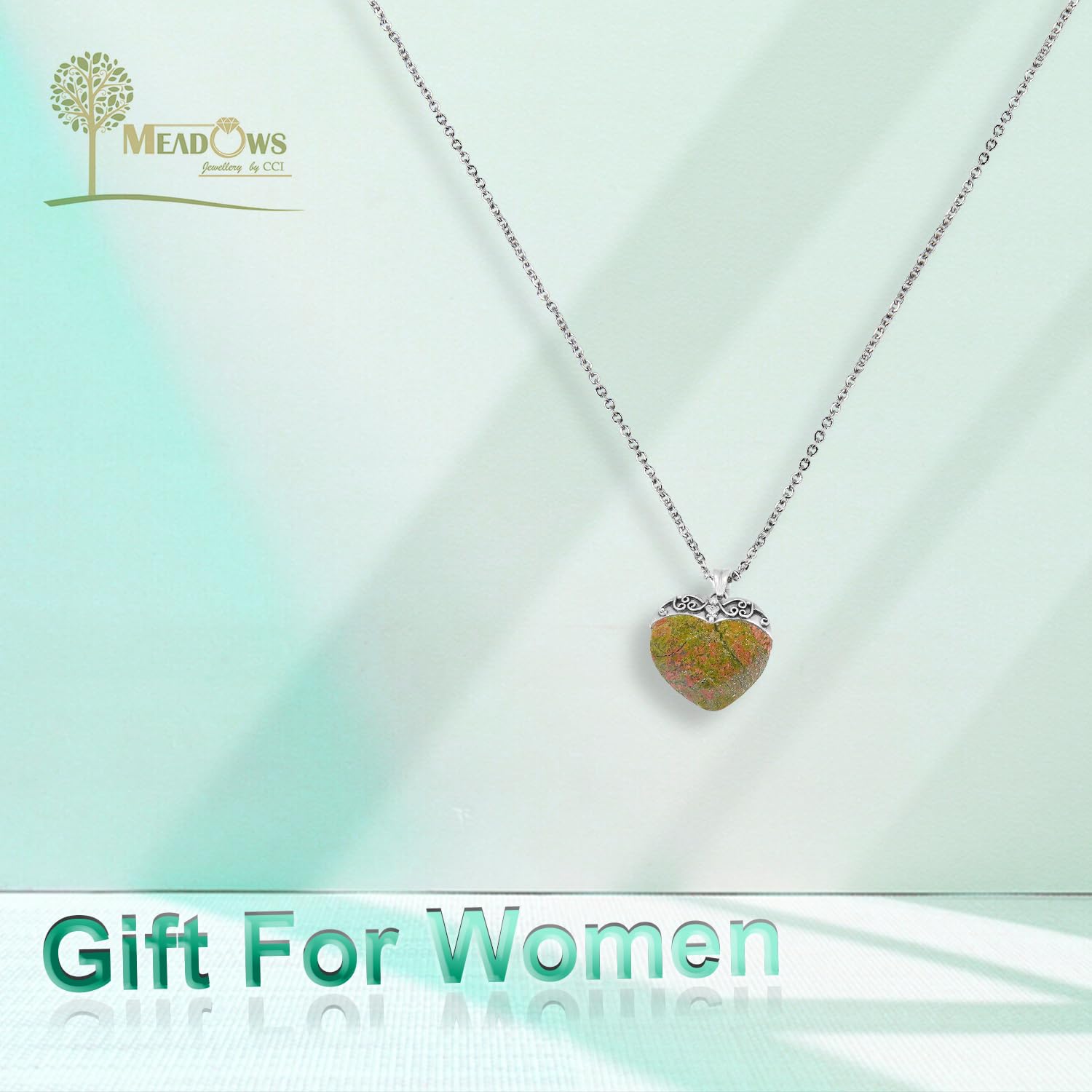Add a touch of elegance and uniqueness to your jewelry collection with the Meadows 925 Sterling Silver Heart Shape Unakite Gemstone Pendant. Handcrafted with care, this pendant features a beautiful heart-shaped Unakite gemstone that is known for its unique blend of pink, green, and earthy tones. The stone’s natural patterns create a stunning and one-of-a-kind look that will be the centerpiece of any outfit. The pendant is set in high-quality 925 sterling silver, offering a perfect balance of luxury and durability. Whether it’s for a special occasion like Valentine?s Day, an anniversary, a birthday, or even a wedding, this pendant makes an unforgettable gift for your loved ones, including your wife, mom, sister, or girlfriend. With its versatile design, you can wear this pendant alone for an elegant statement or layer it with other necklaces for a trendy bohemian look. Its timeless appeal ensures it will remain a treasured piece for years to come.