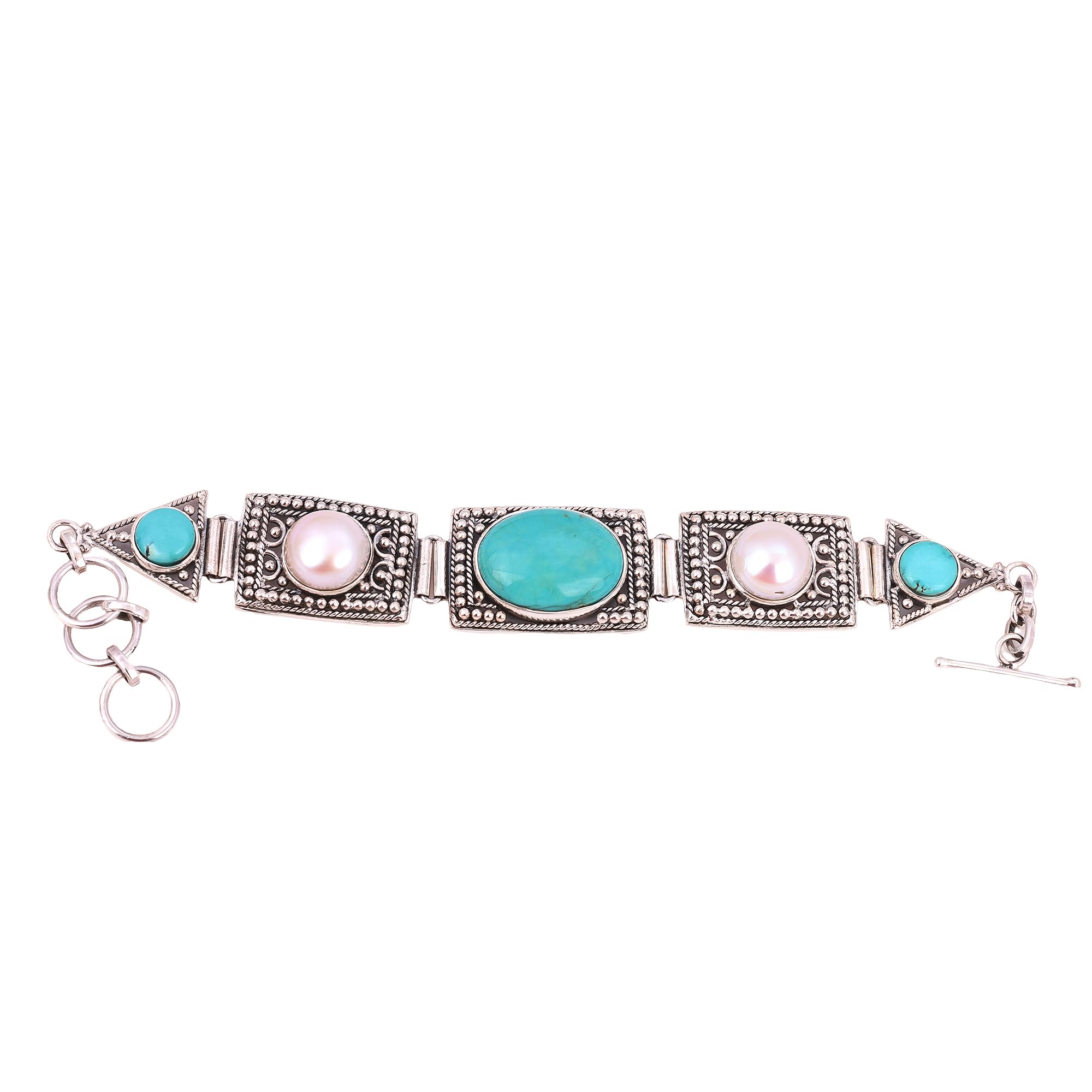 Turquoise, White Pearl Oval Blue, White Silver Bracelets
