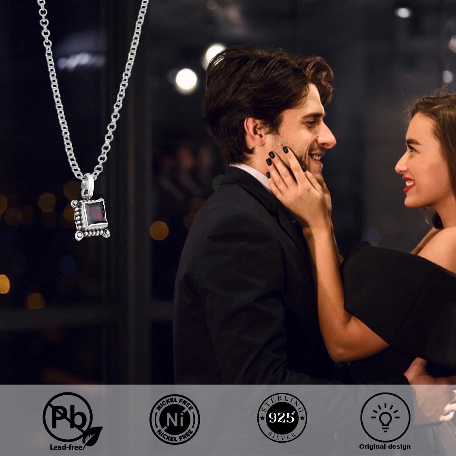 Minimalist Red Garnet Pendant, Designer 925 Sterling Silver Pendant Bohemian Jewelry