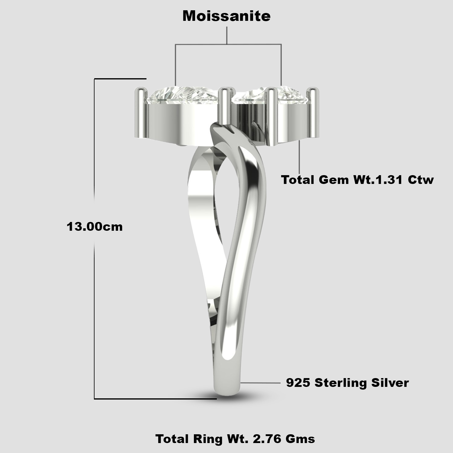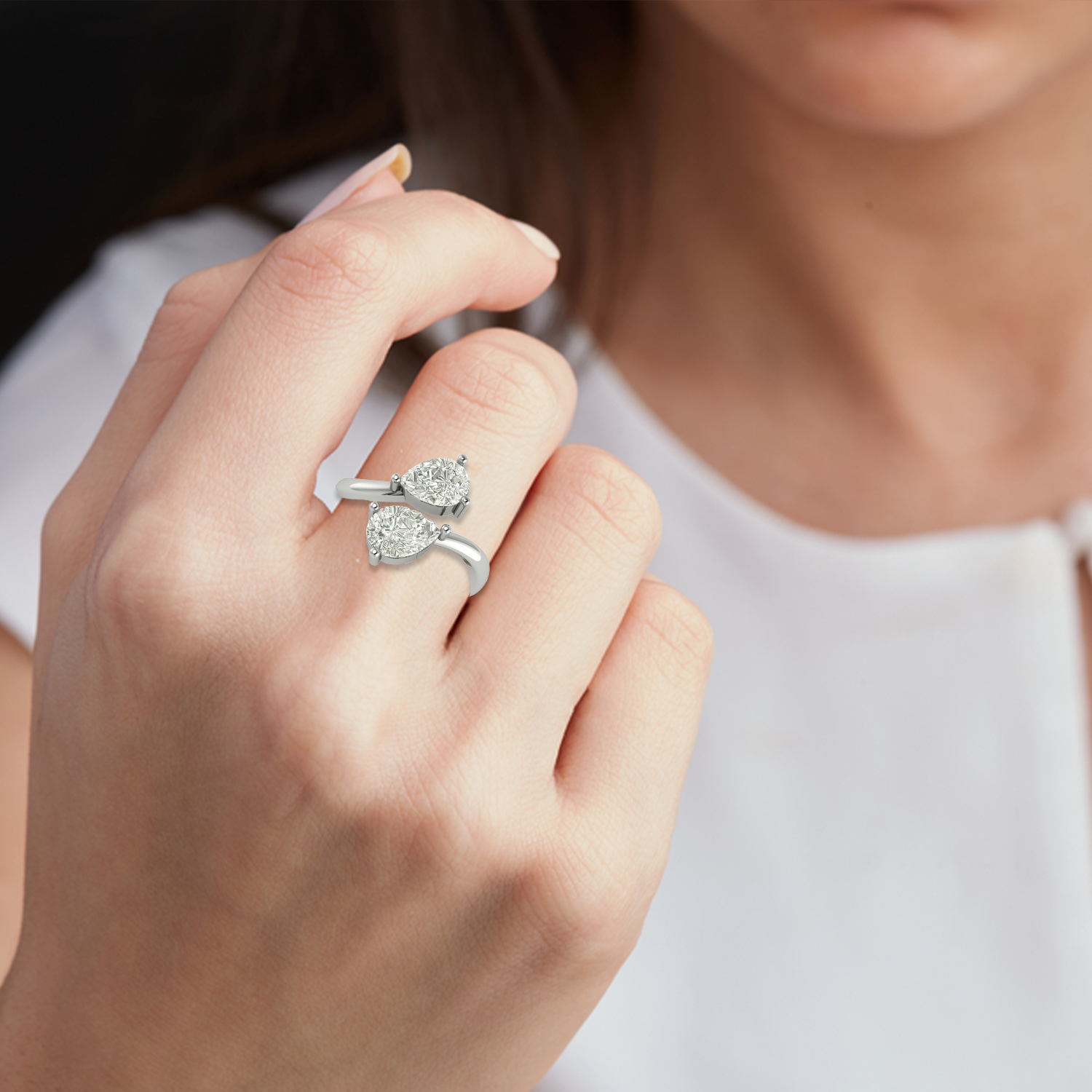 Add a touch of luxury to your jewelry collection with this Moissanite Adjustable Ring, featuring two dazzling pear-cut moissanite stones. Known for their diamond-like brilliance and fire, these moissanites create a captivating sparkle. The sleek silver band with an open-ended, adjustable design ensures a comfortable and flexible fit, making it perfect for any occasion.