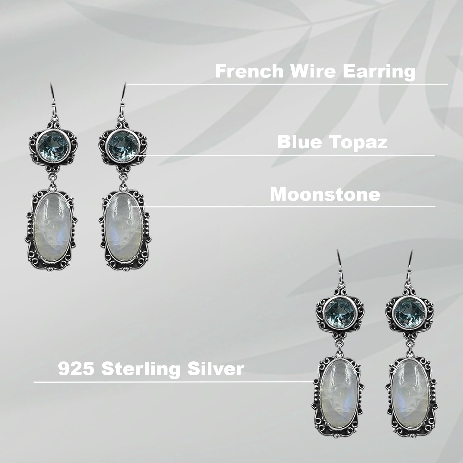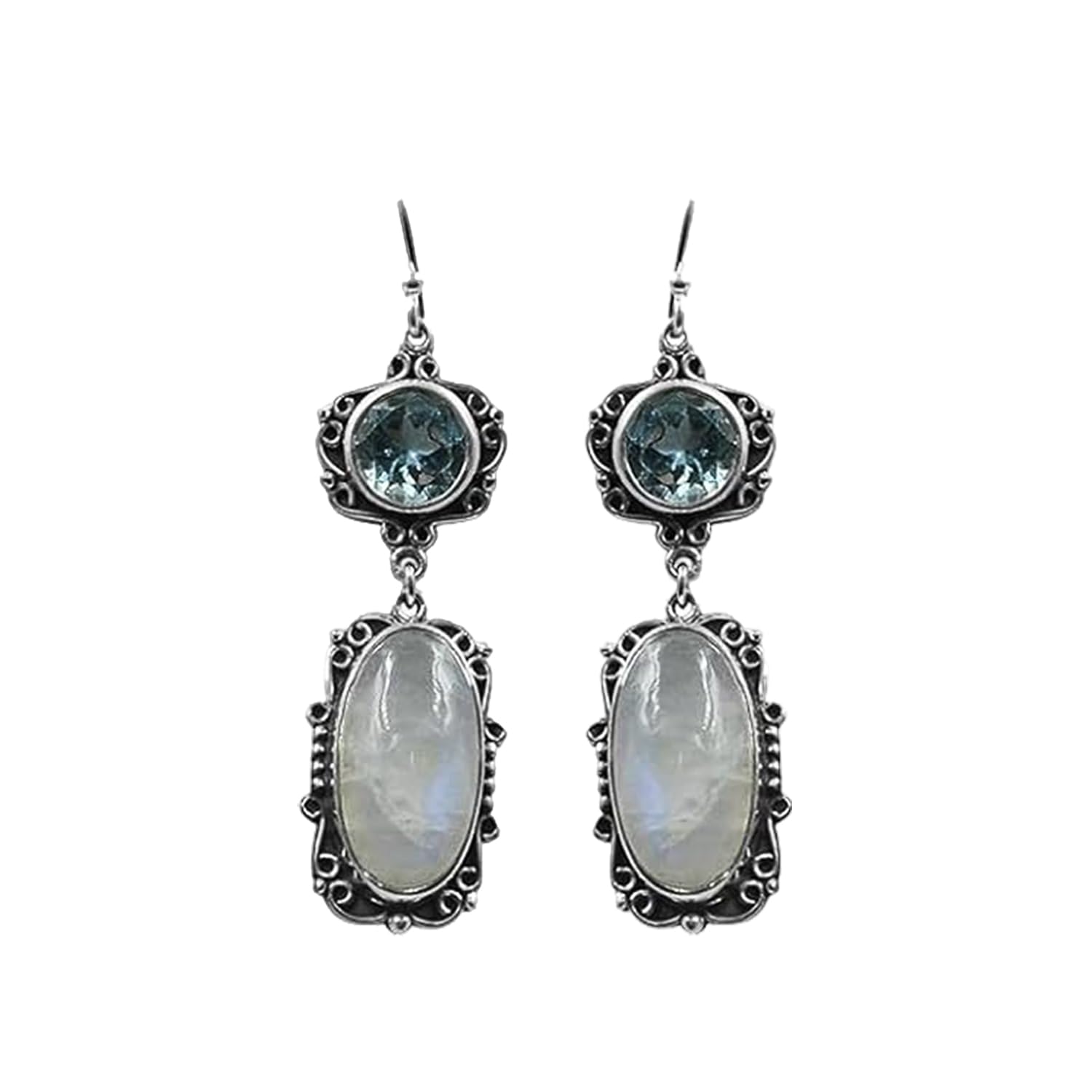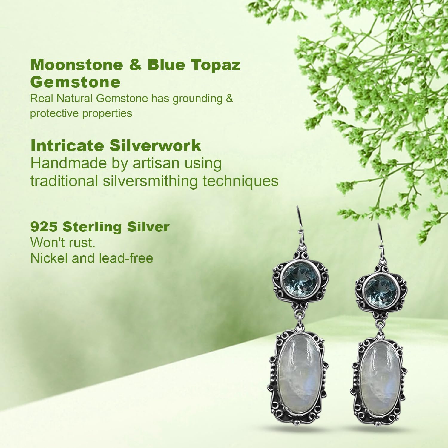 Add movement and magic to your look with these handcrafted Moonstone & Blue Topaz??Dangle Earrings, made with 925 sterling silver?. Inspired by the elegance of Indian craftsmanship, these earrings beautifully sway with every step?making them perfect for both festive occasions and everyday grace.