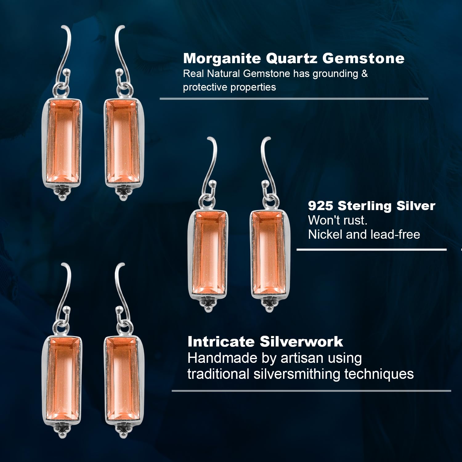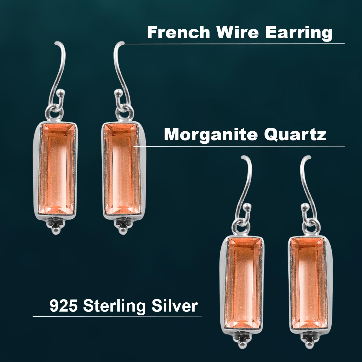 Morganite Quartz Earring, Dangle Earring For Women, Healing Crystal Earring, 925 Sterling Silver Earring
