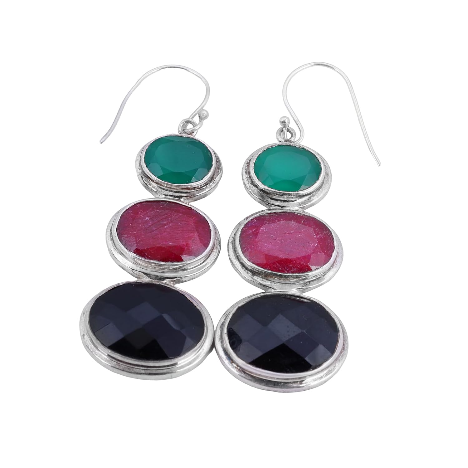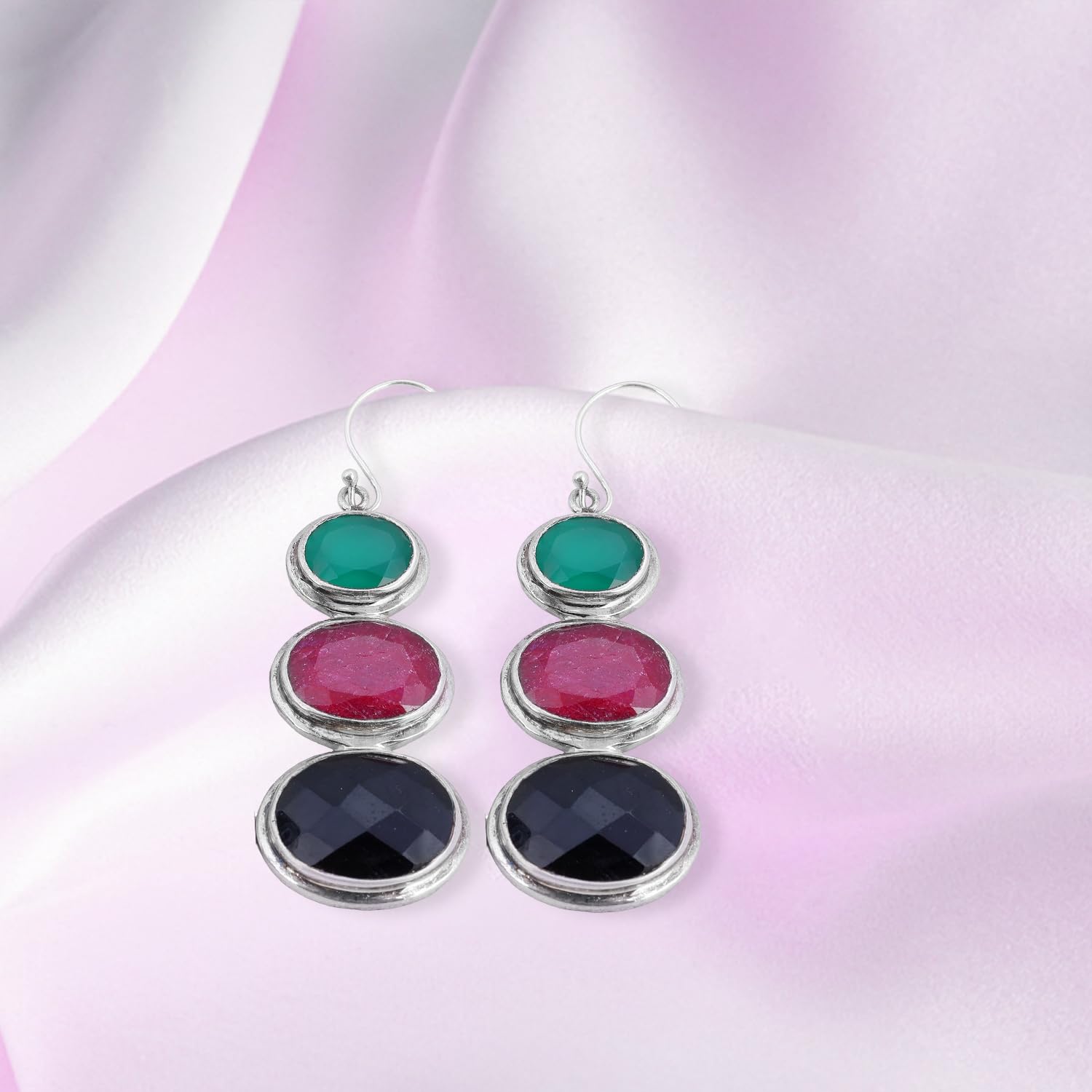 Multi Gemstone Earring Handmade Bezel Setting Earring For Women 925 Sterling Silver Earring mothers day gifts