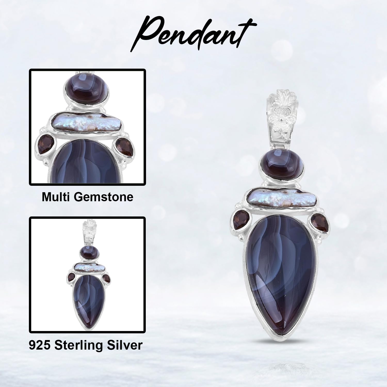 Multi Gemstone Pendant 925 Sterling Silver Handmade Bohemian Pendant mothers day gifts