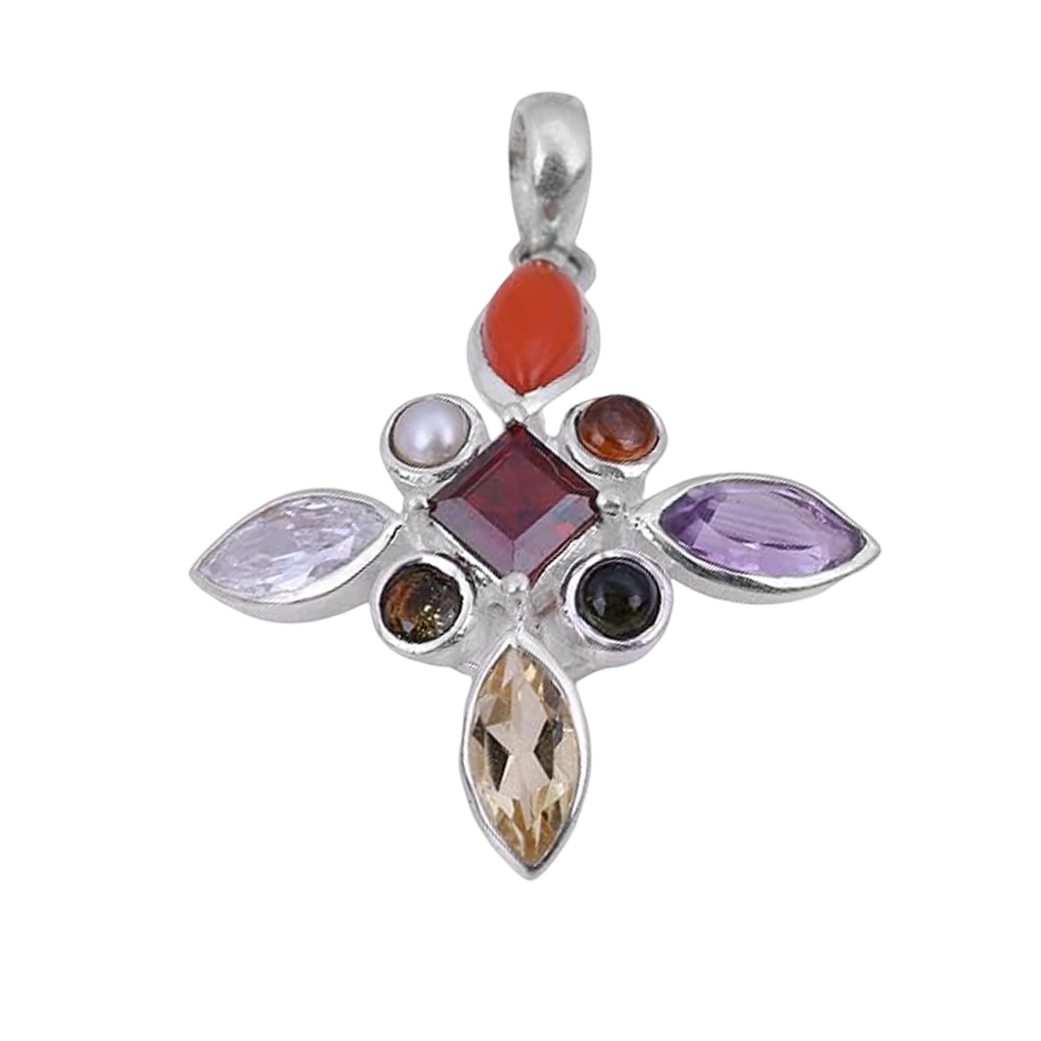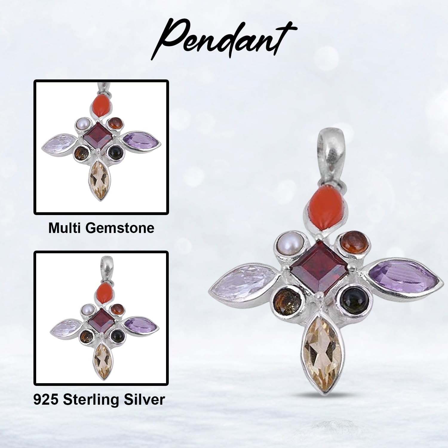 Multi Gemstone Pendant 925 Sterling Silver Handmade Designer Pendant mothers day gifts