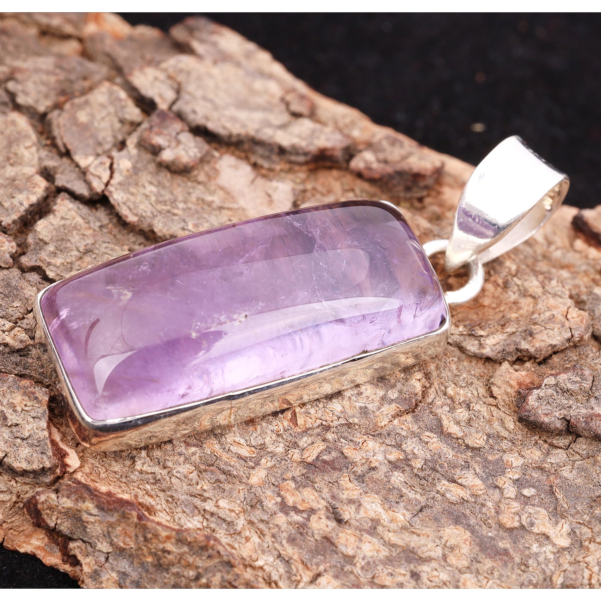 Natural Amethyst Cabochon Pendant, 925 Sterling Silver Pendant Gift Jewelry