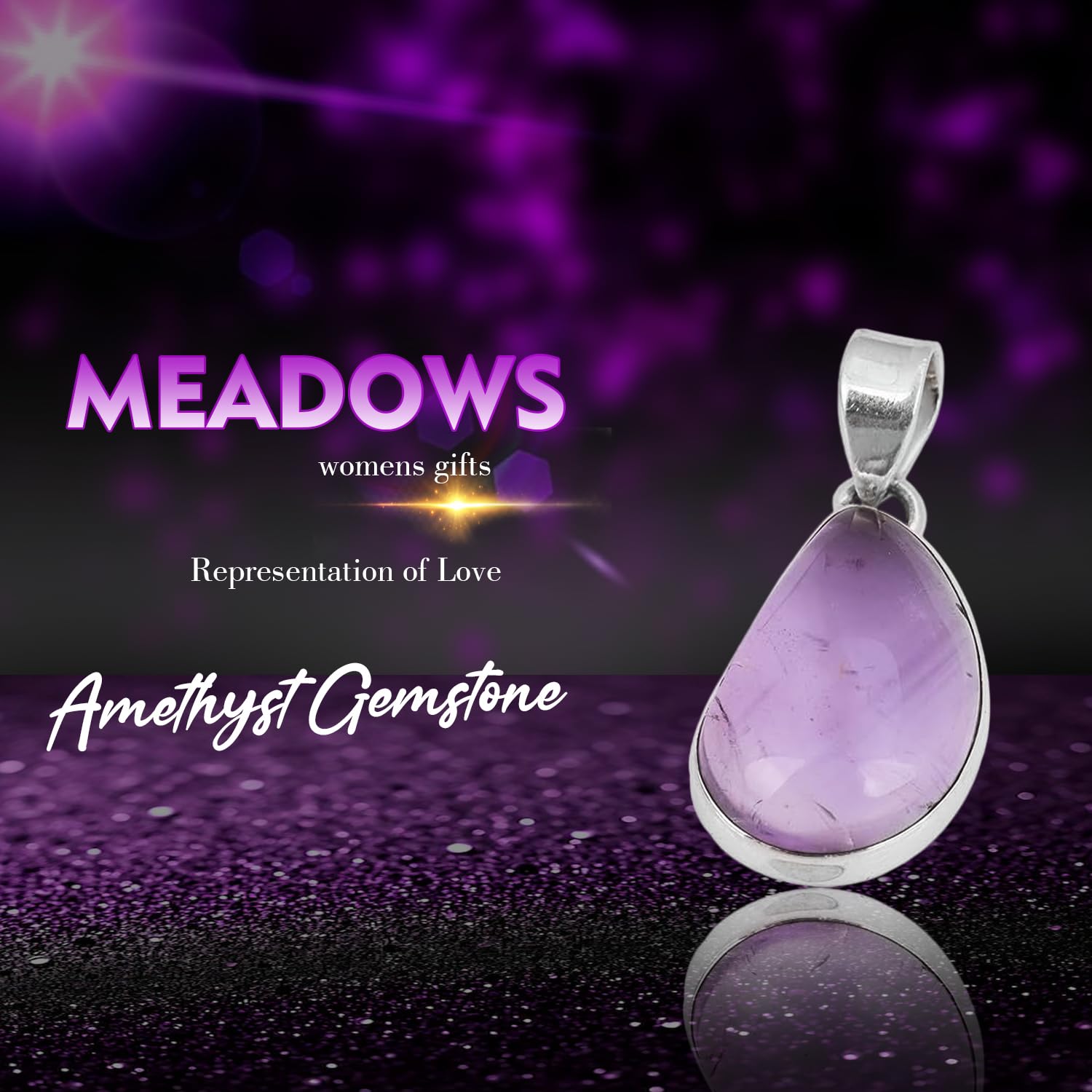 Natural Amethyst Cabochon Pendant, Chunky Gemstone 925 Sterling Silver Pendant