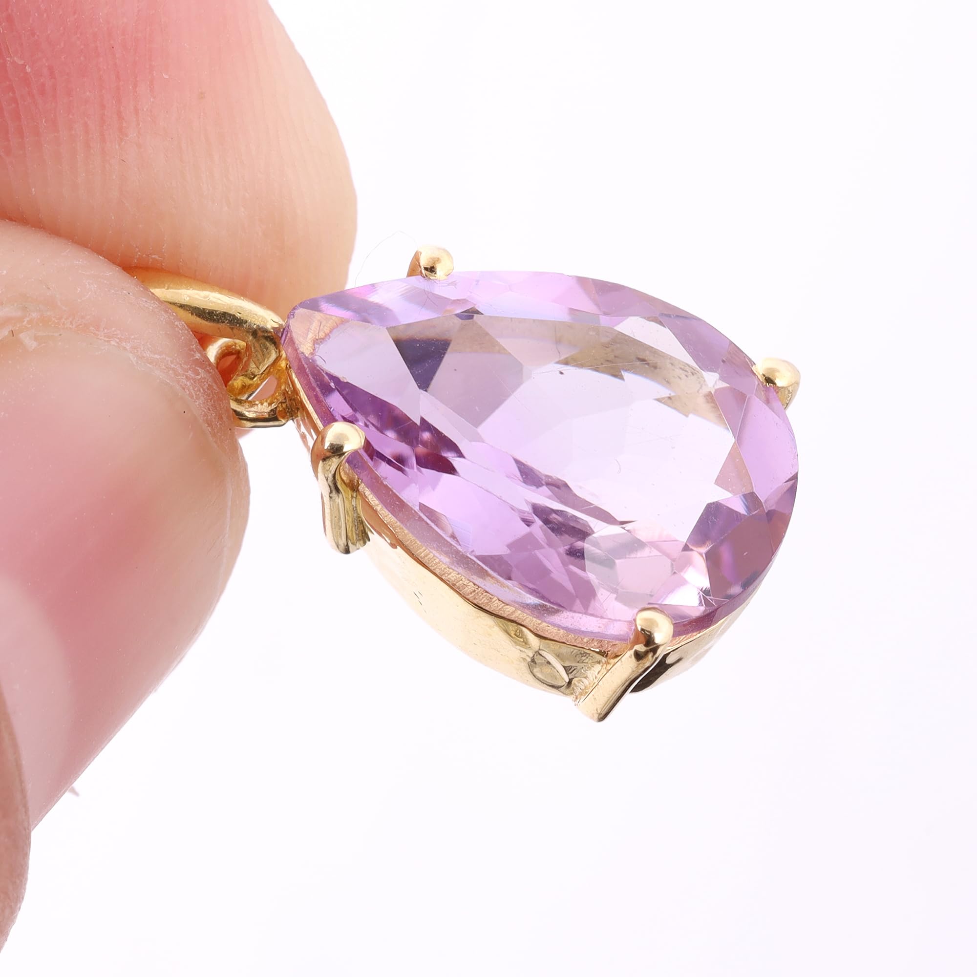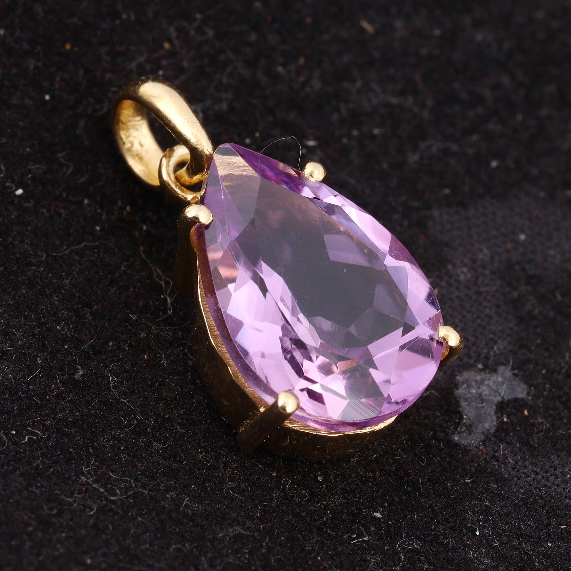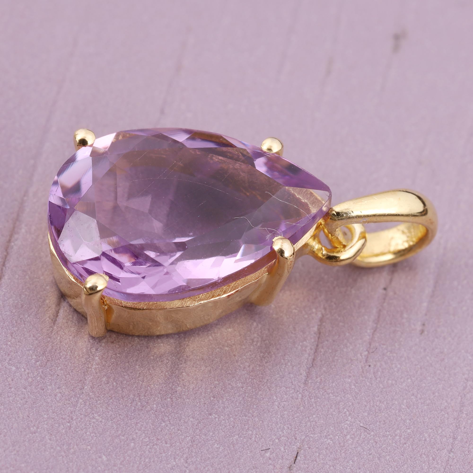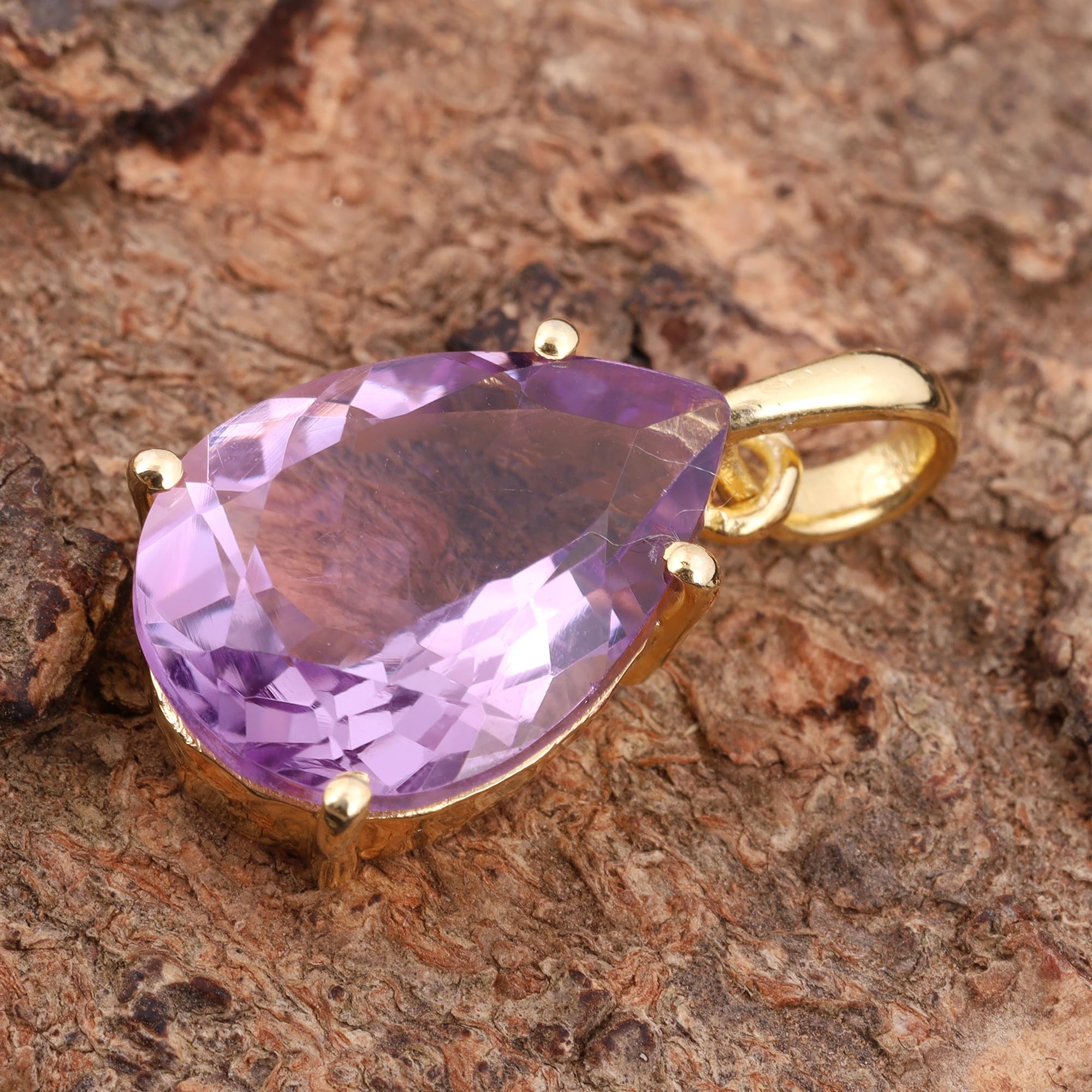 Natural Amethyst Pendant For Women Prong Setting Yellow Gold Brass Pendant Fashion Jewelry