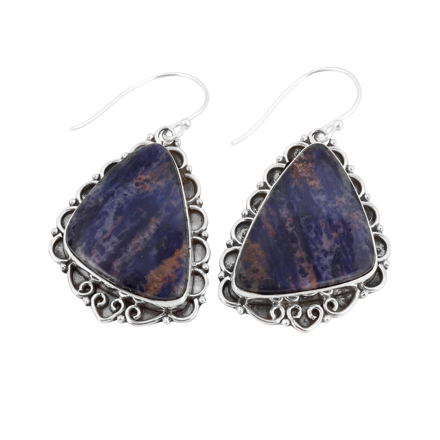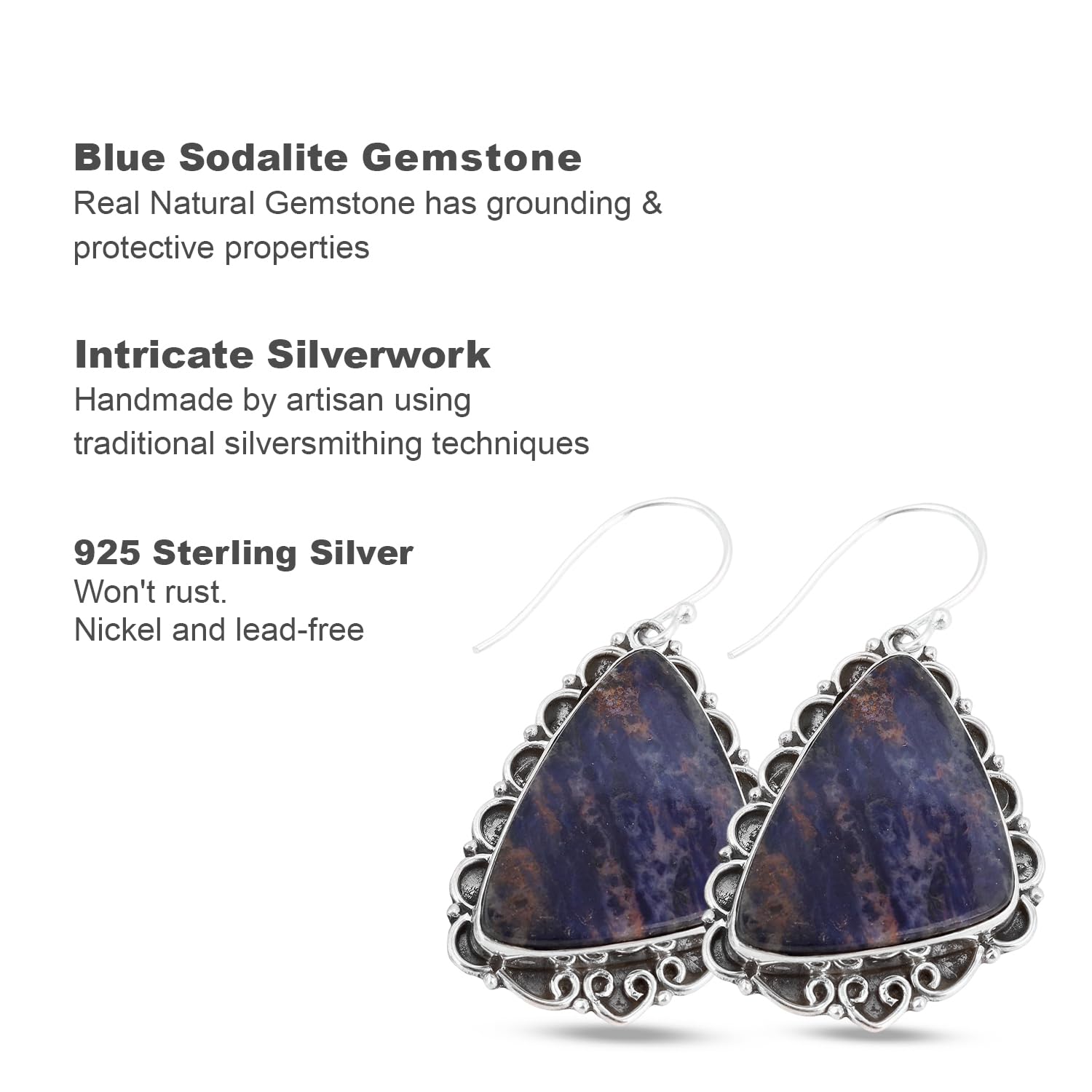 Natural Blue Sodalite Earring Handmade Bezel Setting Earring For Women 925 Sterling Silver Earring mothers day gifts