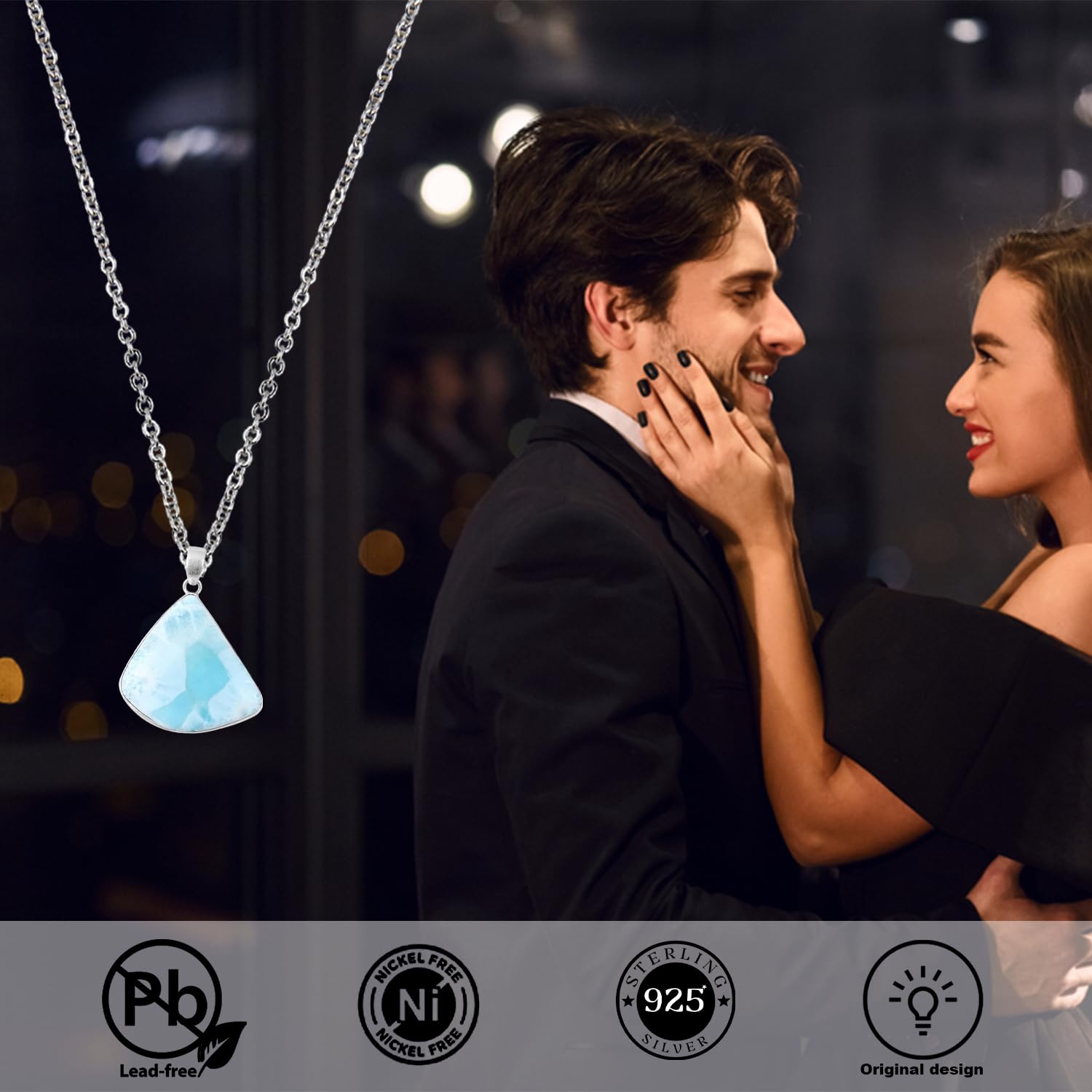 Natural Dominican Larimar Pendant, Handmade 925 Sterling Silver Statement Pendant