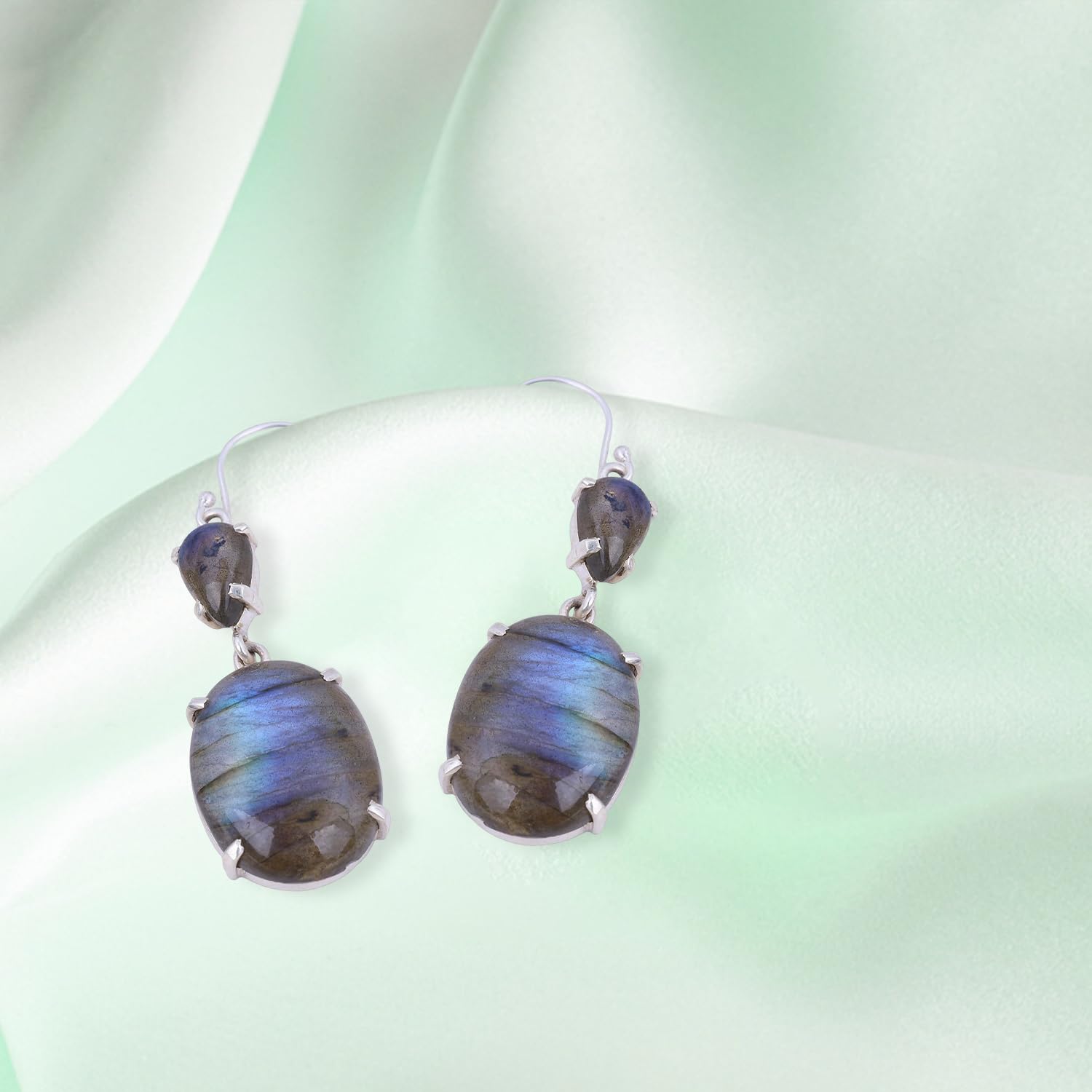Natural Labradorite Earring Handmade Prong Setting Gemstone Earring For Women, 925 Sterling Silver Earring mothers day gifts